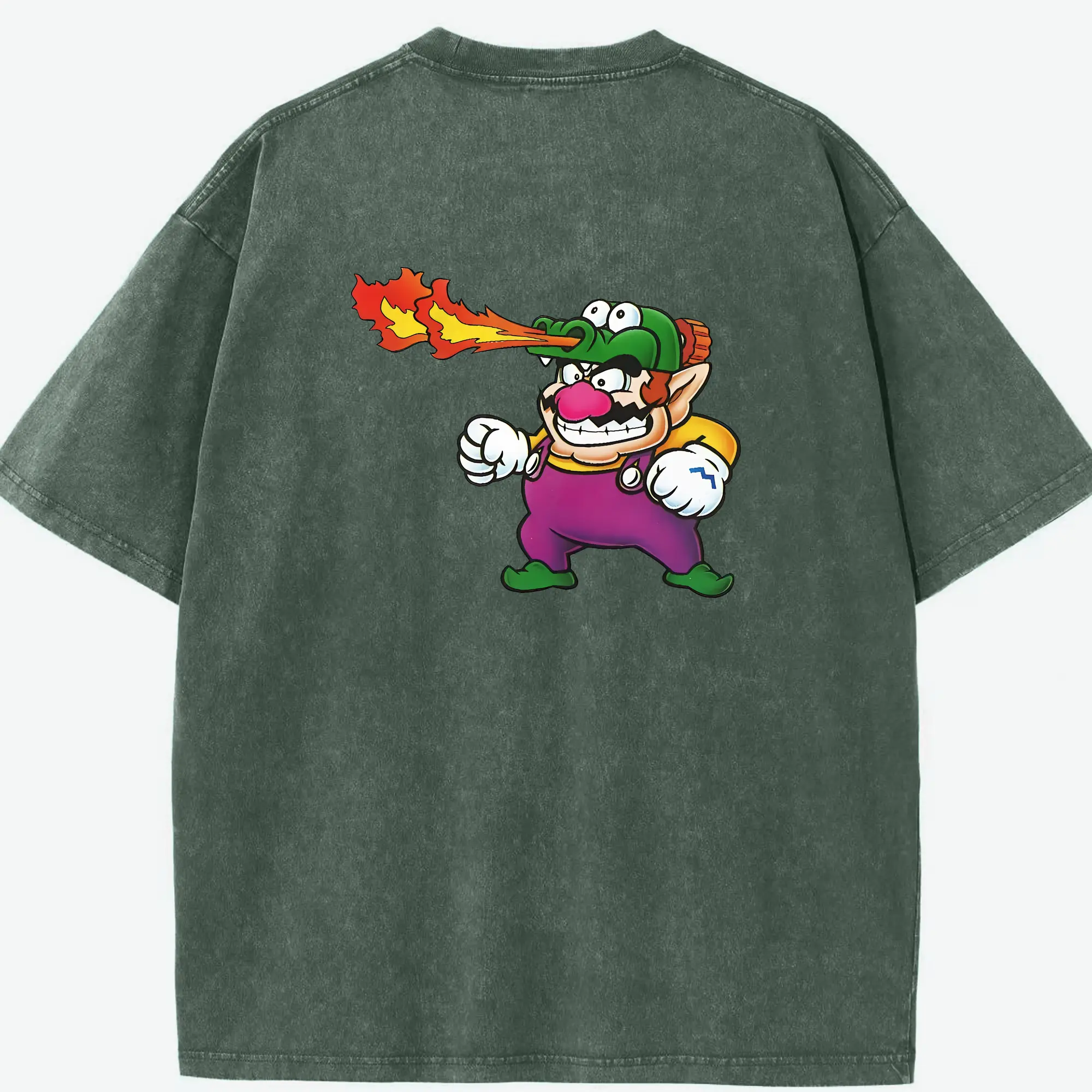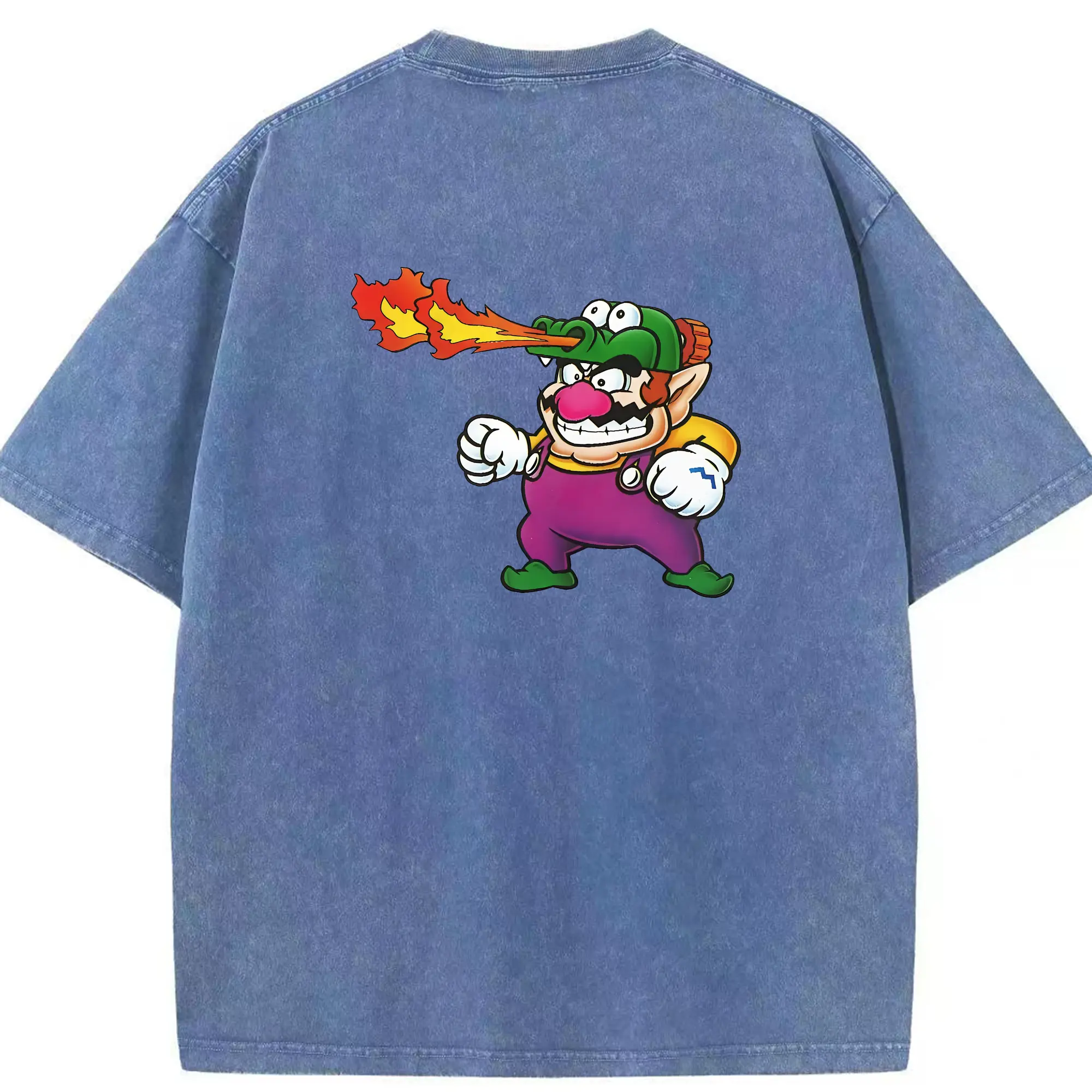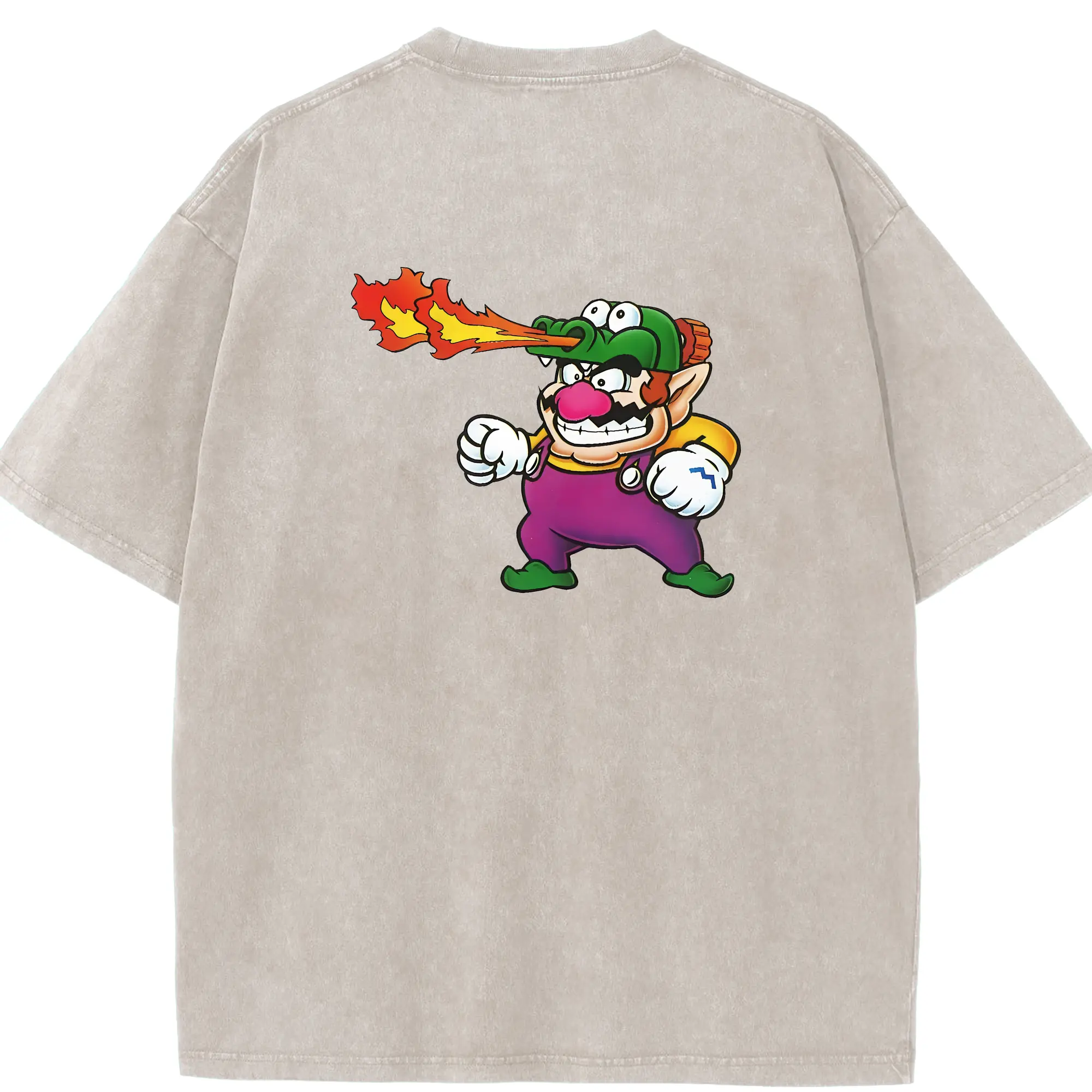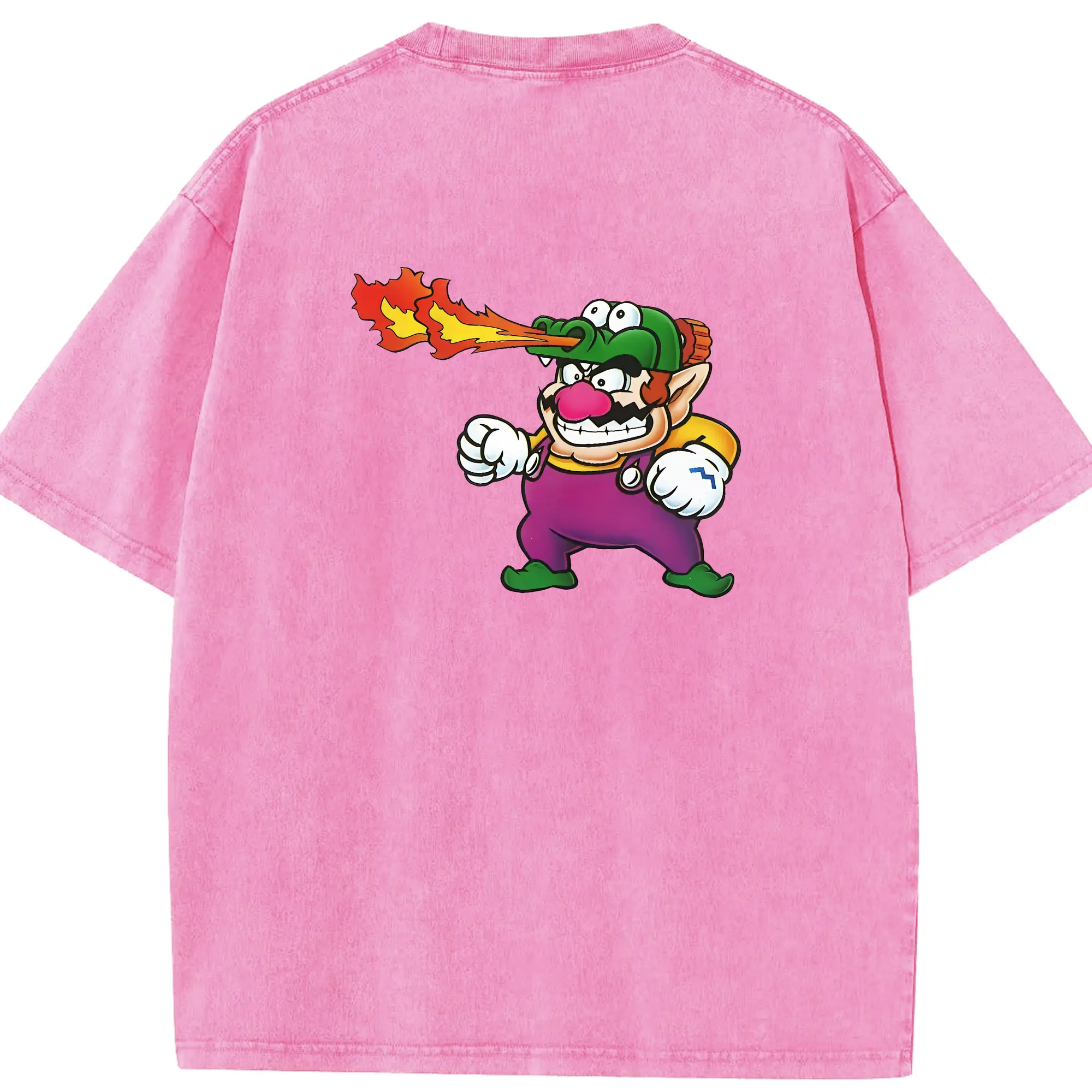マリオ グッズ ワリオ - 綿100% ヴィンテージ風 半袖Tシャツ ・ フロントプリント ・ 柔らか肌触り ・ 通気性 快適 ・ スポーツ カジュアル 外出用