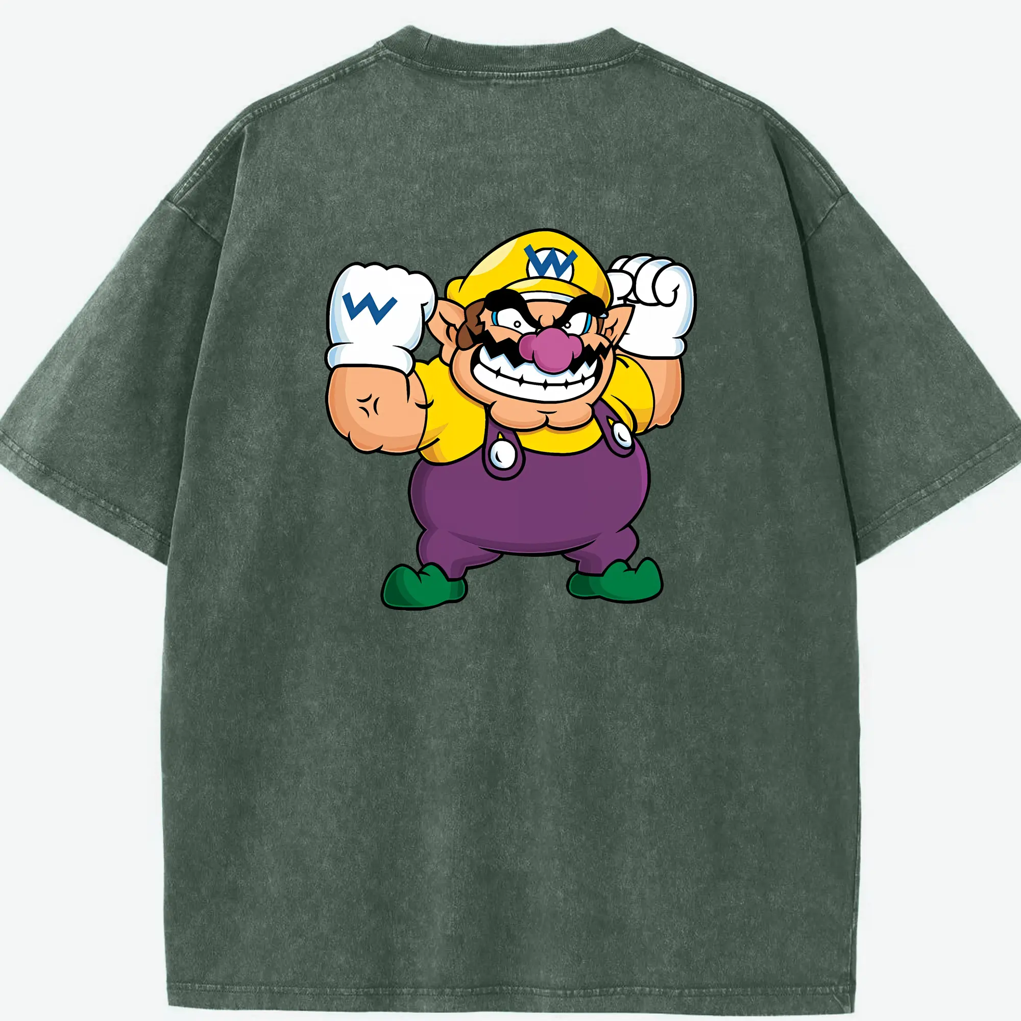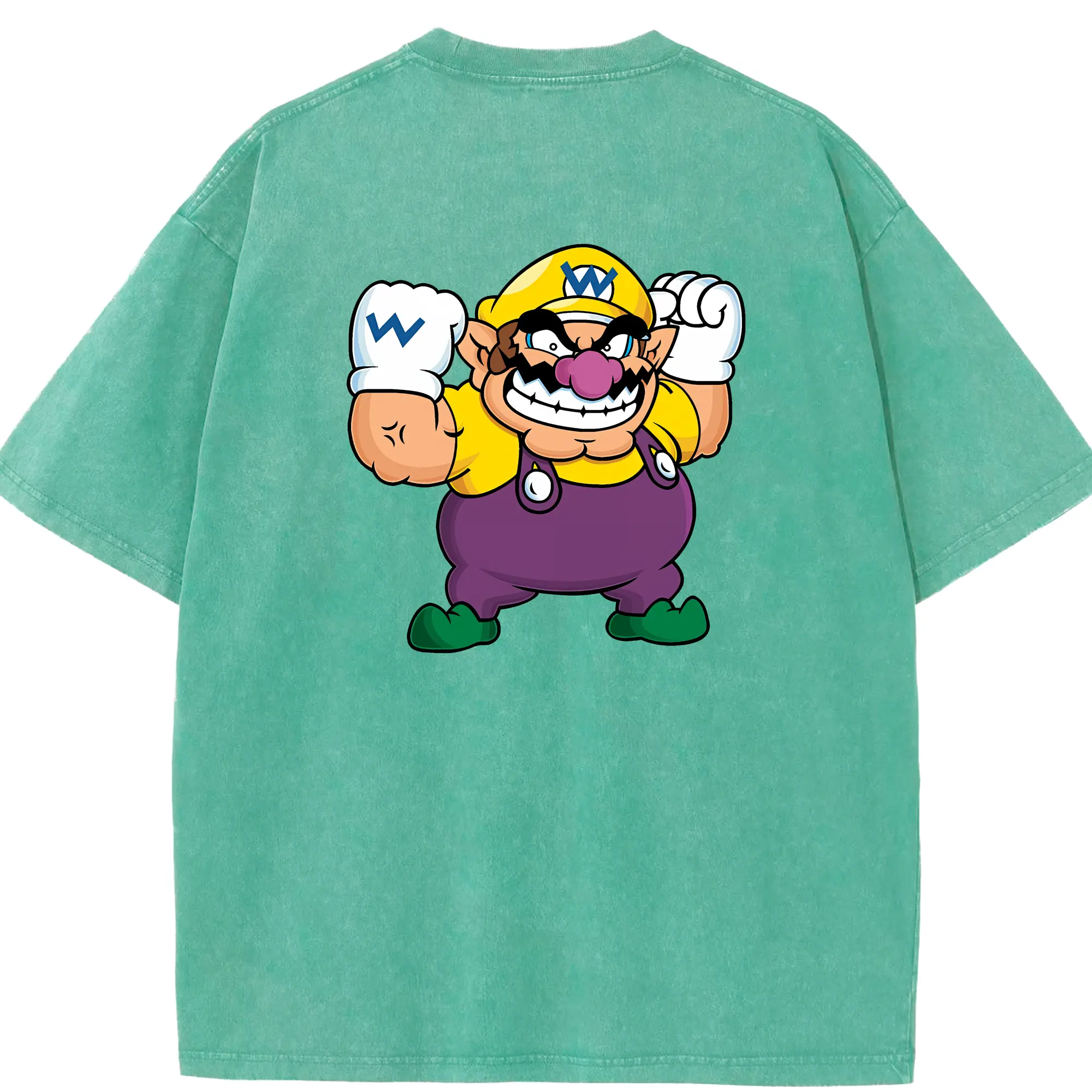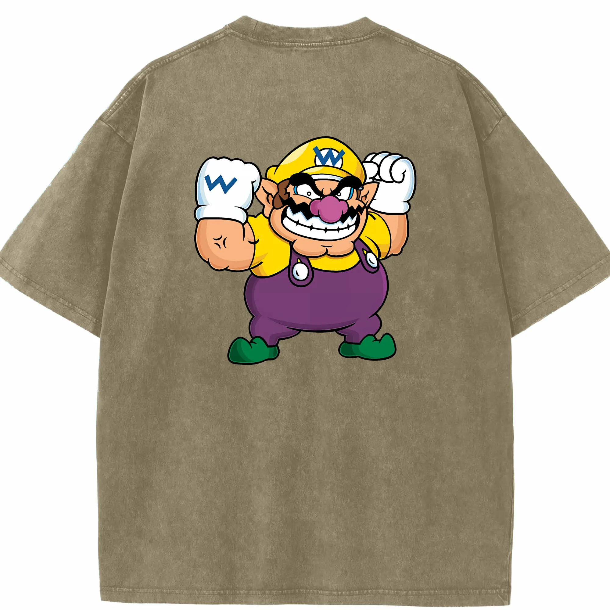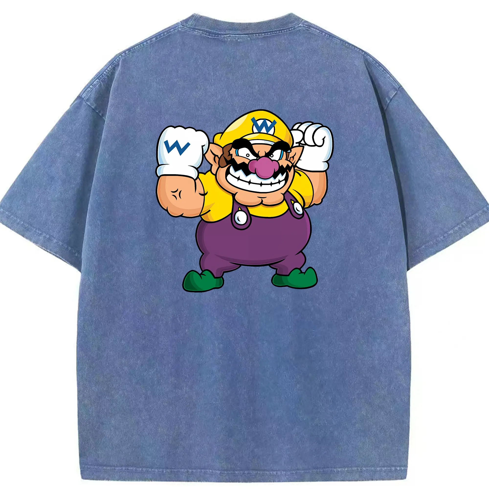 マリオ グッズ ワリオ - 綿100% ヴィンテージ風 半袖Tシャツ ・ フロントプリント ・ 柔らか肌触り ・ 通気性 快適 ・ スポーツ カジュアル 外出用