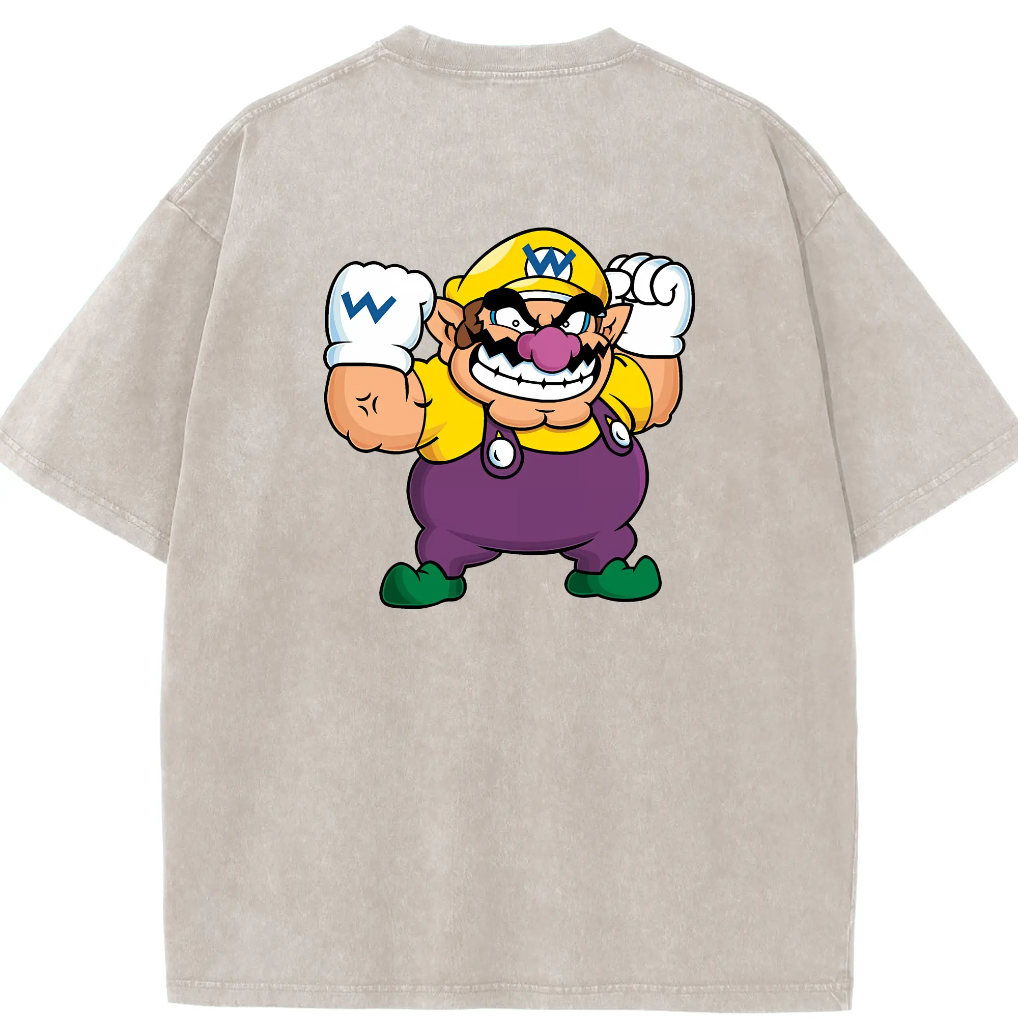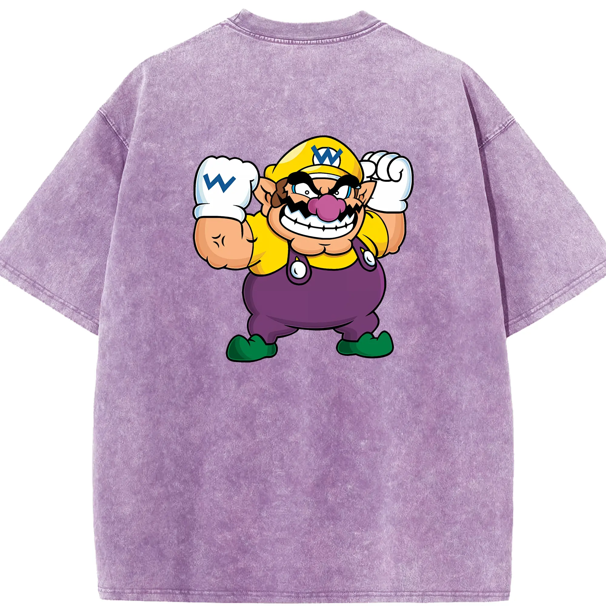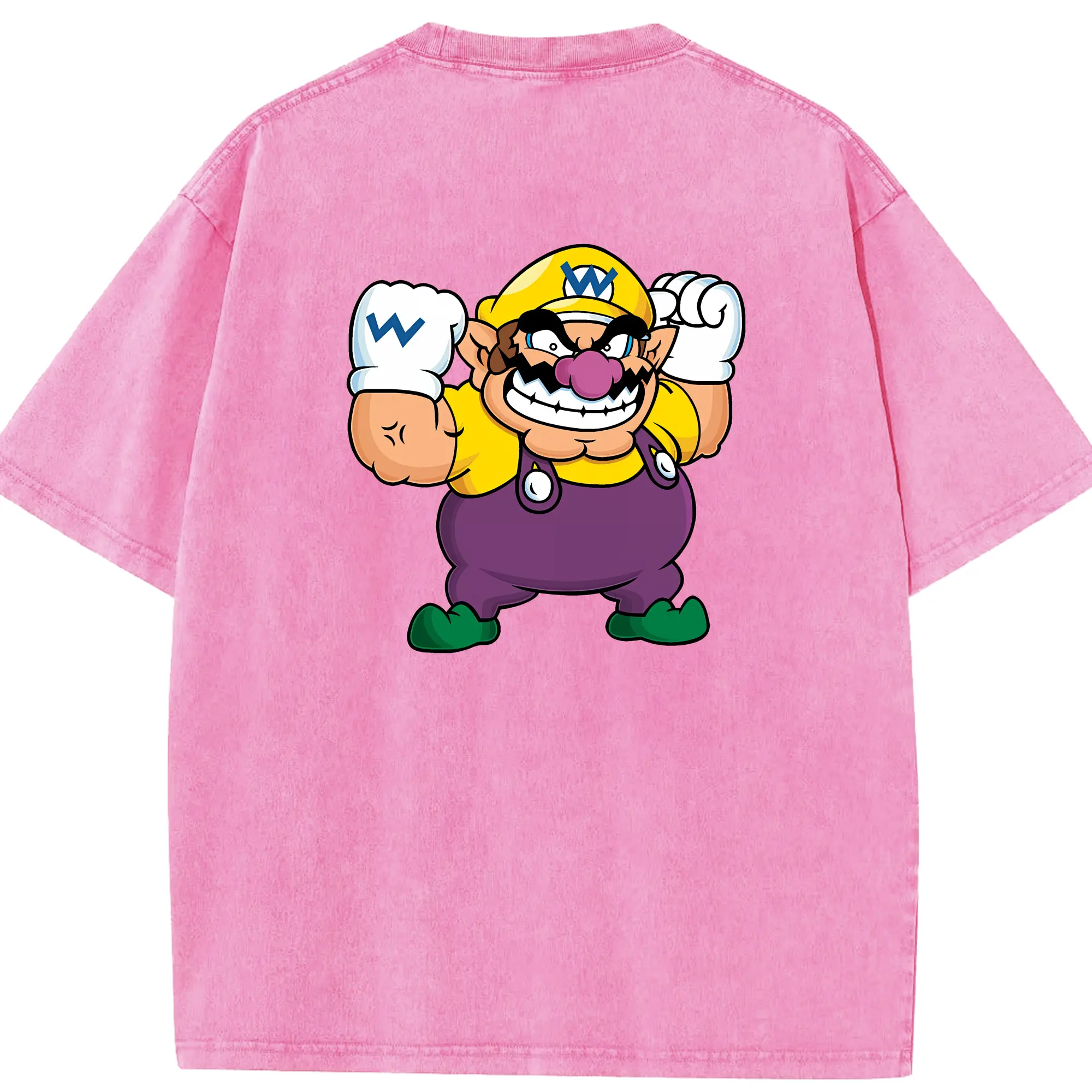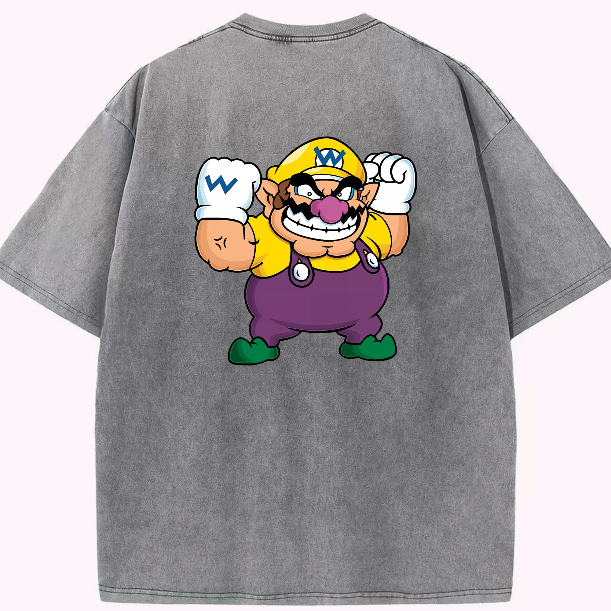 マリオ グッズ ワリオ - 綿100% 半袖Tシャツ ・ バックプリント ・ 快適 通気性 ・ 日常使い 散歩 スポーツ用
