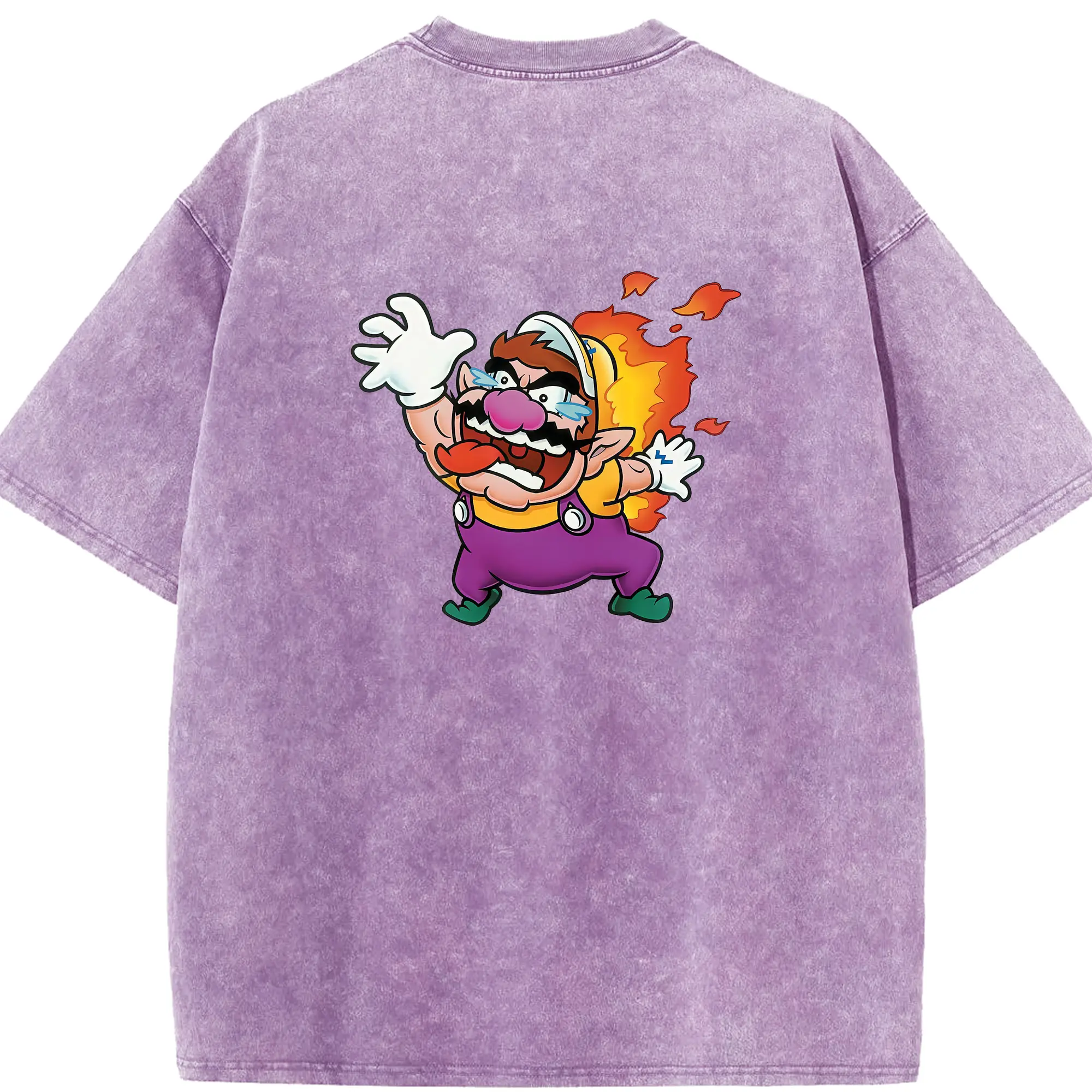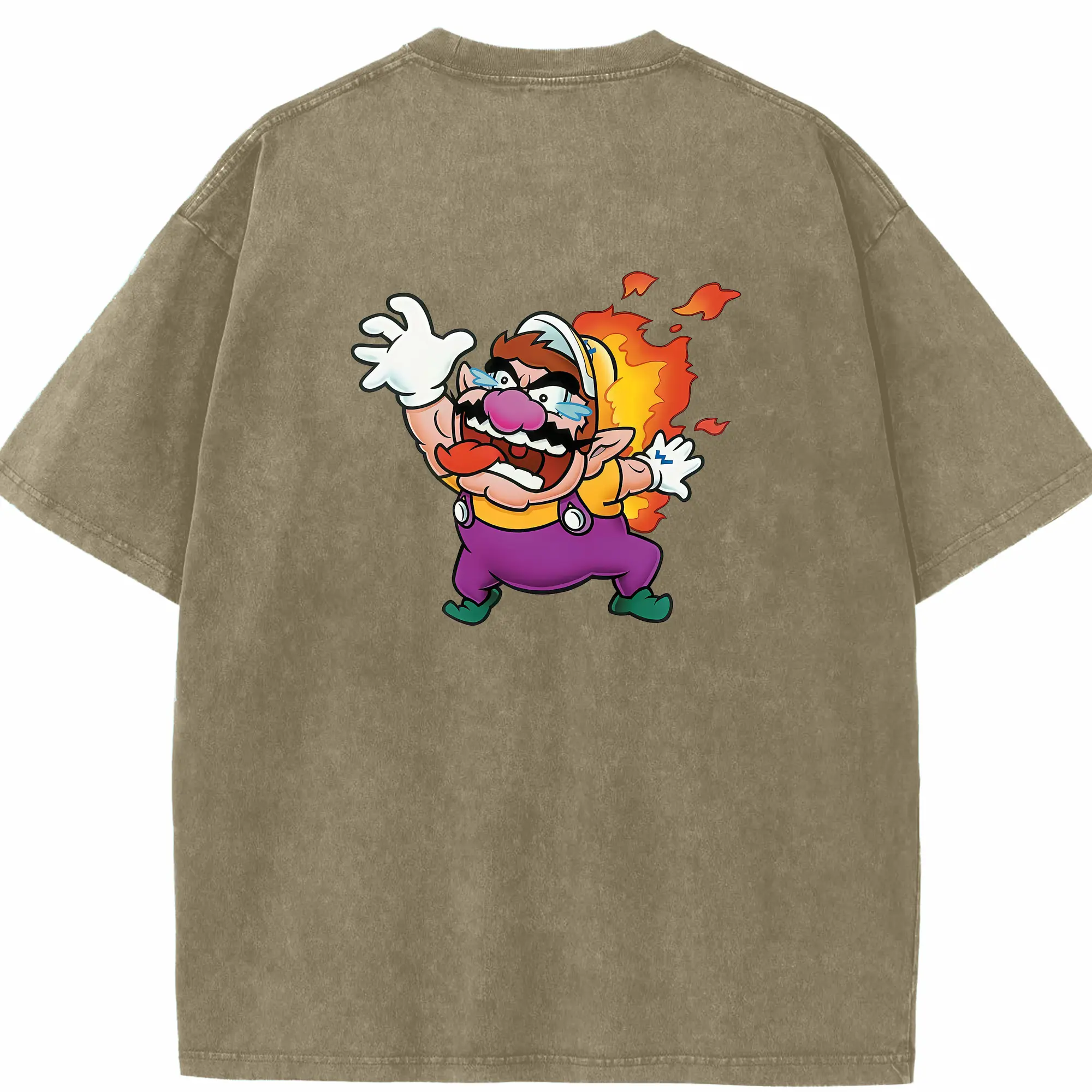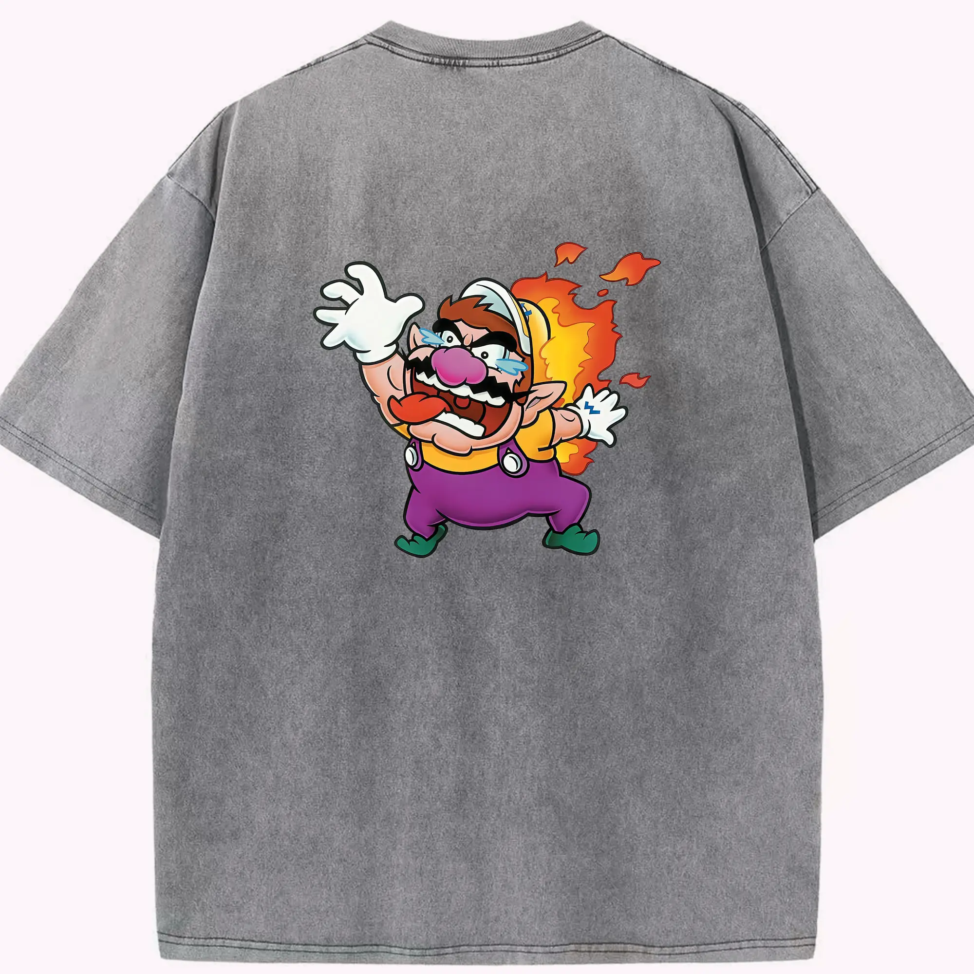 マリオ グッズ ワリオ - 綿100% ヴィンテージ風 半袖Tシャツ ・ フロントプリント ・ 柔らか肌触り ・ 通気性 快適 ・ スポーツ カジュアル 外出用