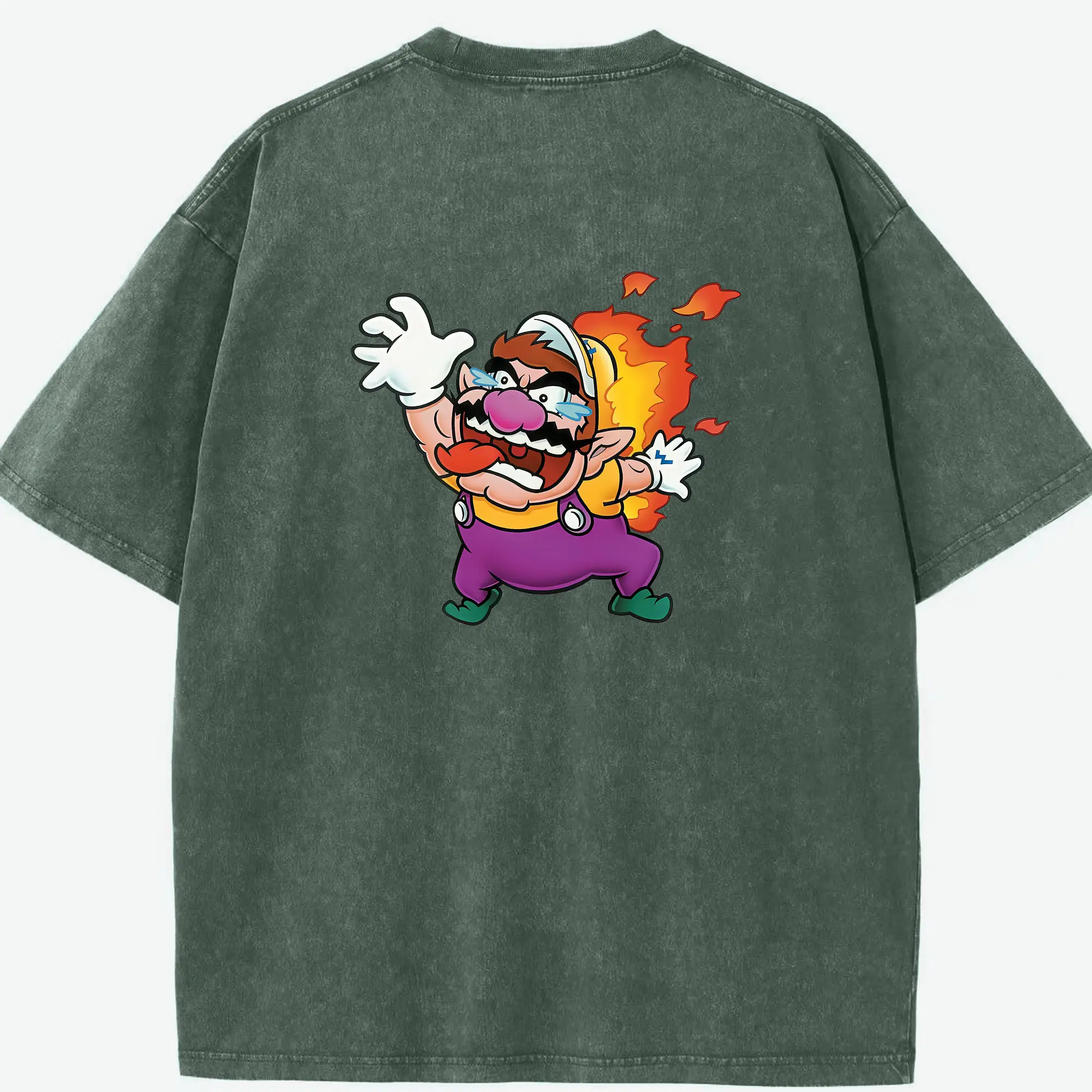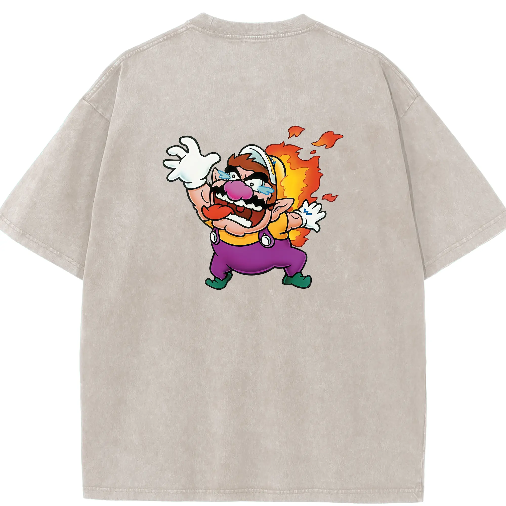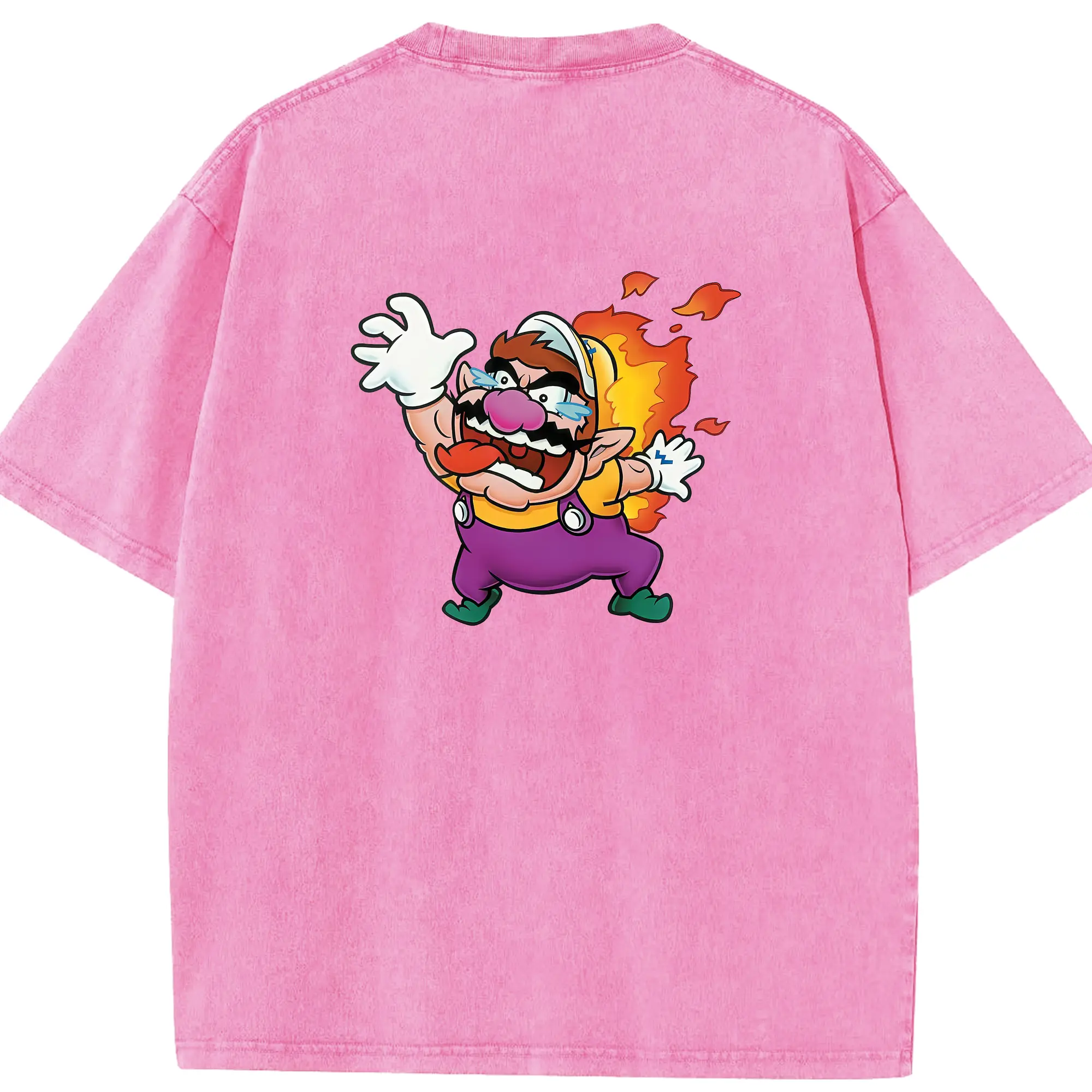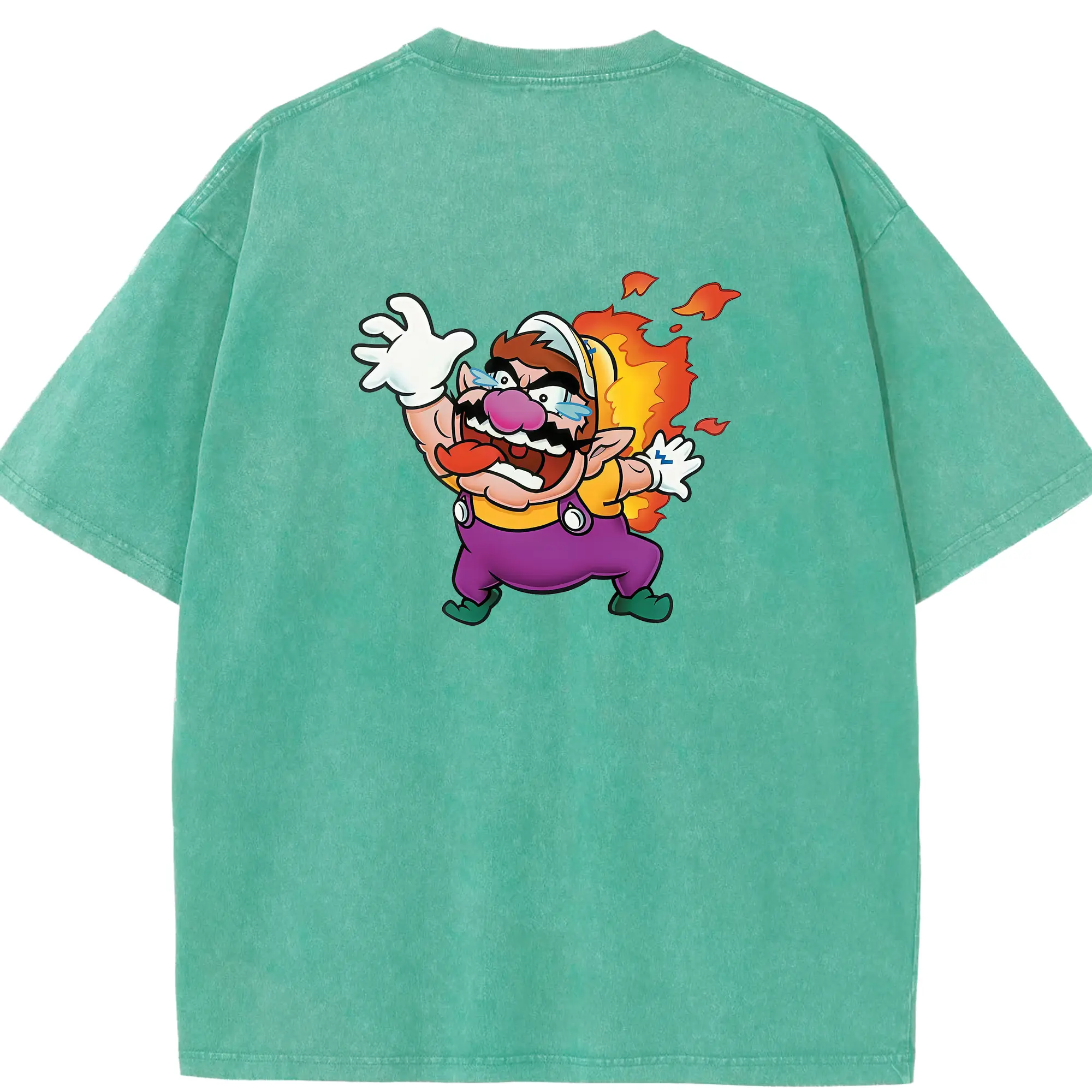 マリオ グッズ ワリオ - 綿100% ヴィンテージ風 半袖Tシャツ ・ フロントプリント ・ 柔らか肌触り ・ 通気性 快適 ・ スポーツ カジュアル 外出用