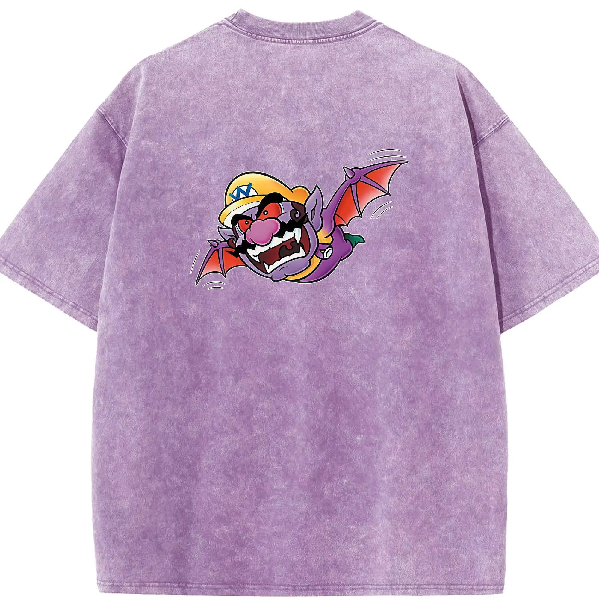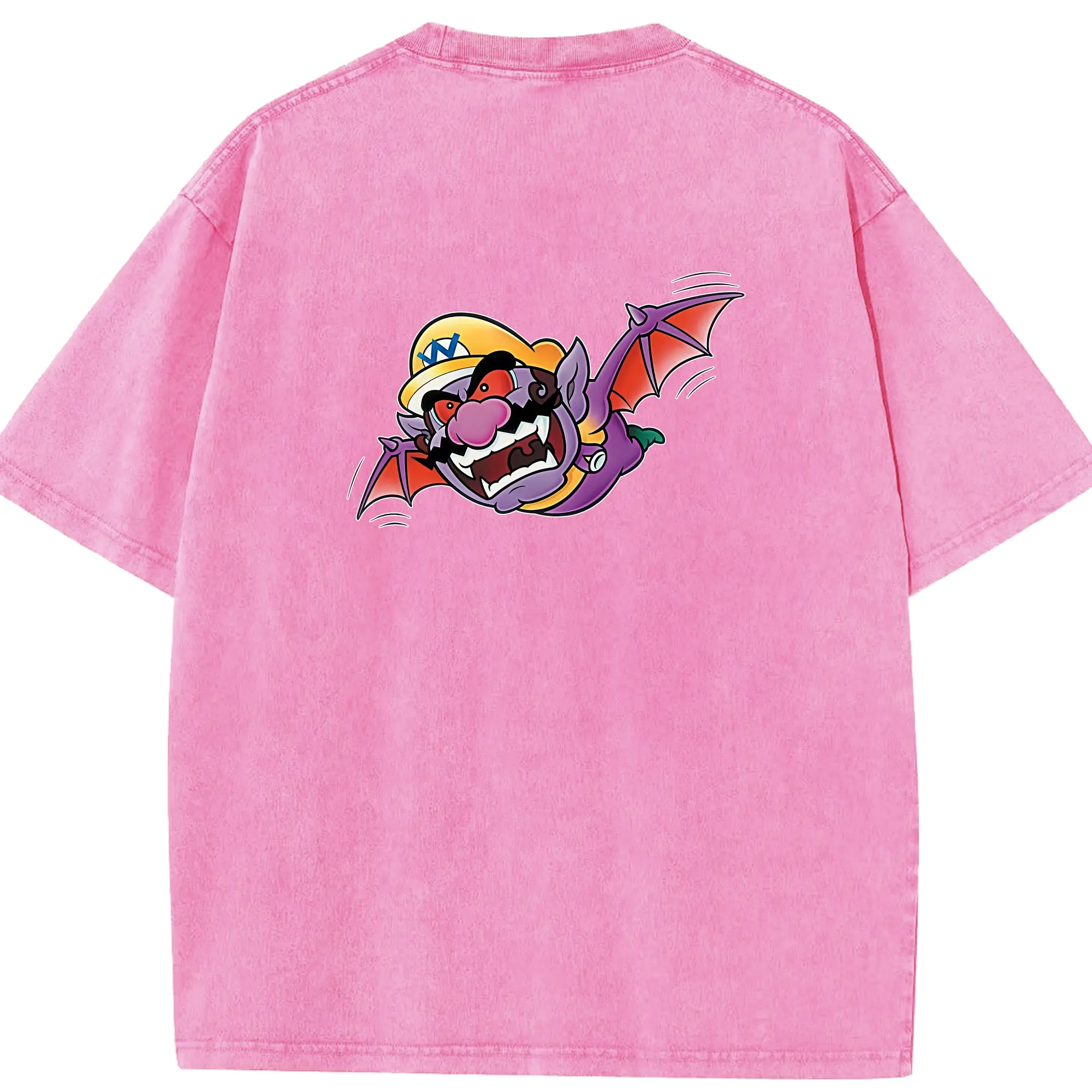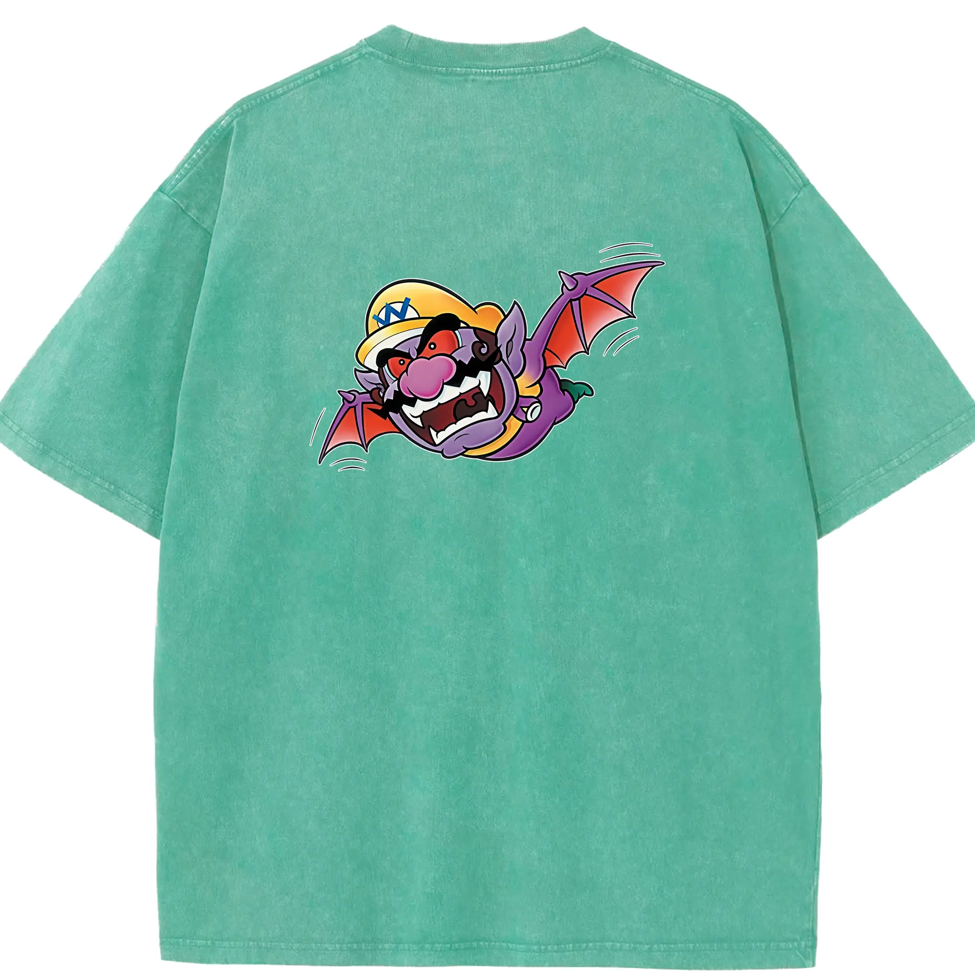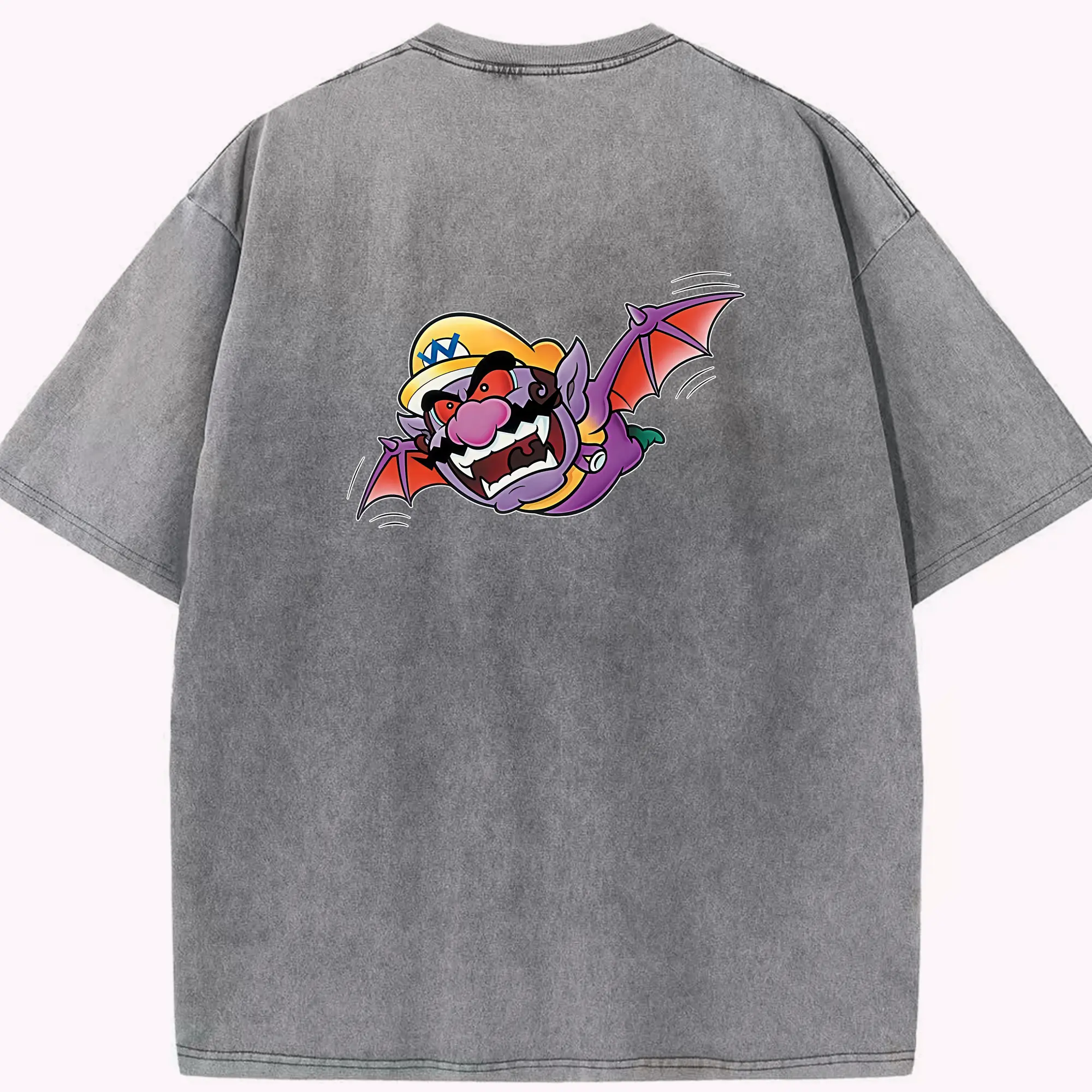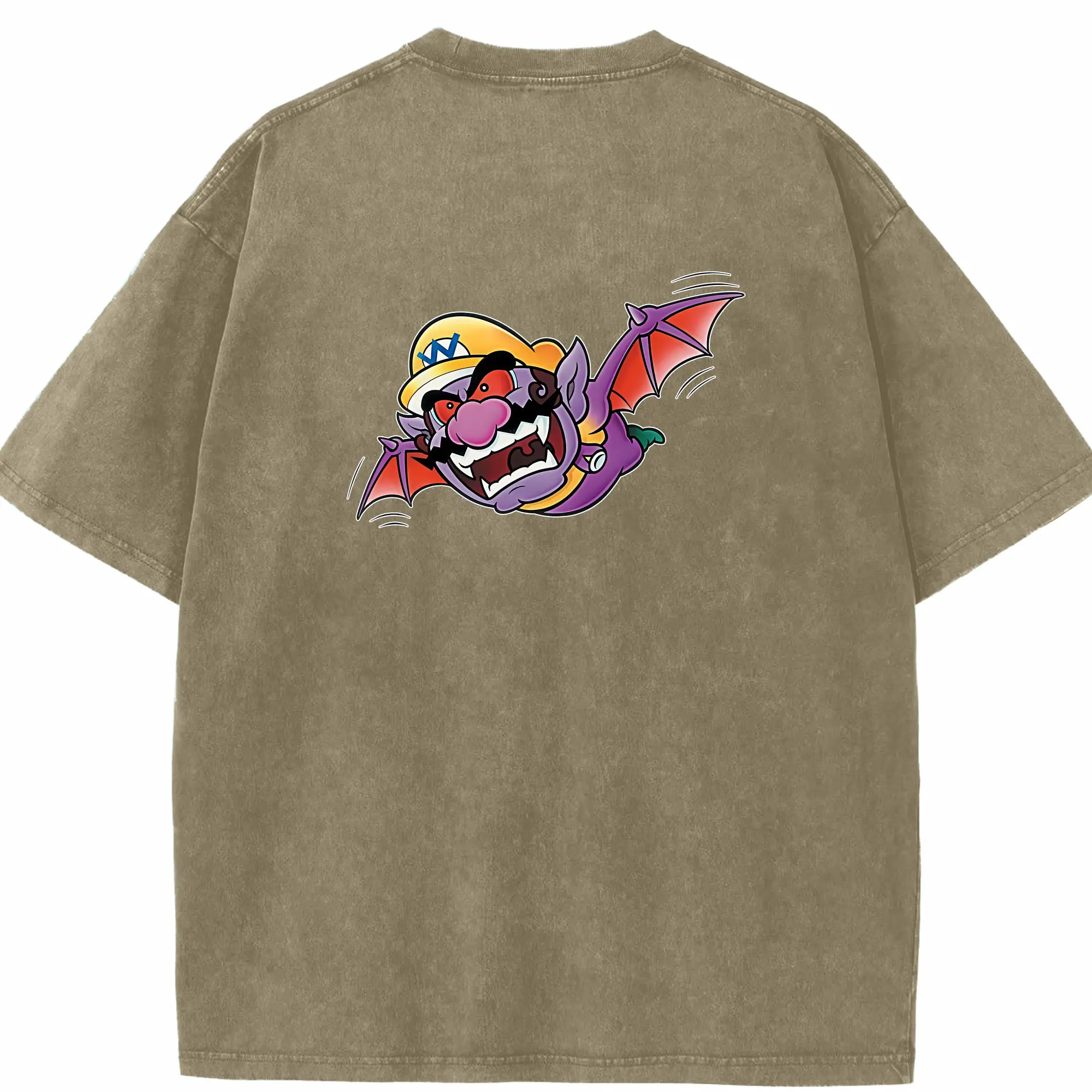マリオ グッズ ワリオ - 綿100% ヴィンテージ風 半袖Tシャツ ・ フロントプリント ・ 柔らか肌触り ・ 通気性 快適 ・ スポーツ カジュアル 外出用