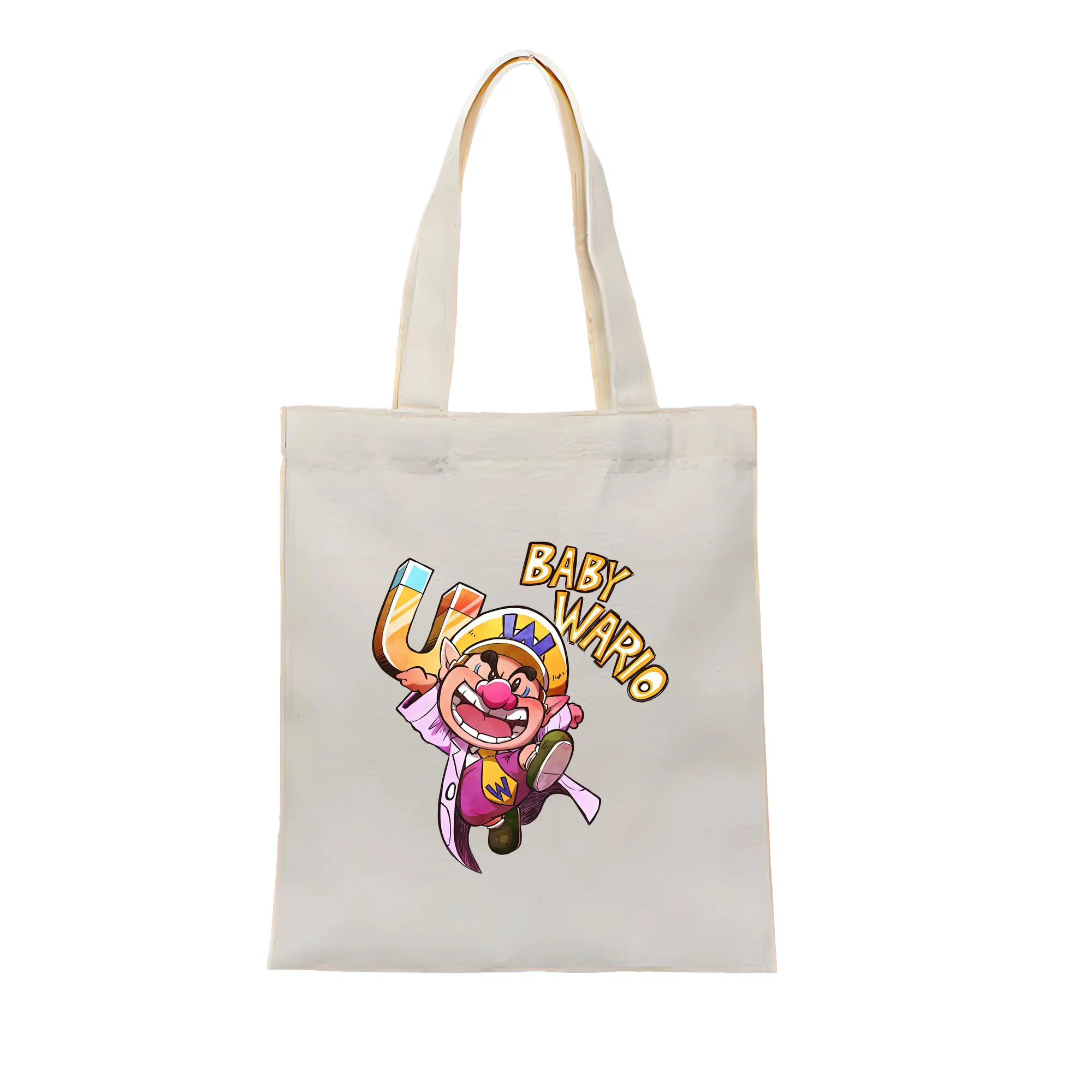 マリオ グッズ ワリオ - 縦型キャンバス手提げバッグ(トートバッグ) ・ キャンバス素材 ・ ショッピング用 ・ 軽量 丈夫 お手入れ簡単
