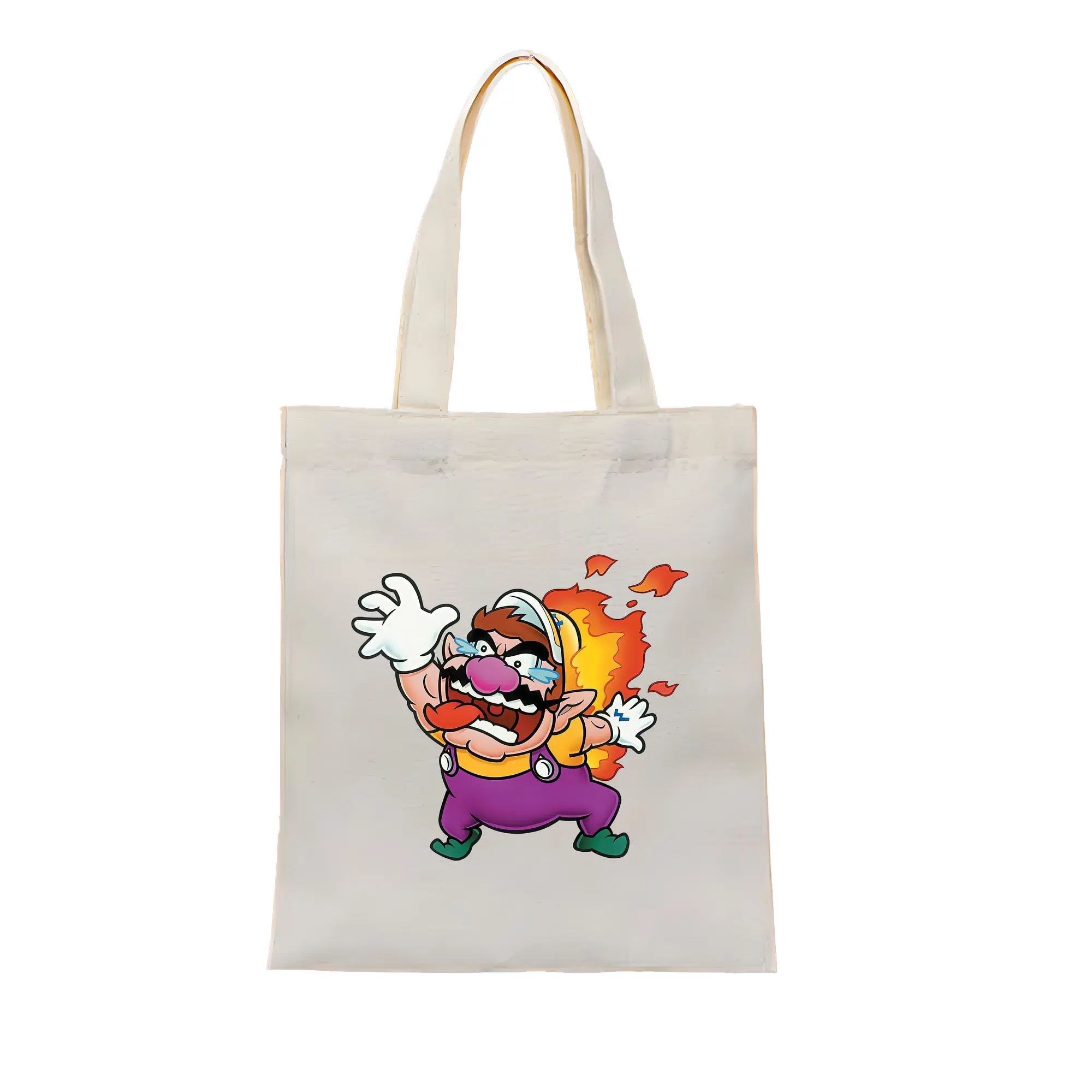 マリオ グッズ ワリオ - 縦型キャンバス手提げバッグ(トートバッグ) ・ キャンバス素材 ・ ショッピング用 ・ 軽量 丈夫 お手入れ簡単