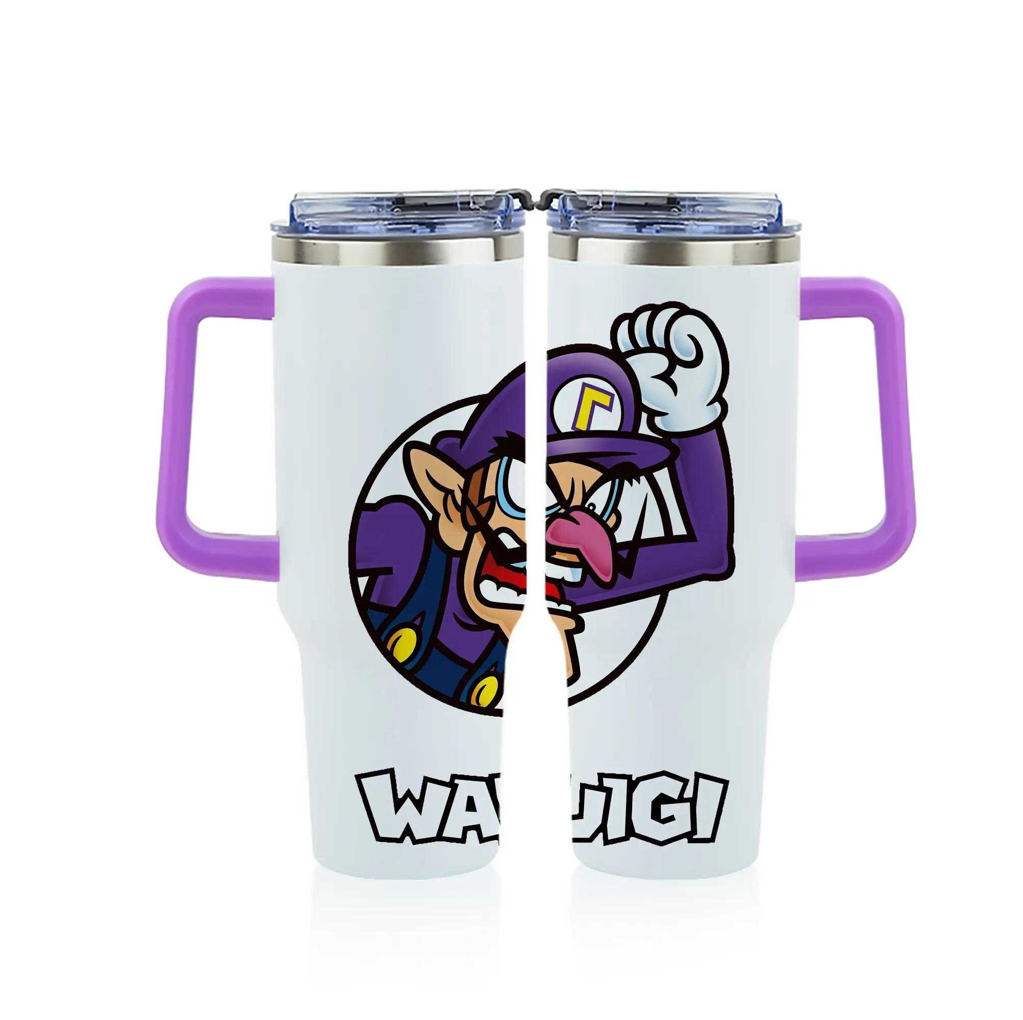 マリオ グッズ ワルイージ - 1200mL フルプリント車用タンブラー ・ 304ステンレス 内側 ・ 201ステンレス 外側 ・ 保温 保冷 ・ 通勤 ドライブ アウトドア用