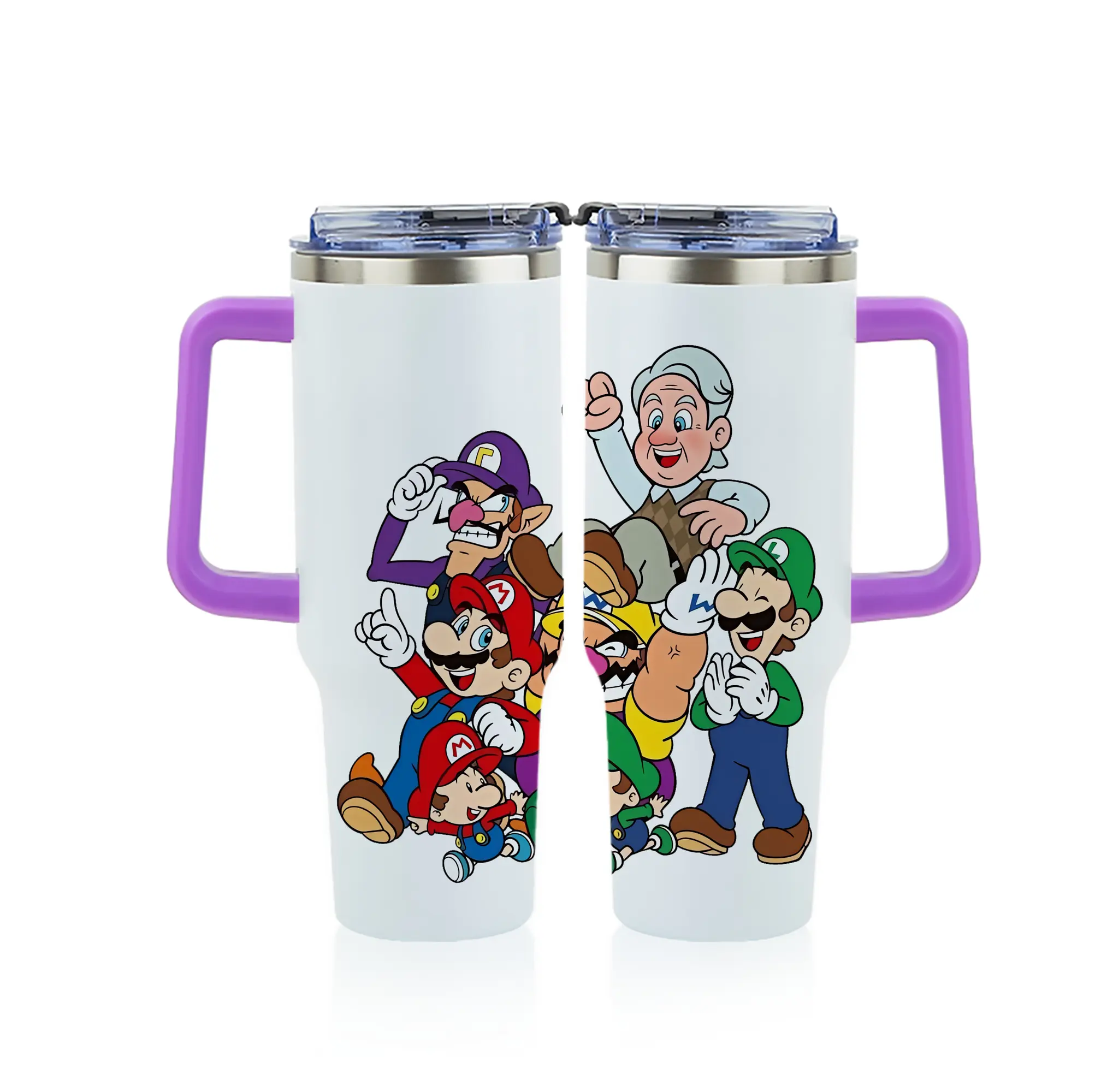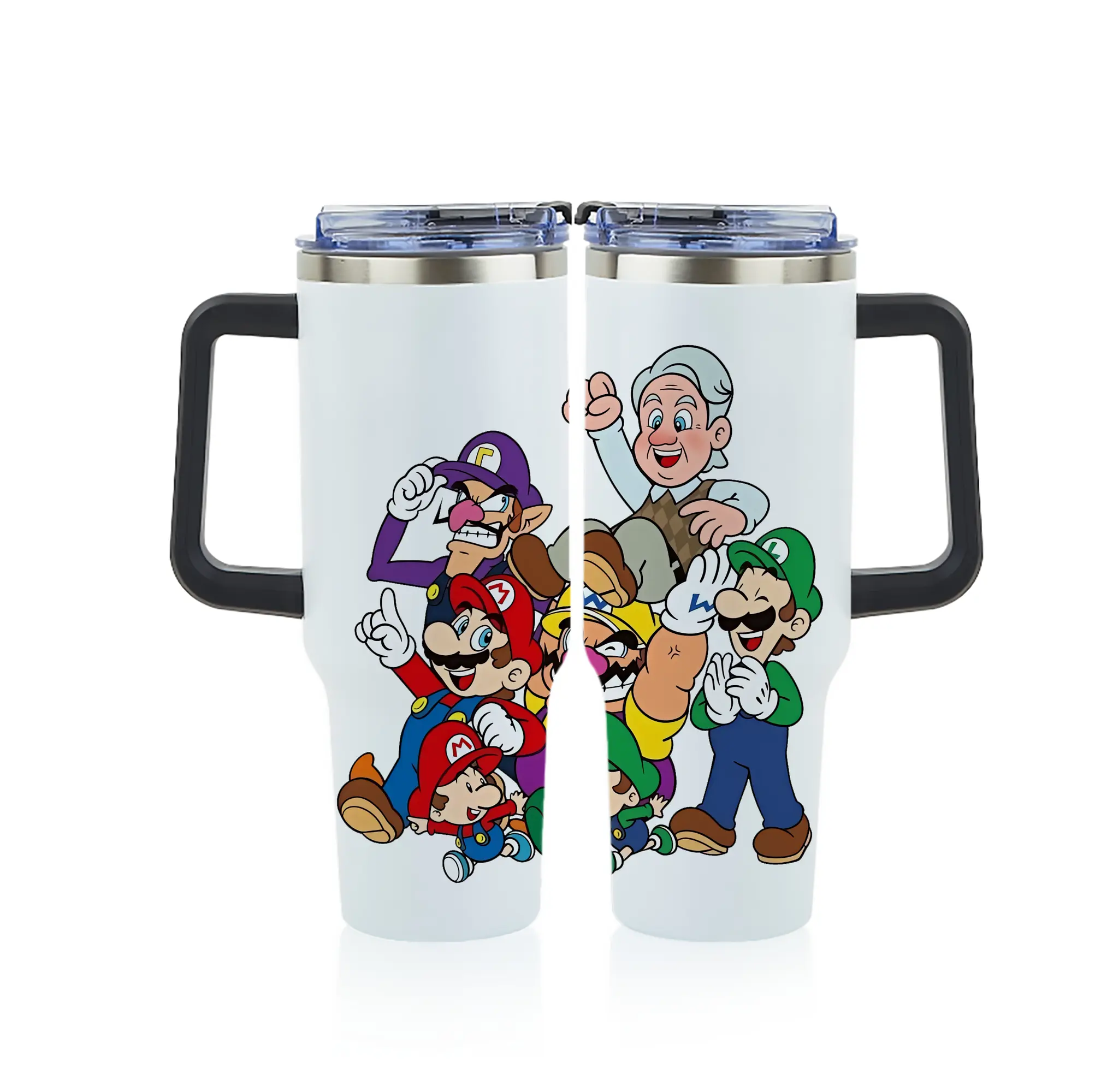 マリオ グッズ ワルイージ - 1200mL フルプリント車用タンブラー ・ 304ステンレス 内側 ・ 201ステンレス 外側 ・ 保温 保冷 ・ 通勤 ドライブ アウトドア用
