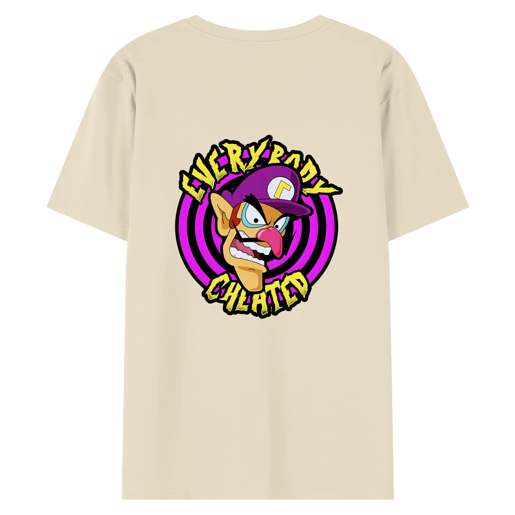 マリオ グッズ ワルイージ - 綿100% ヴィンテージ風 半袖Tシャツ ・ 背面プリント ・ 柔らか肌触り ・ 通気性 快適 ・ スポーツ カジュアル 外出用
