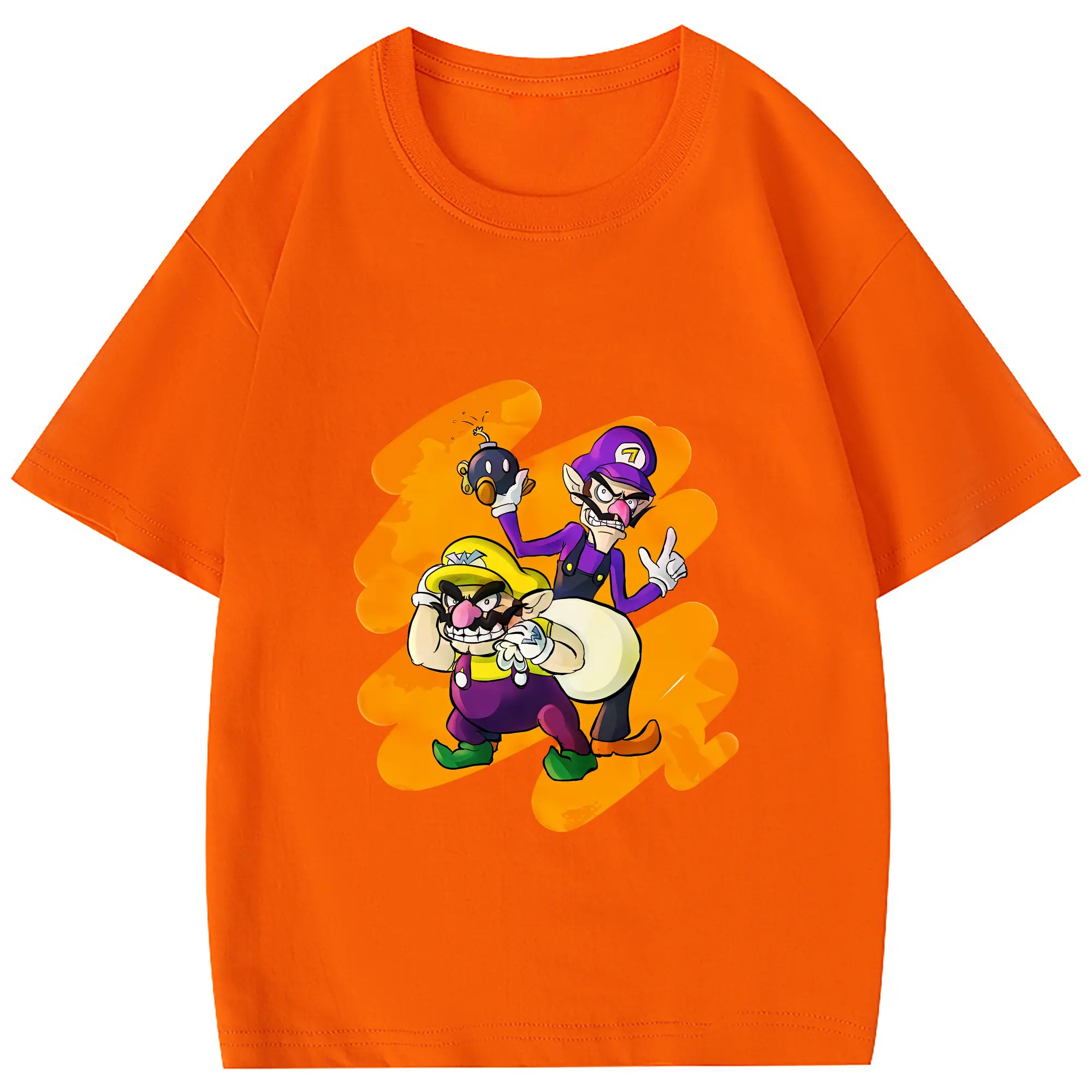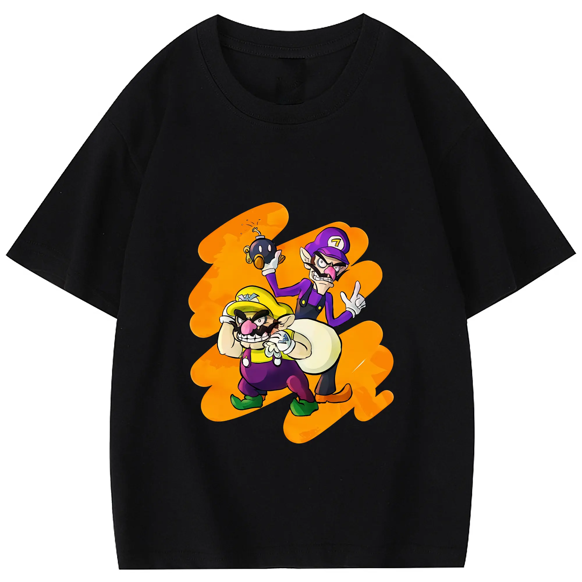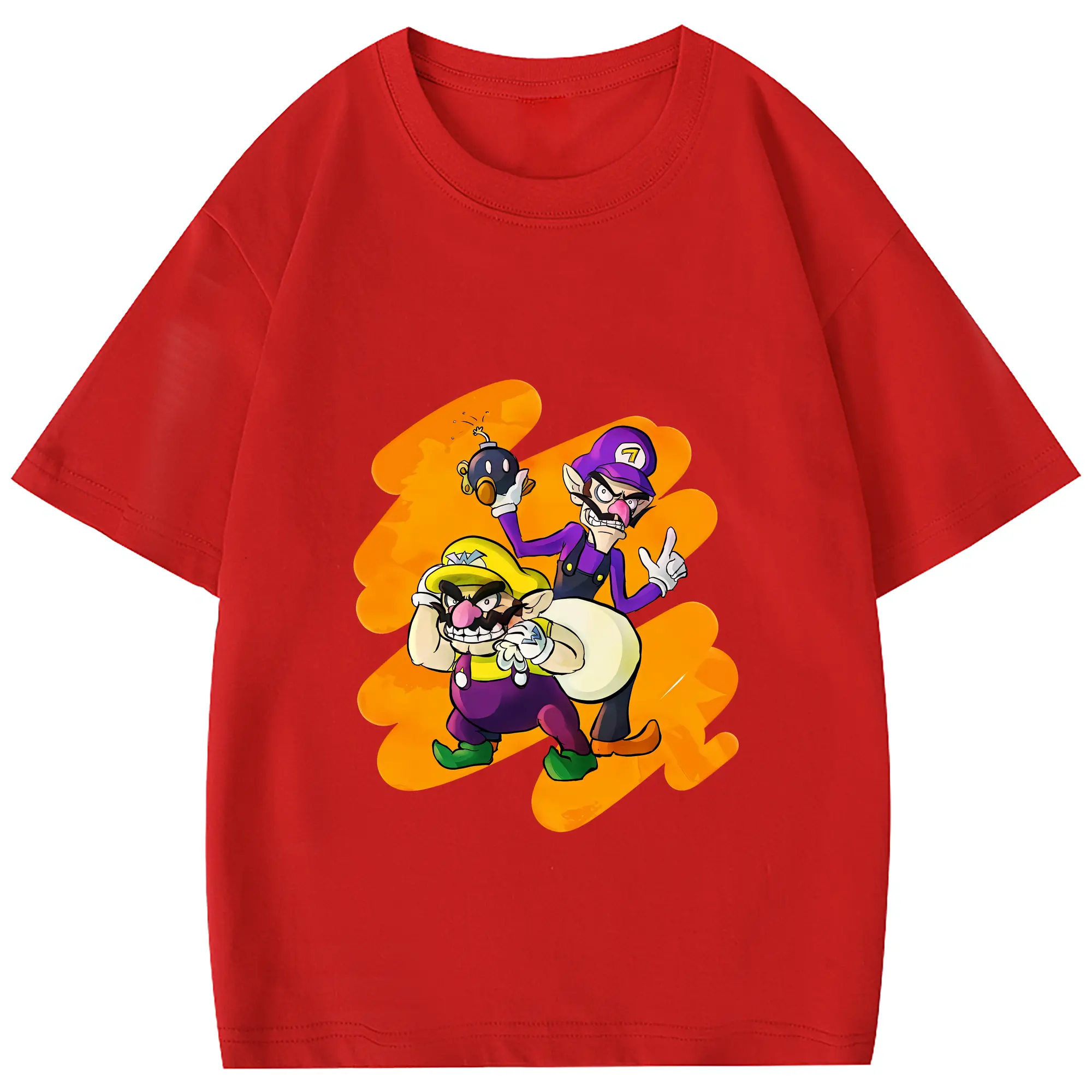 マリオ グッズ ワルイージ - 綿100% 半袖Tシャツ ・ バックプリント ・ 快適 通気性 ・ 日常使い 散歩 スポーツ用