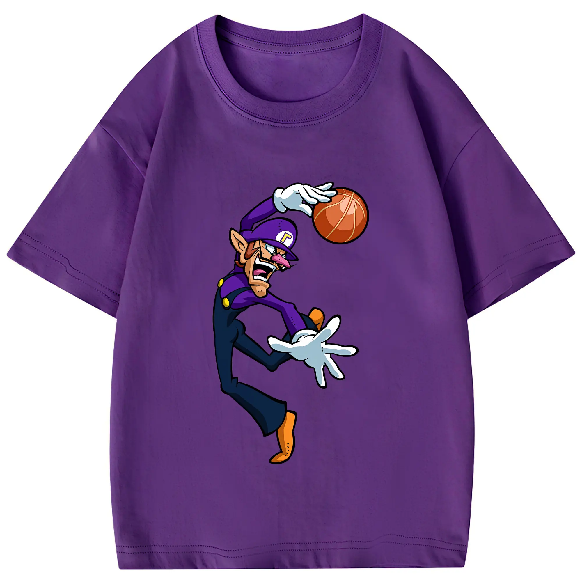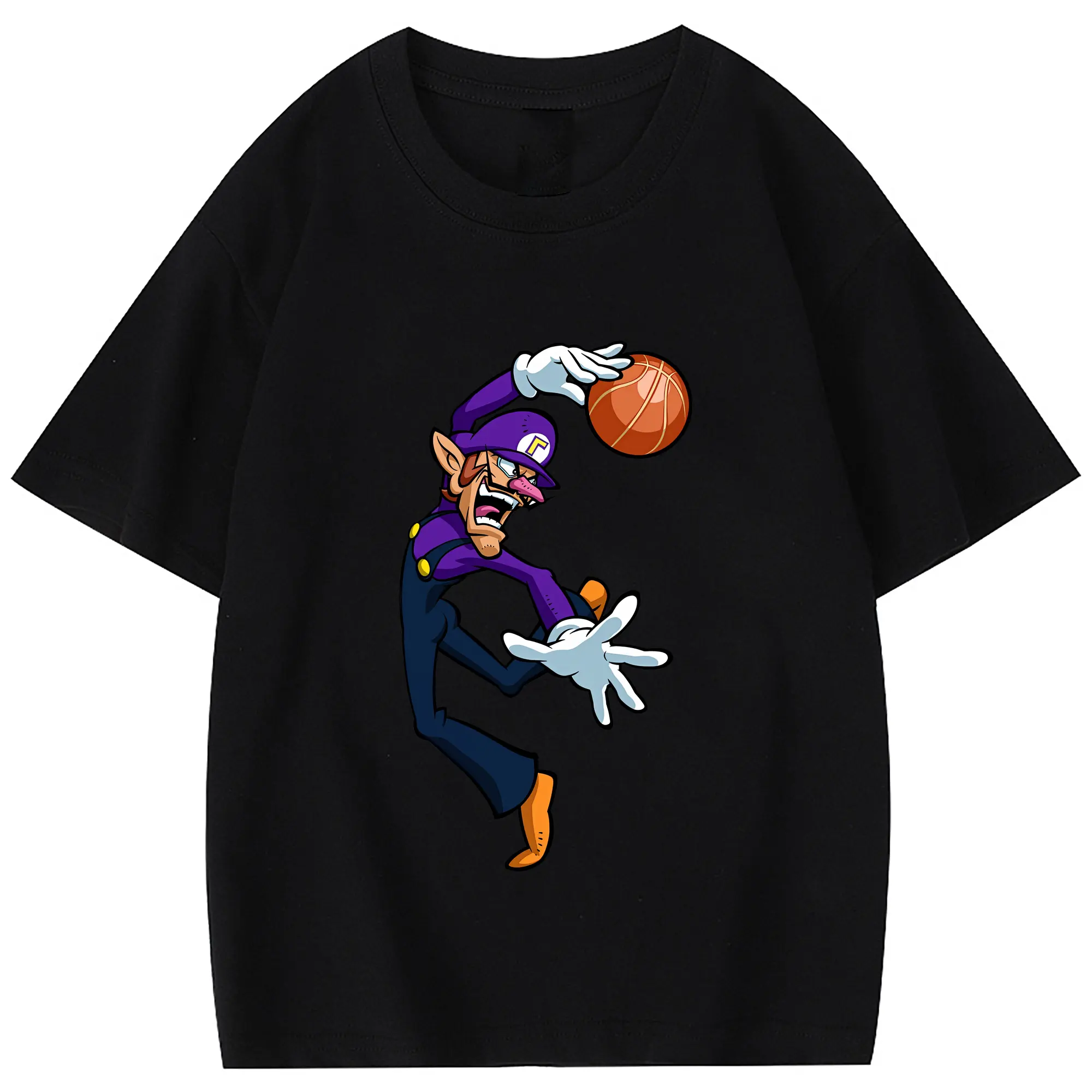 マリオ グッズ ワルイージ - 綿100% 半袖Tシャツ ・ バックプリント ・ 快適 通気性 ・ 日常使い 散歩 スポーツ用