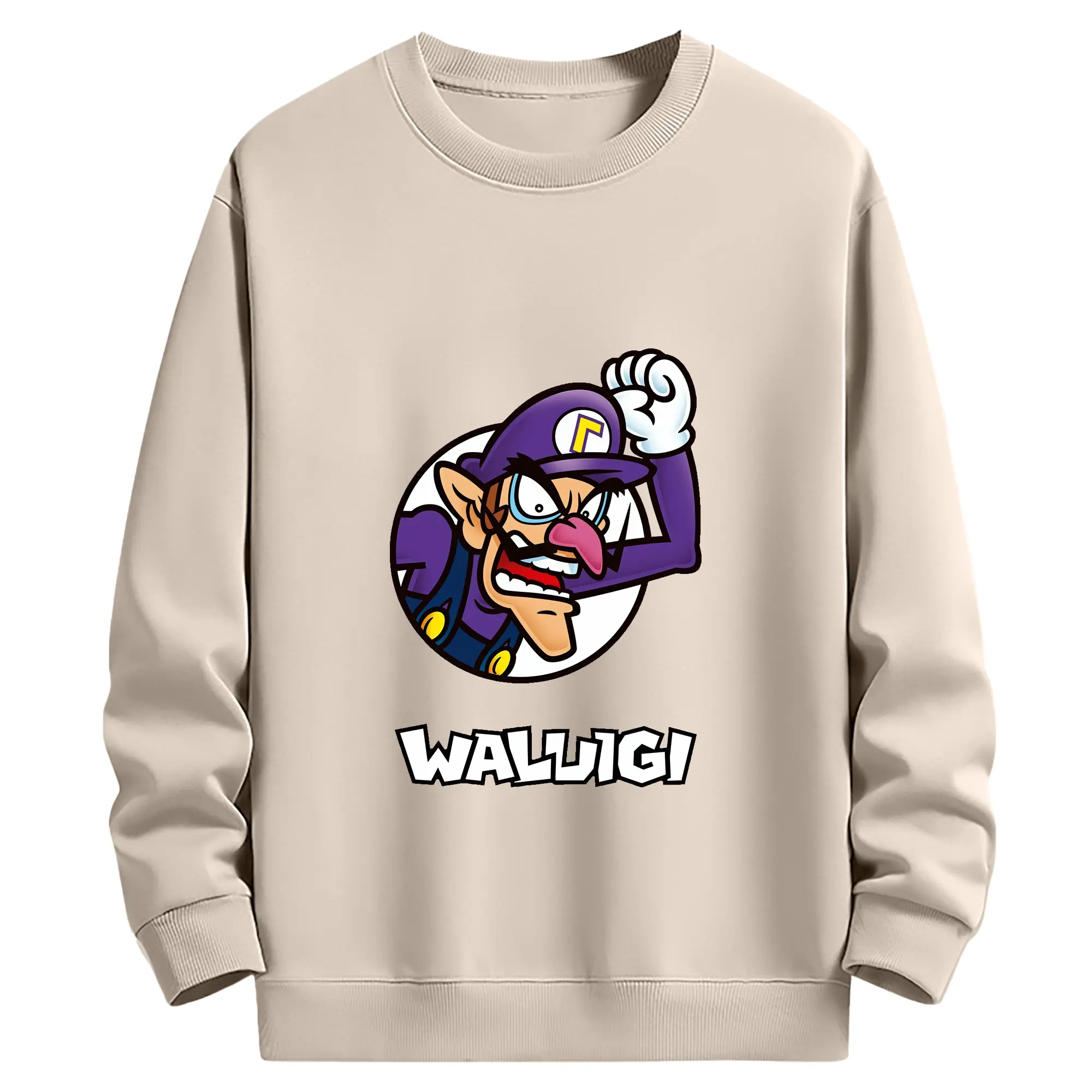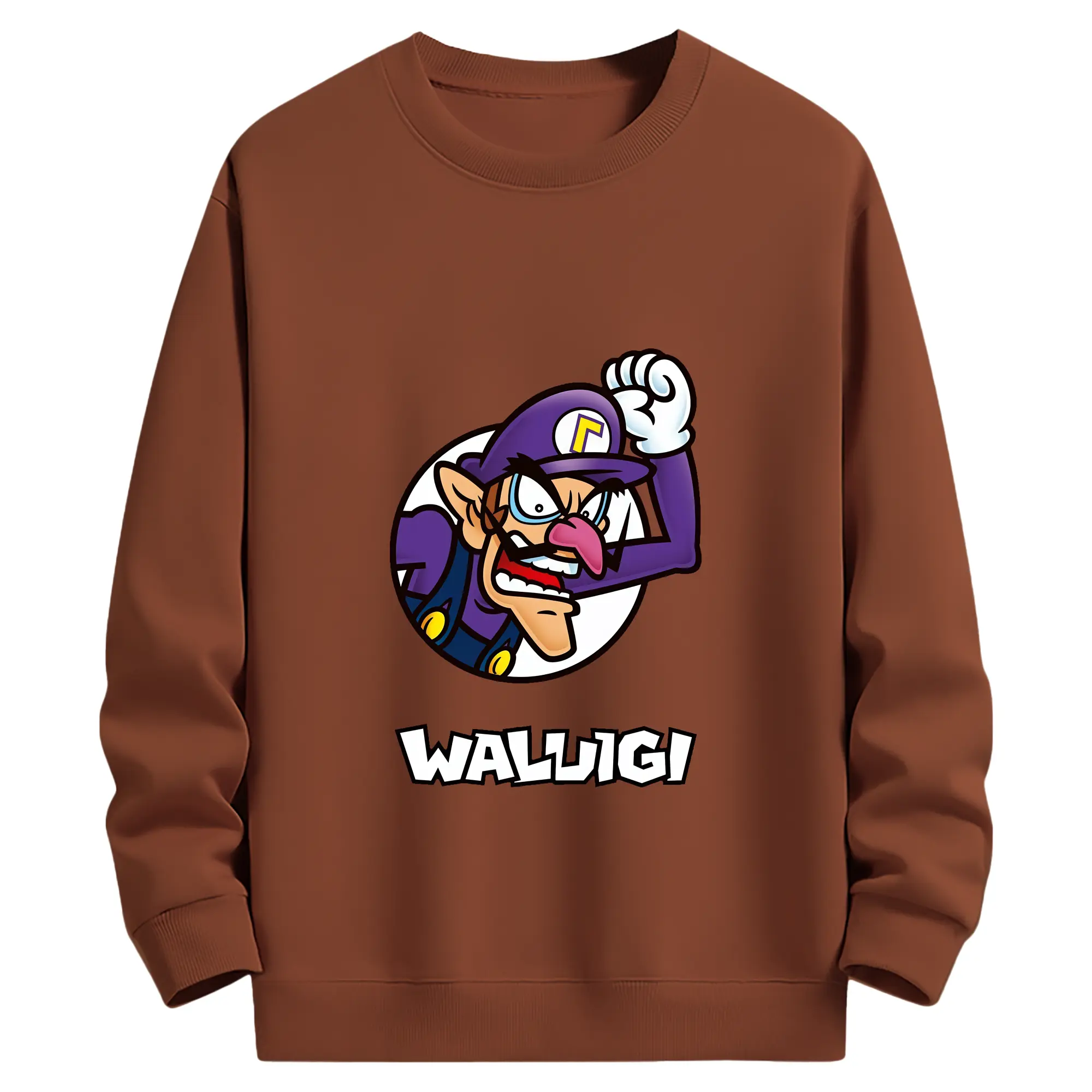 マリオ グッズ ワルイージ - 薄手 クルーネック スウェット 裏毛260g · ポリエステル 春秋向け カジュアル 男女兼用 · トレーナー デイリー スポーツ 散歩に最適