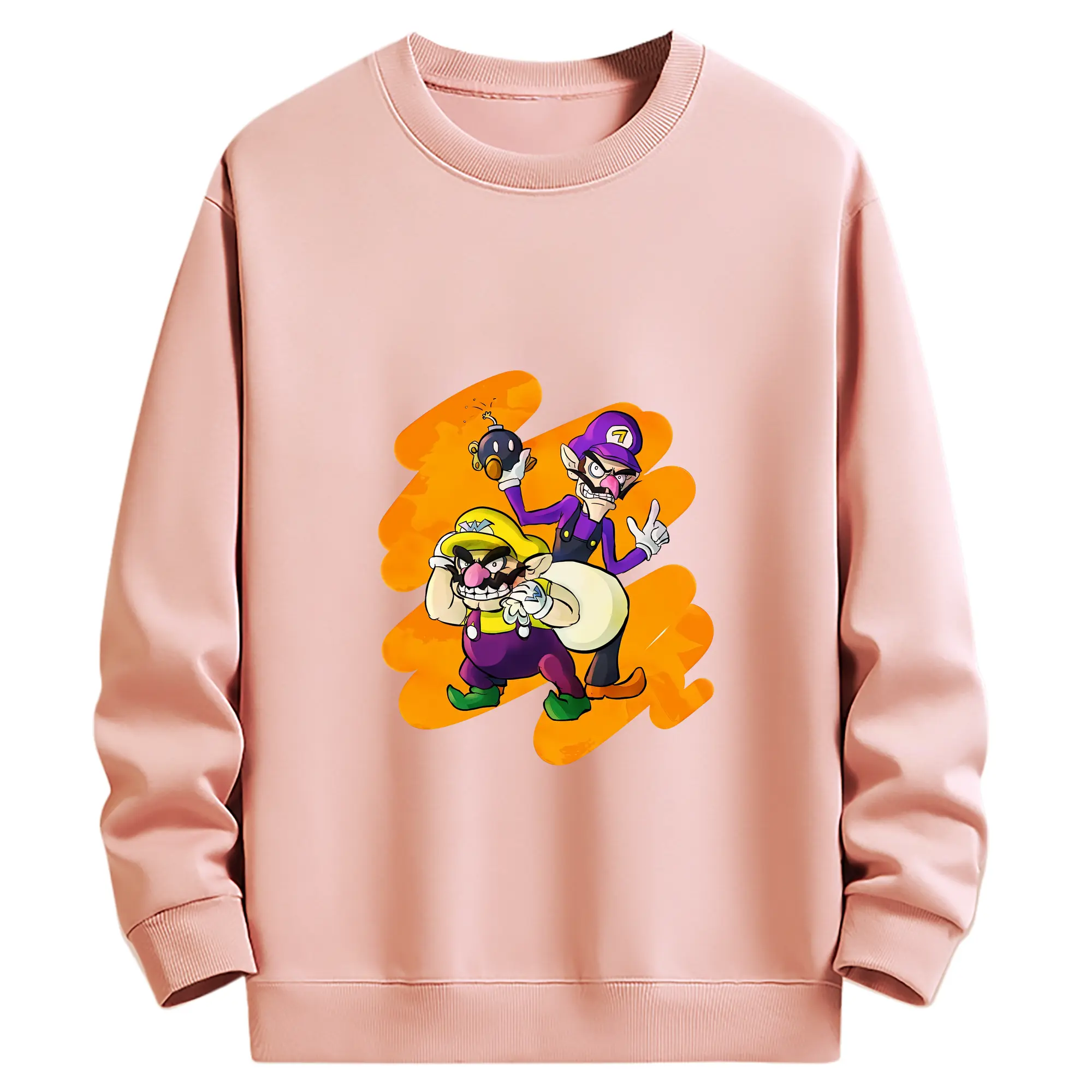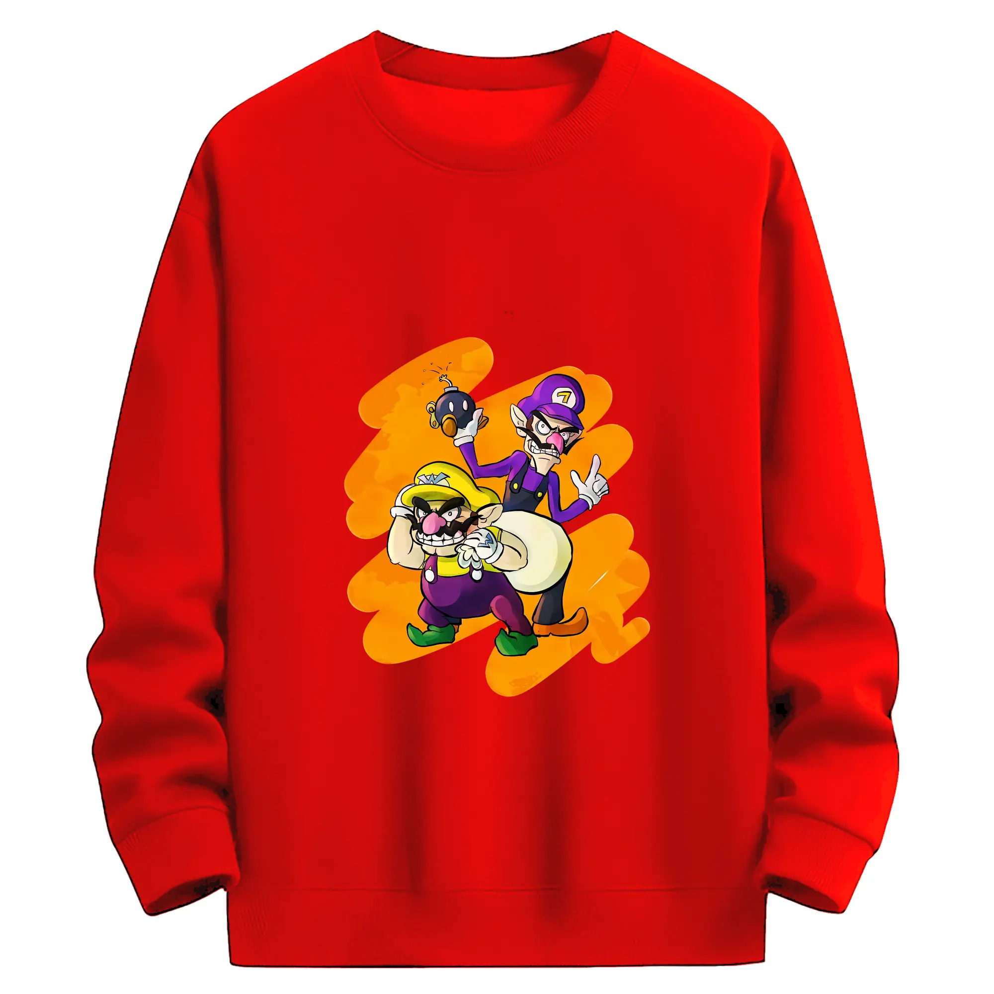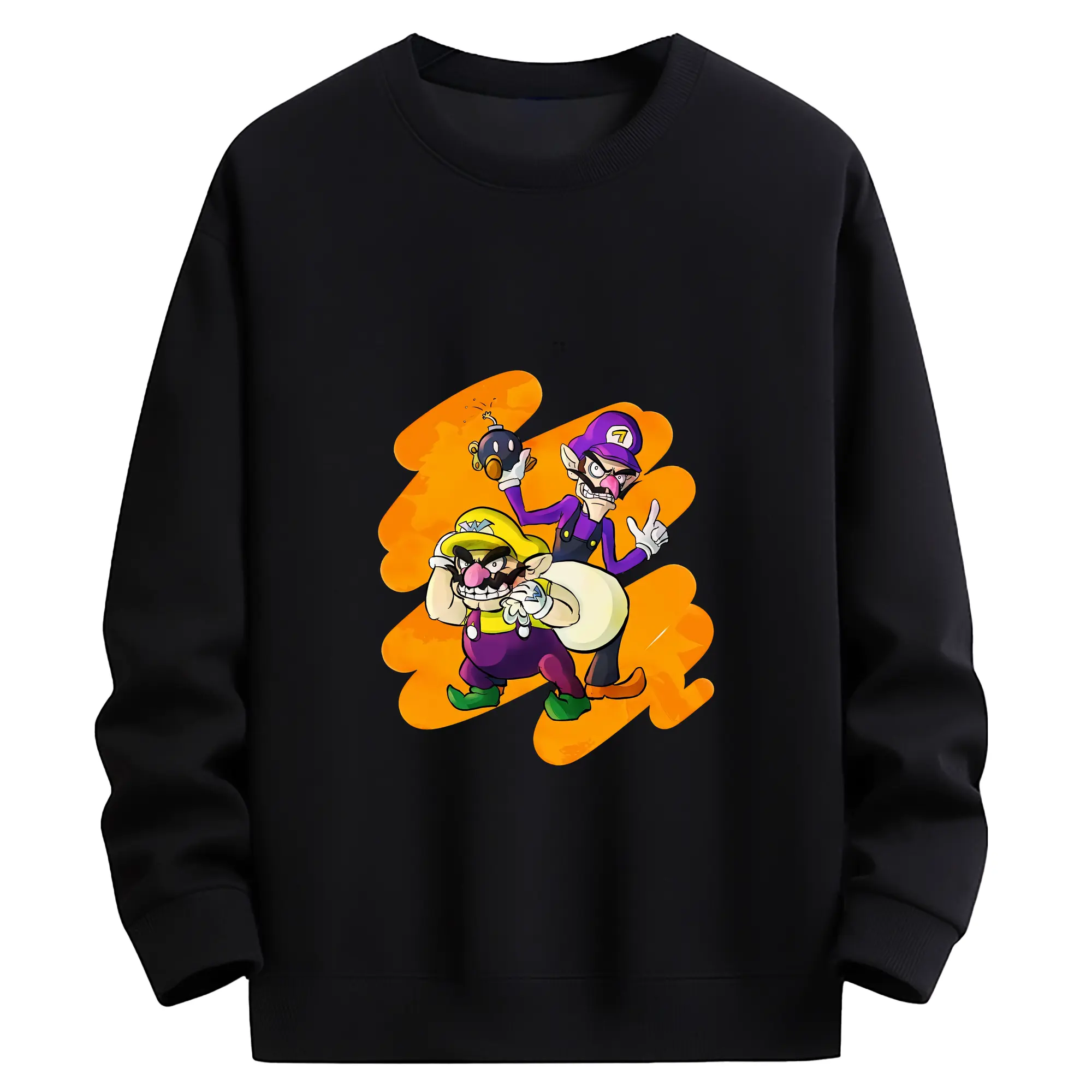 マリオ グッズ ワルイージ - 高品質 クルーネック スウェット ・ コットン59% ポリエステル41% ・ ユニセックス 長袖 トレーナー ・ カジュアル デイリー スポーツ 散歩用