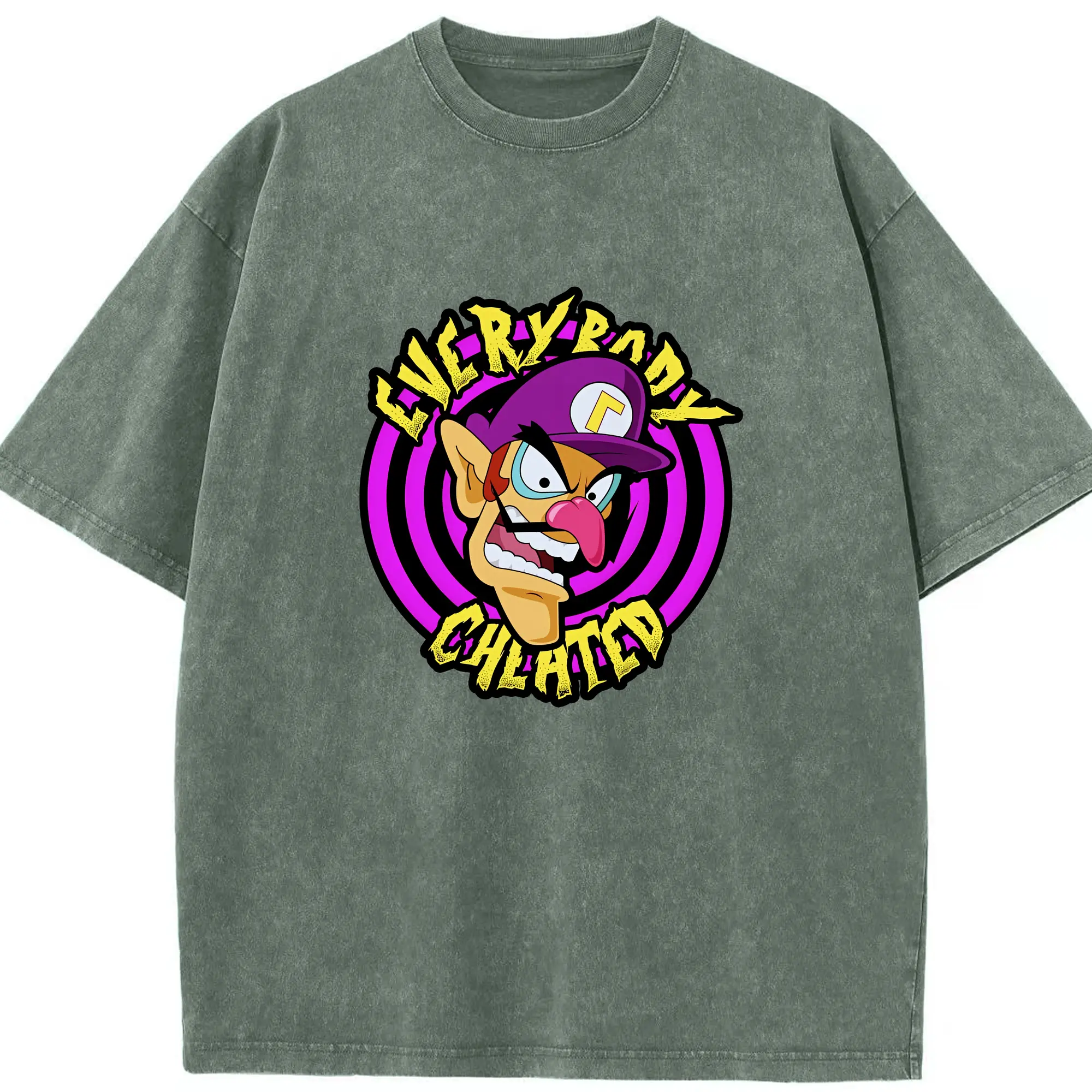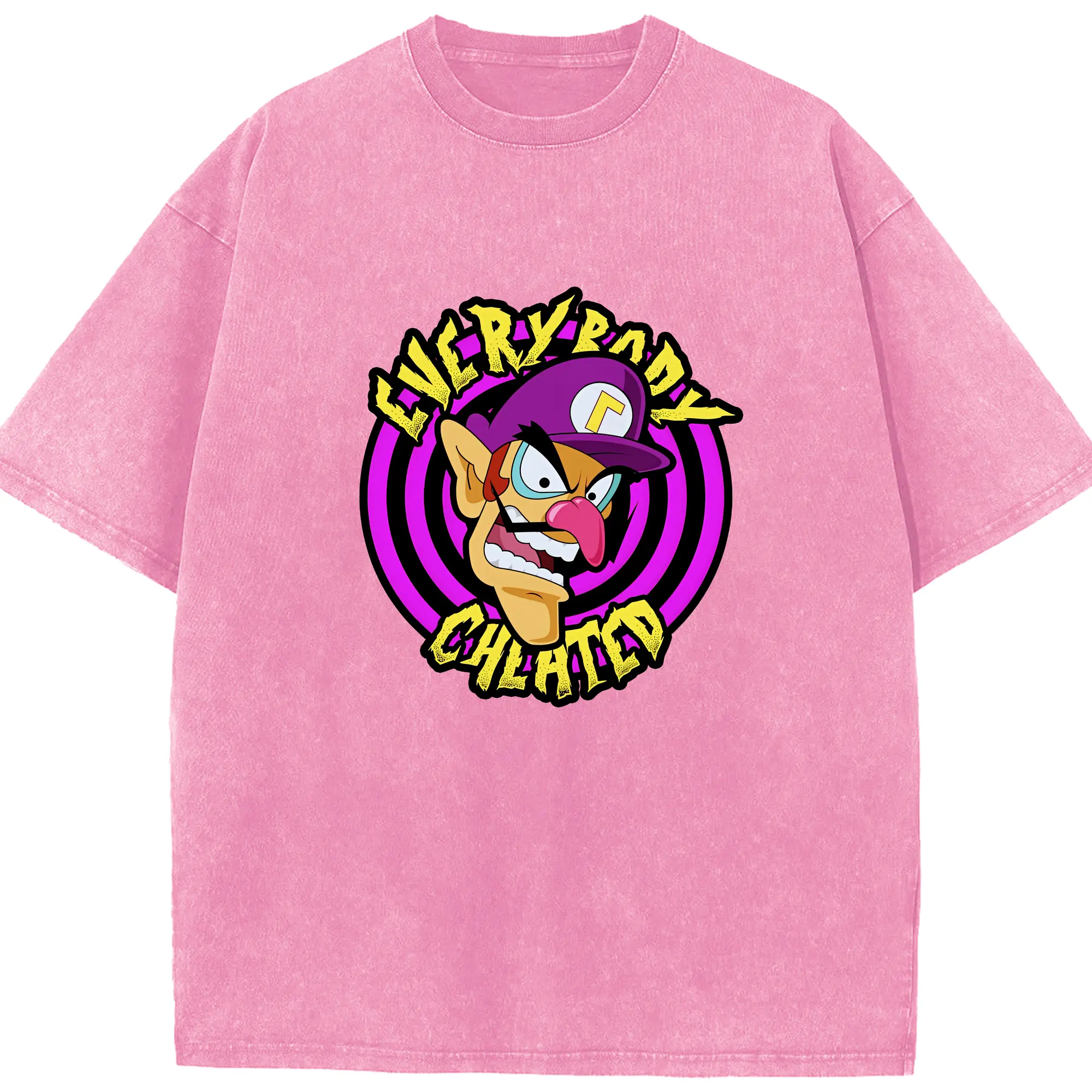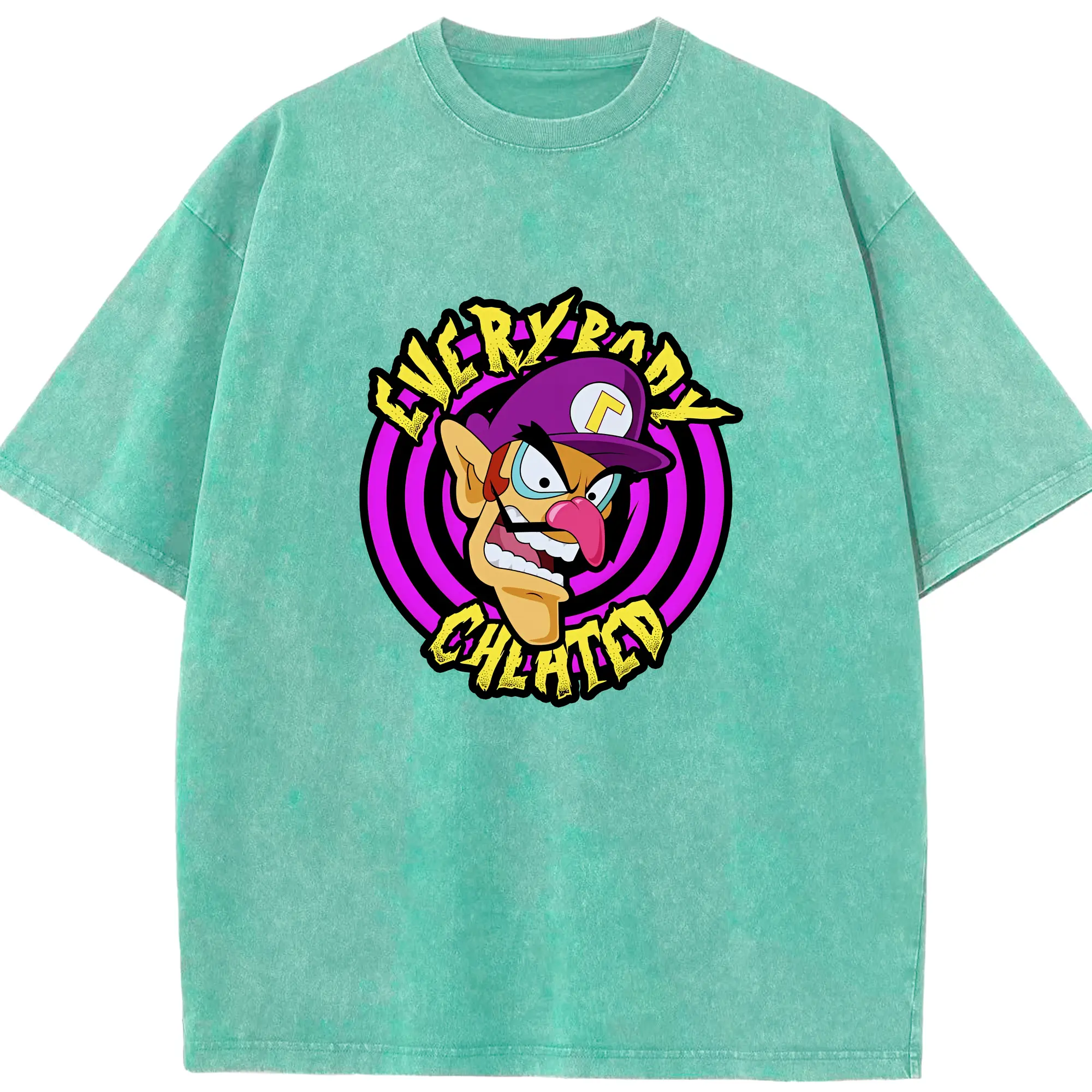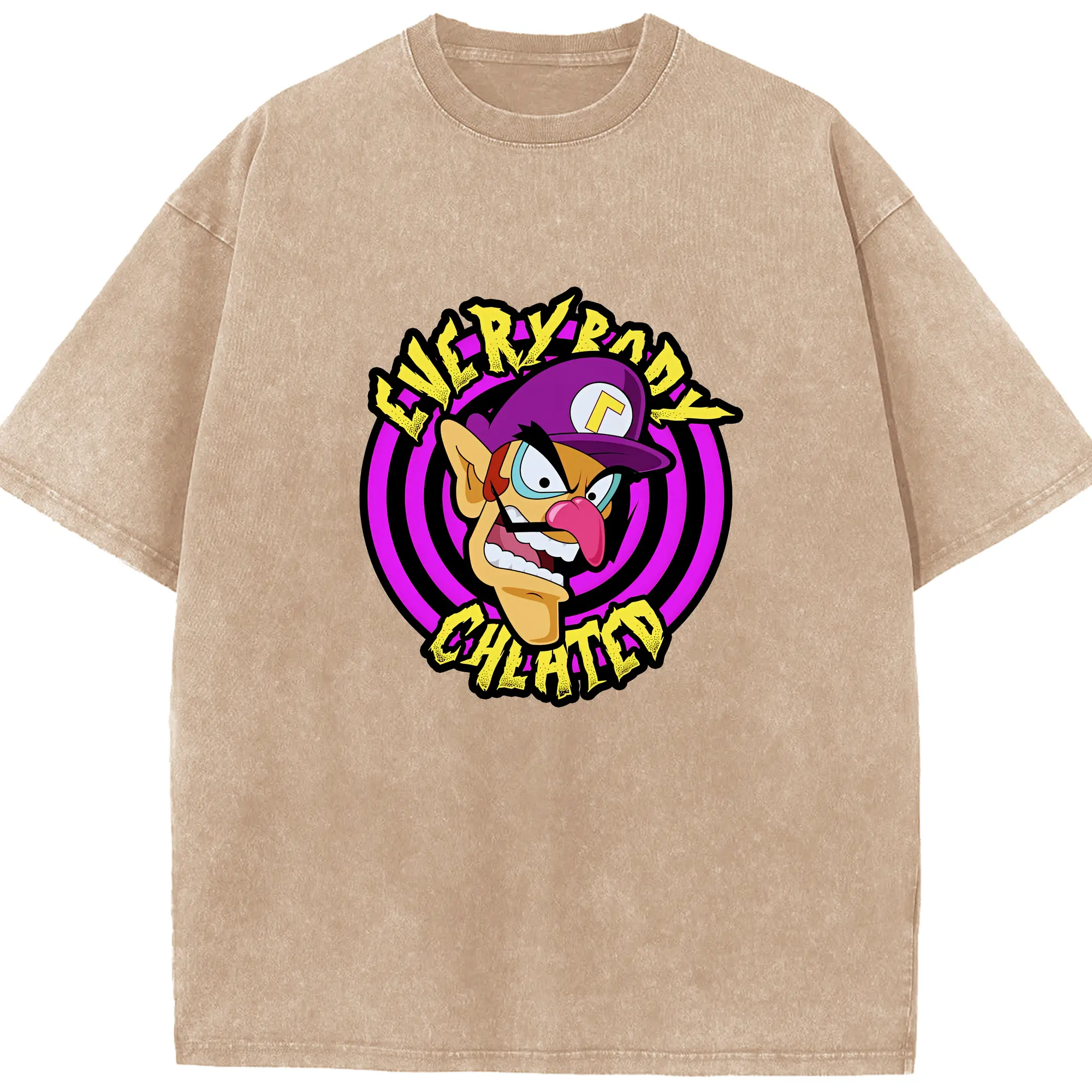 マリオ グッズ ワルイージ - 綿100% ヴィンテージ風 半袖Tシャツ ・ 背面プリント ・ 柔らか肌触り ・ 通気性 快適 ・ スポーツ カジュアル 外出用