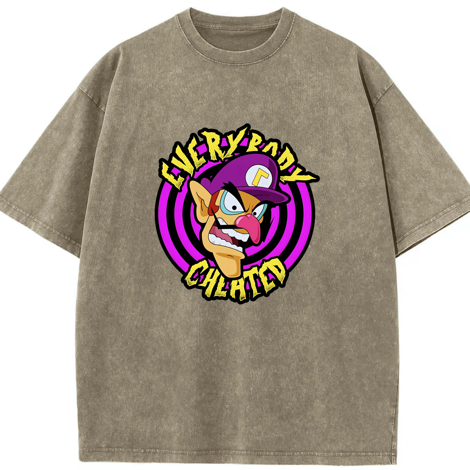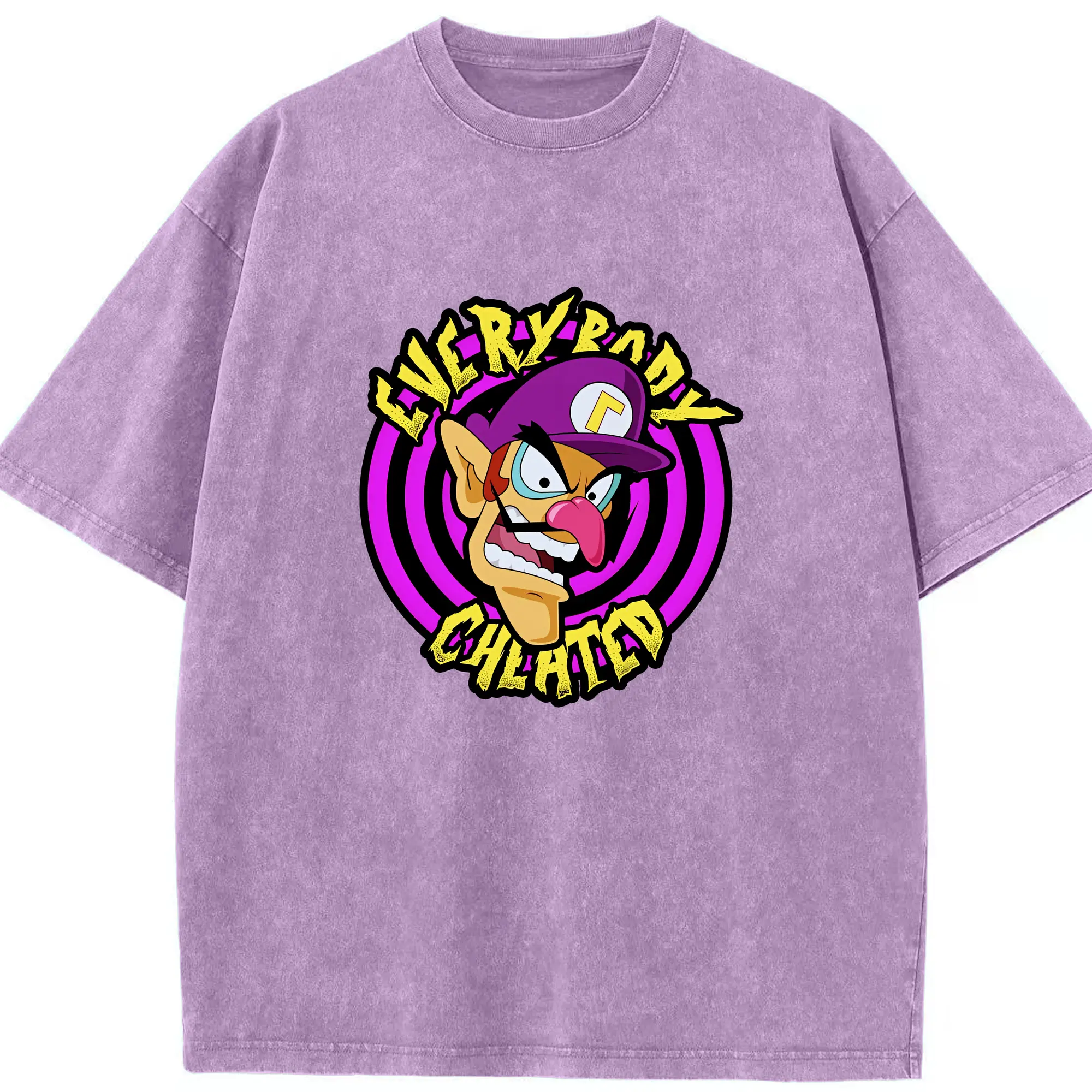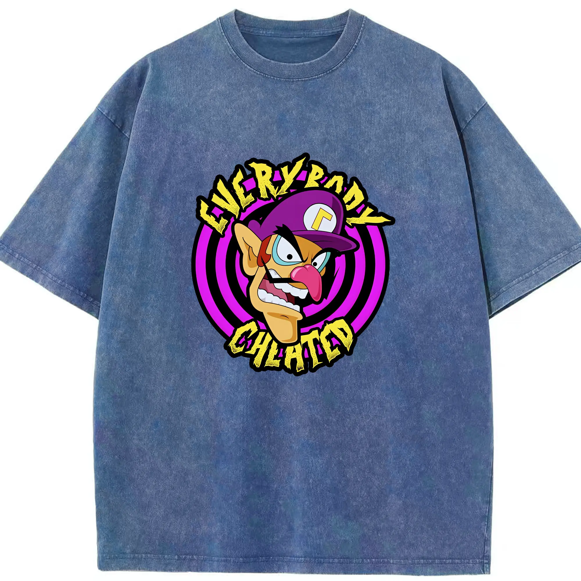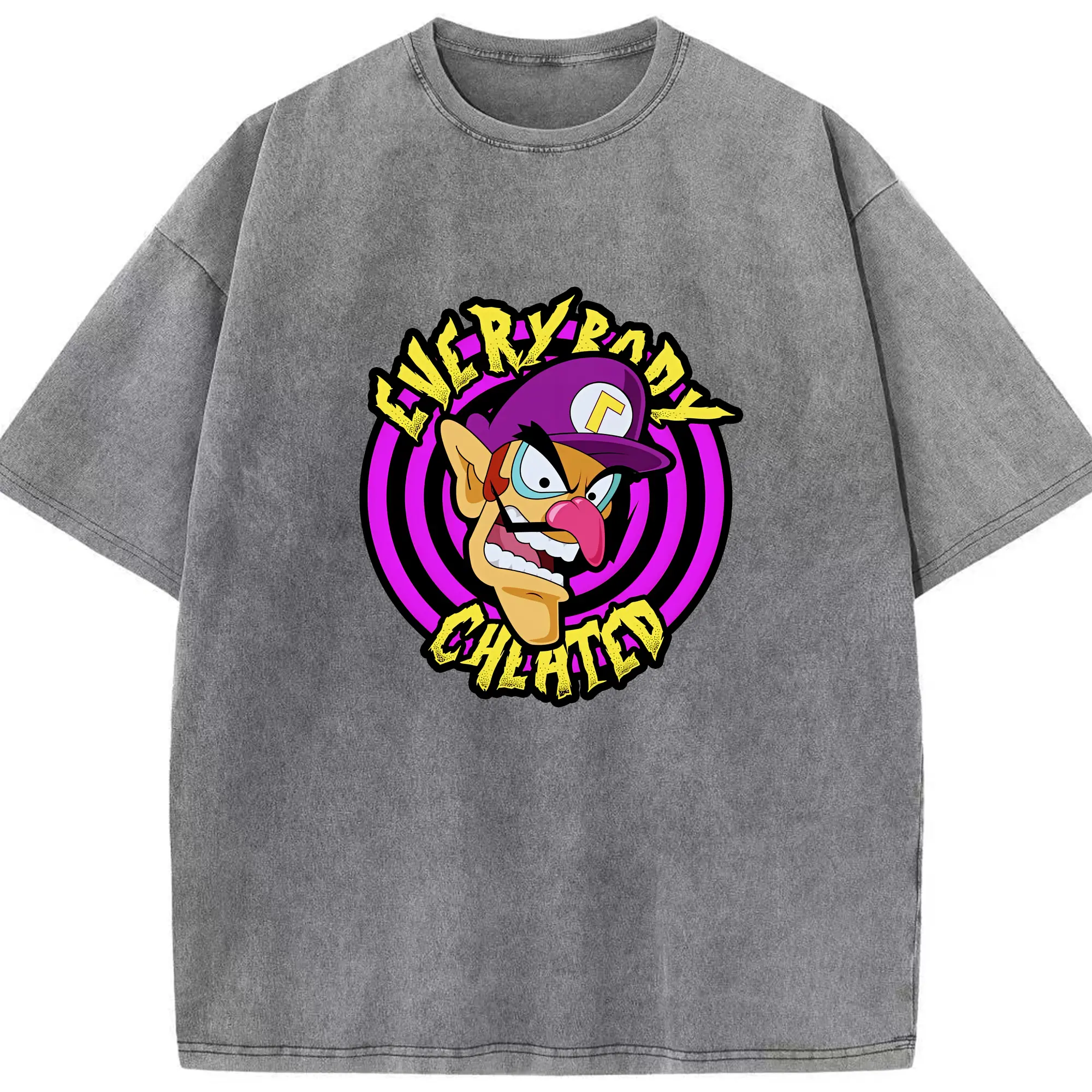 マリオ グッズ ワルイージ - 綿100% ヴィンテージ風 半袖Tシャツ ・ 背面プリント ・ 柔らか肌触り ・ 通気性 快適 ・ スポーツ カジュアル 外出用