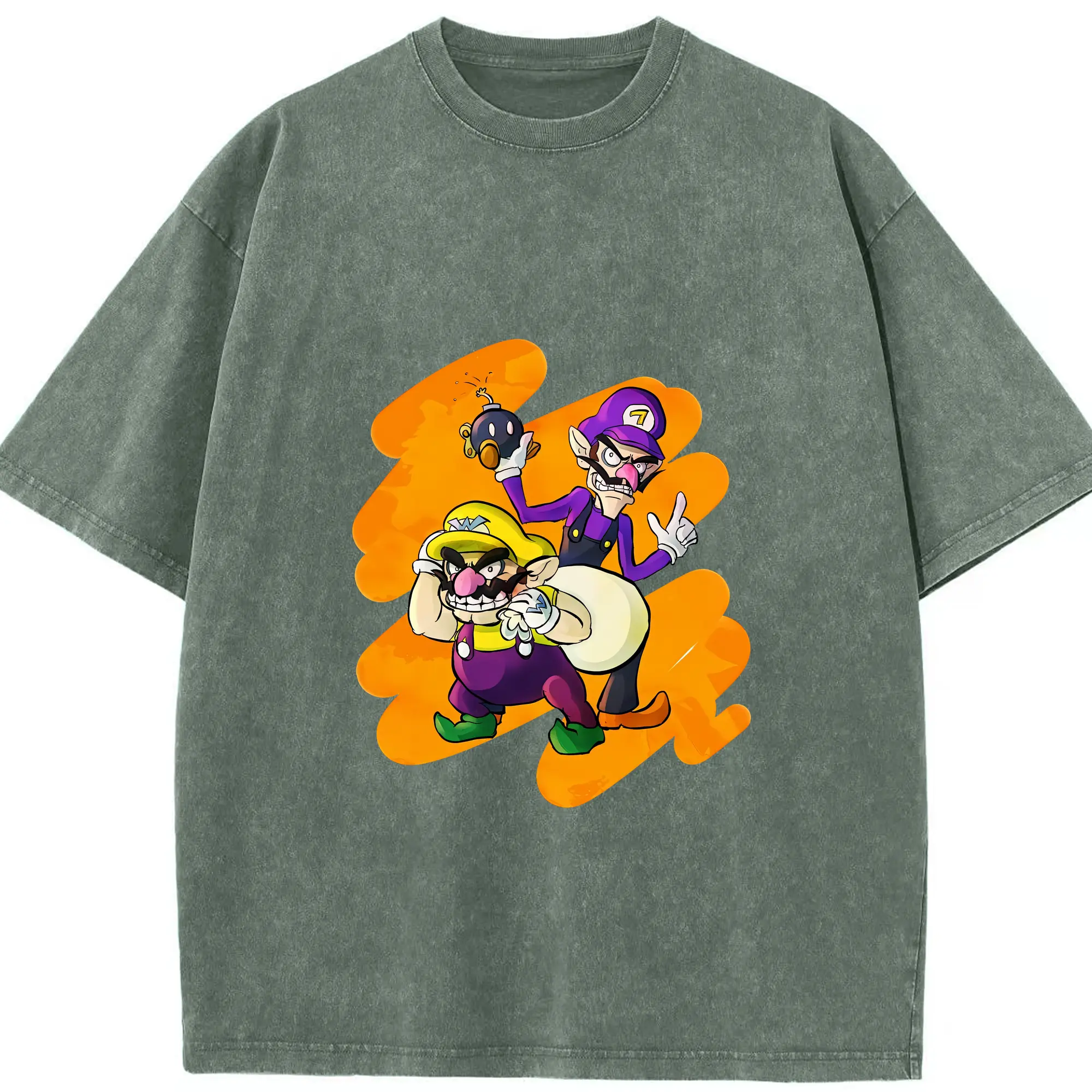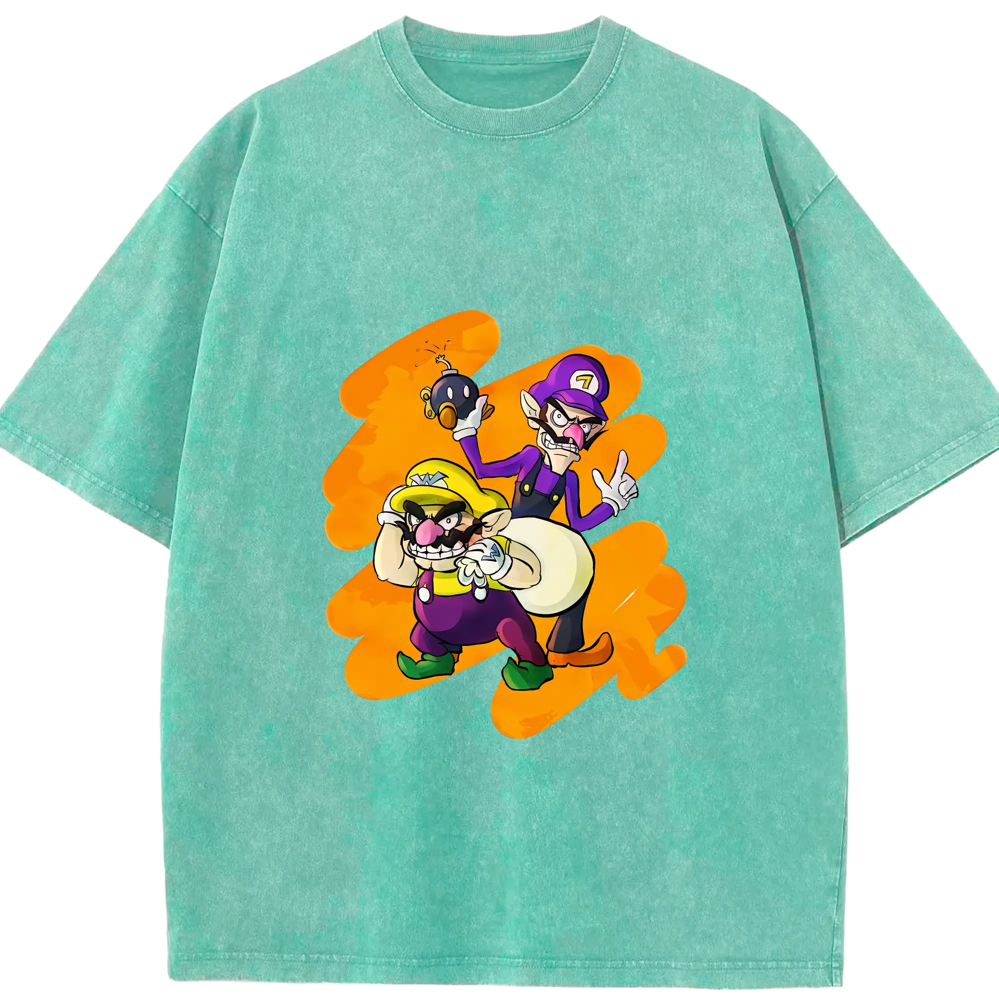 マリオ グッズ ワルイージ - 綿100% ヴィンテージ風 半袖Tシャツ ・ 背面プリント ・ 柔らか肌触り ・ 通気性 快適 ・ スポーツ カジュアル 外出用