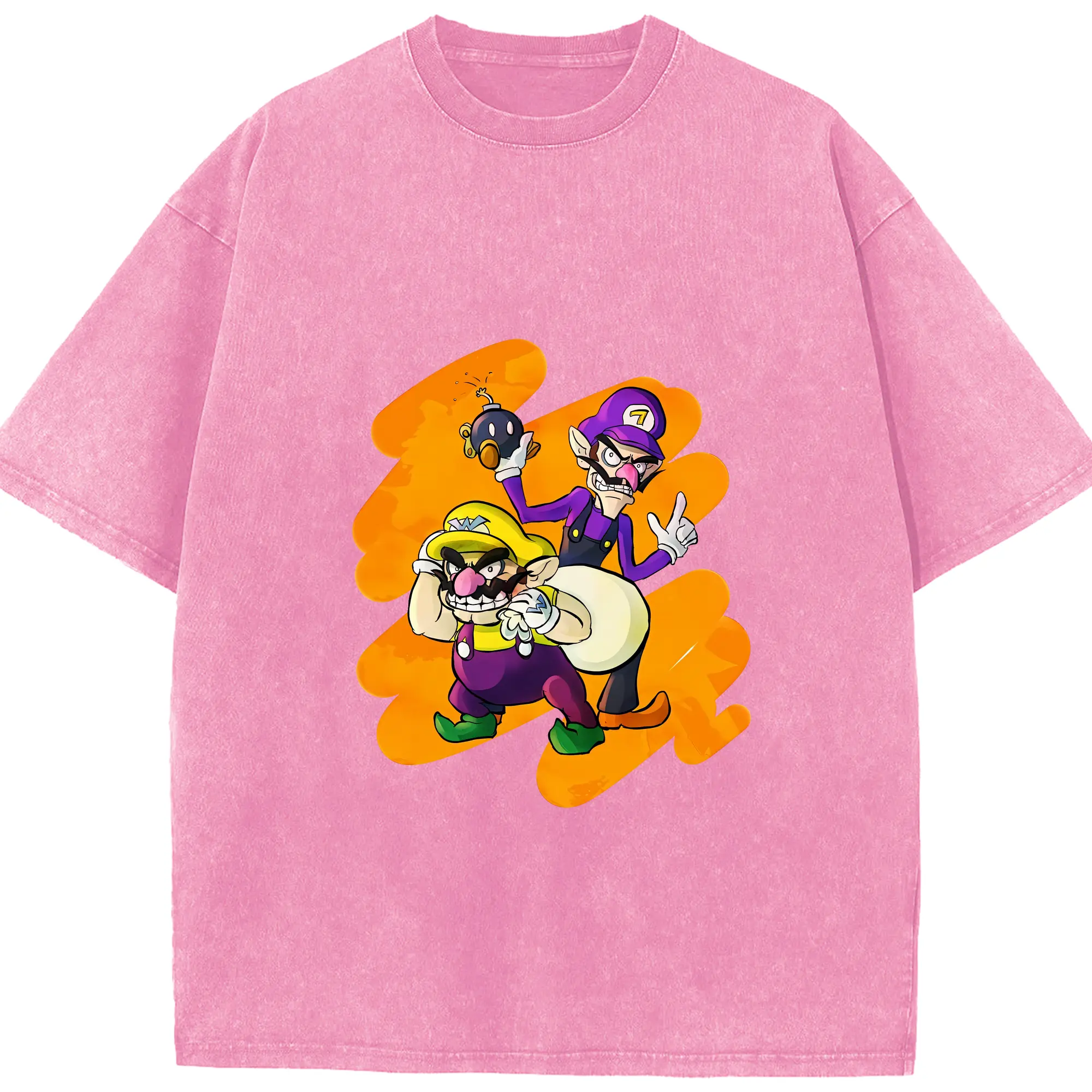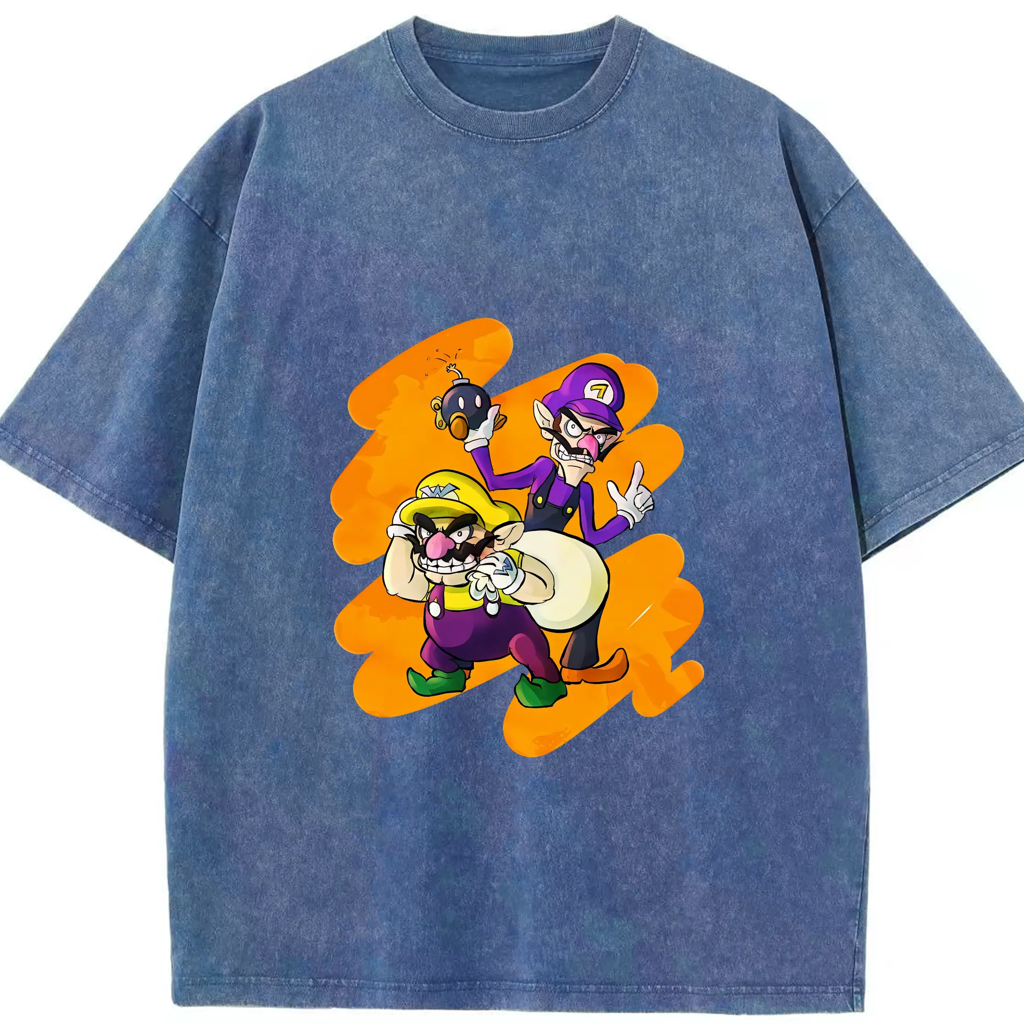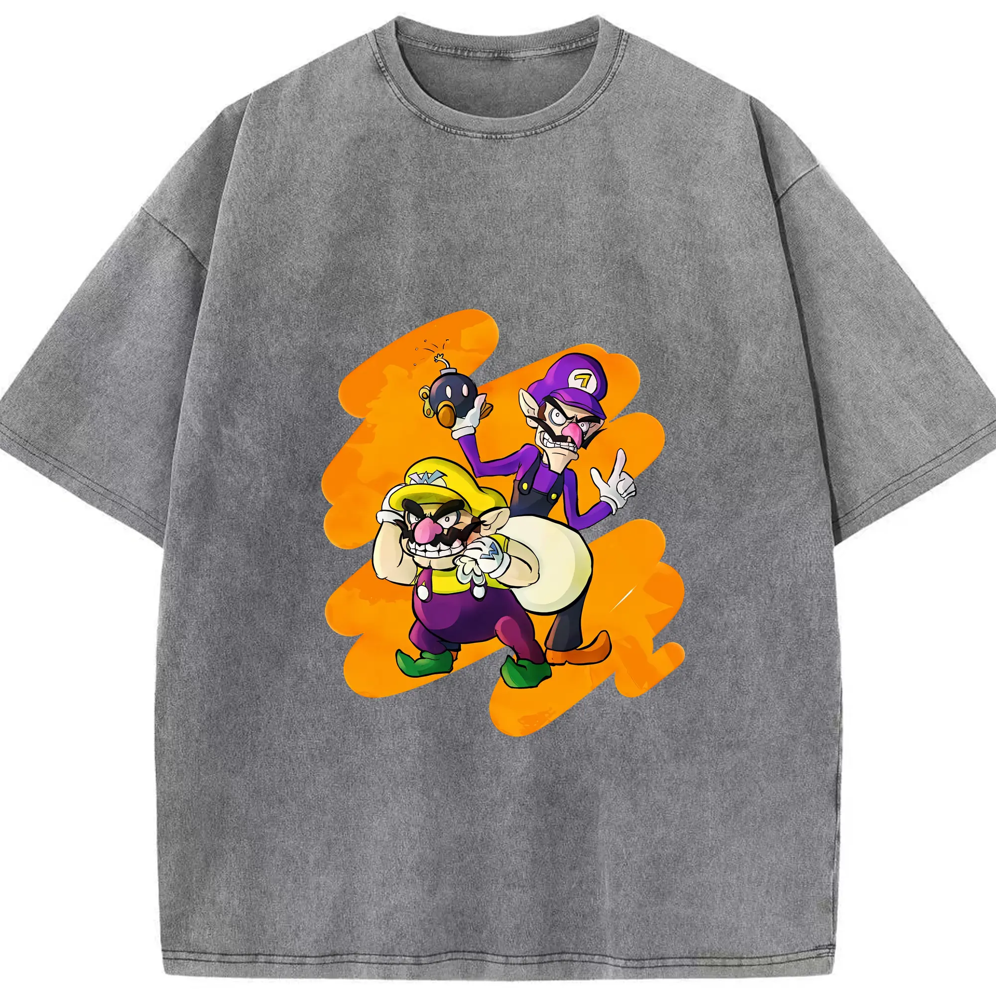 マリオ グッズ ワリオ - 綿100% ヴィンテージ風 半袖Tシャツ ・ フロントプリント ・ 柔らか肌触り ・ 通気性 快適 ・ スポーツ カジュアル 外出用