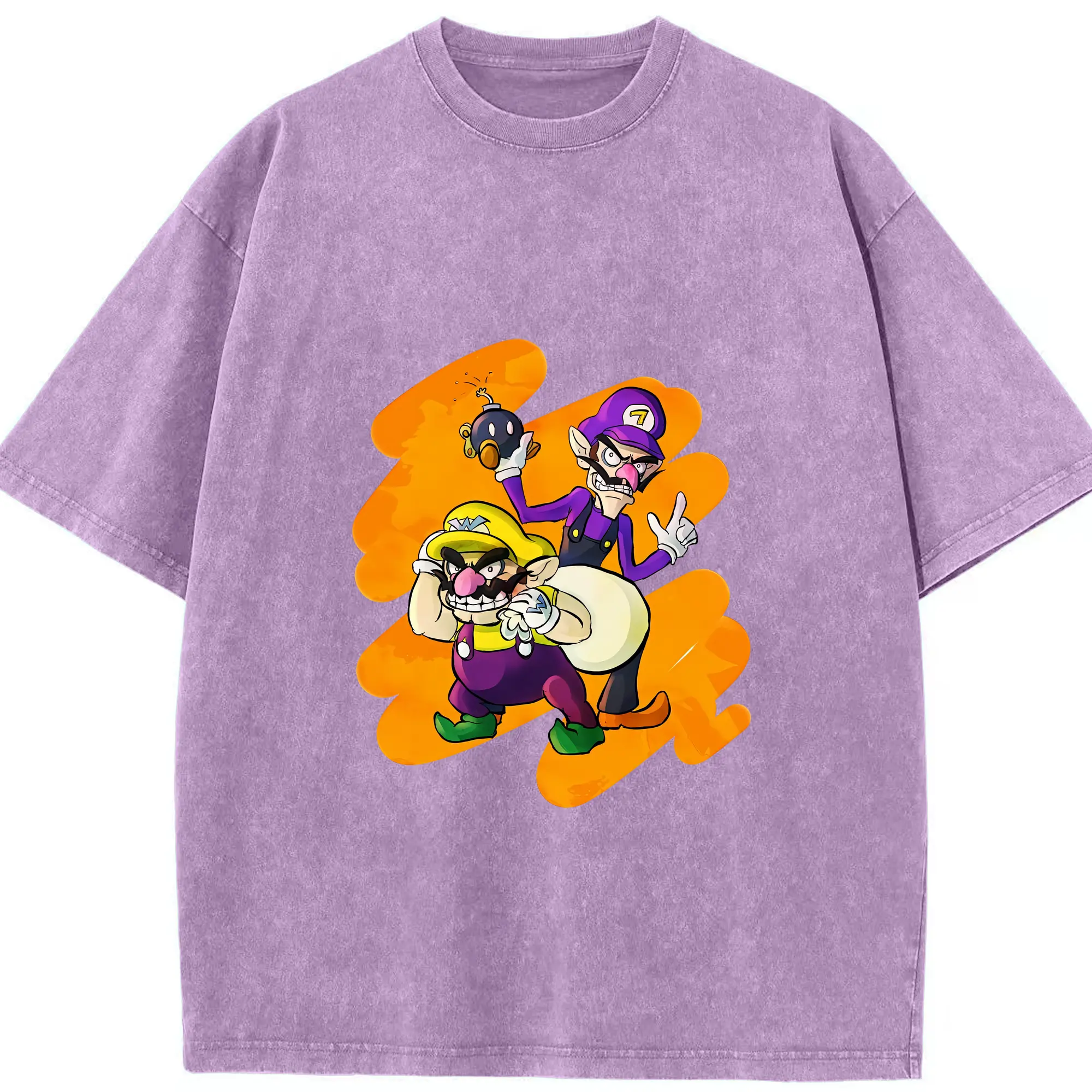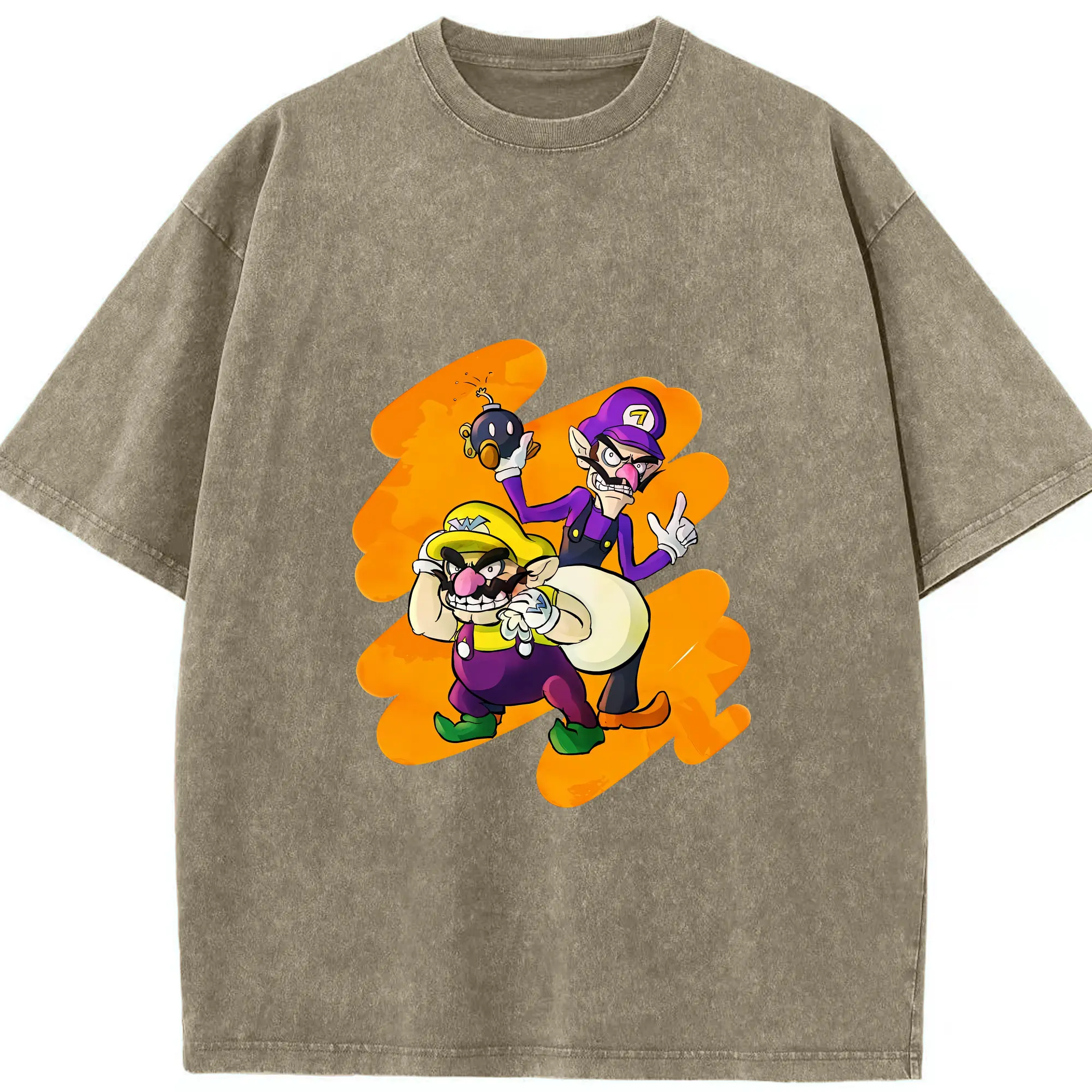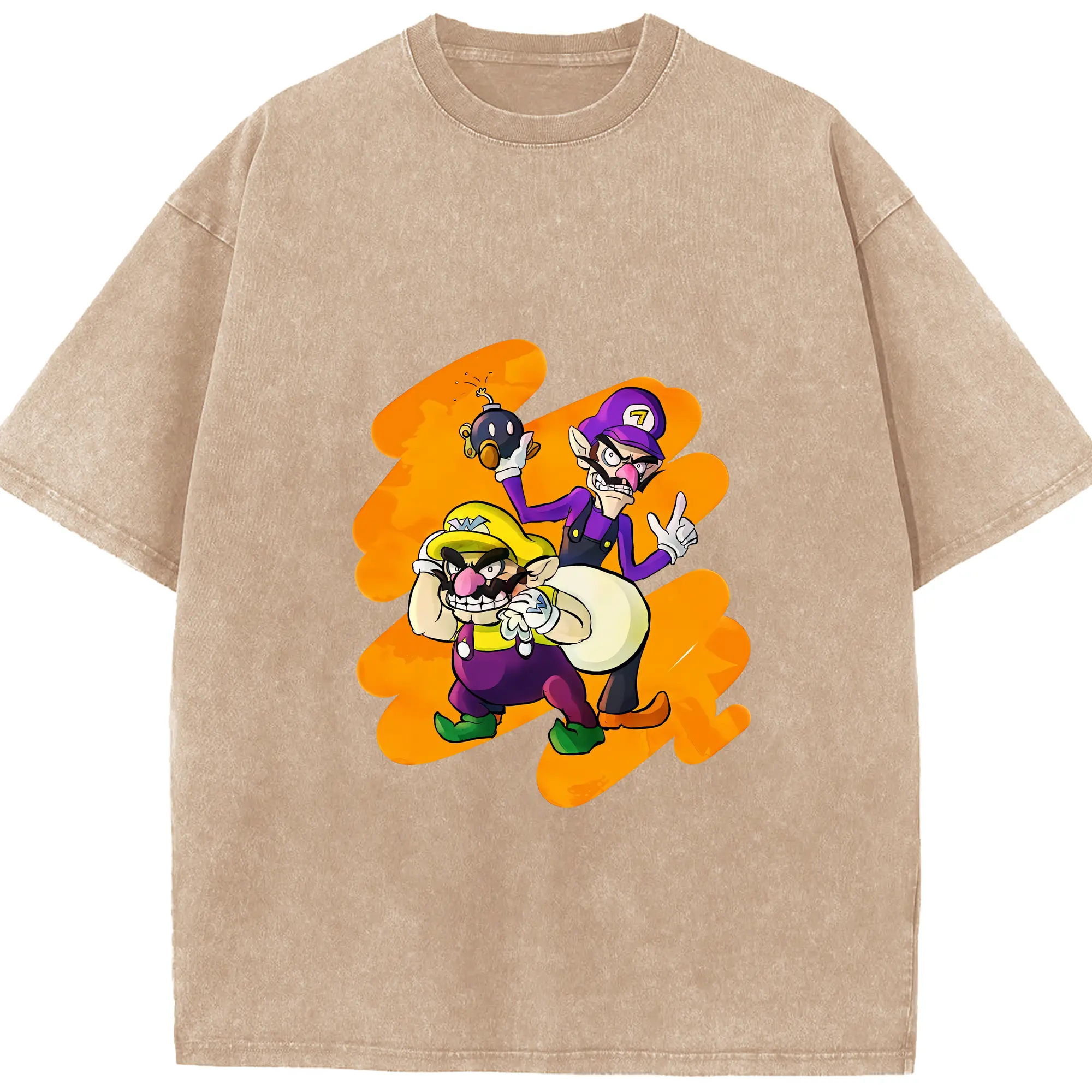 マリオ グッズ ワリオ - 綿100% ヴィンテージ風 半袖Tシャツ ・ フロントプリント ・ 柔らか肌触り ・ 通気性 快適 ・ スポーツ カジュアル 外出用