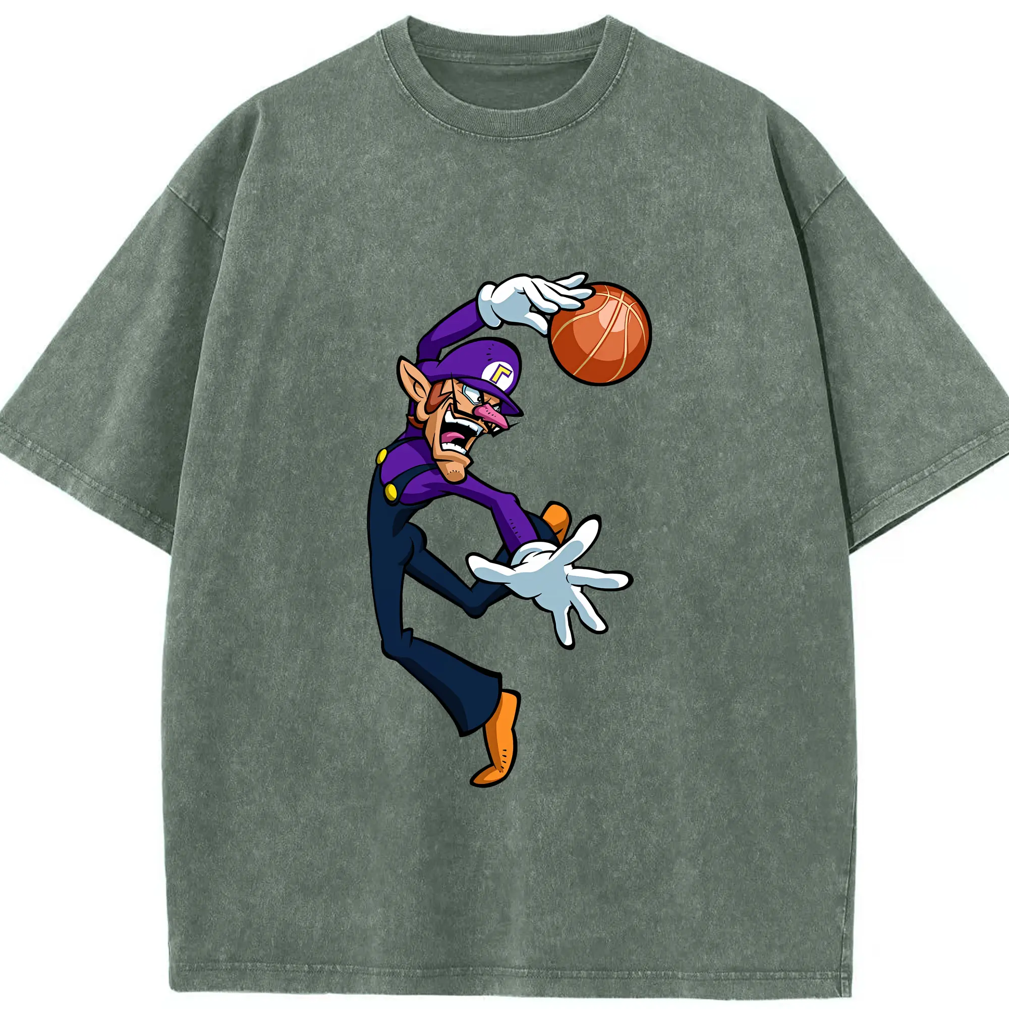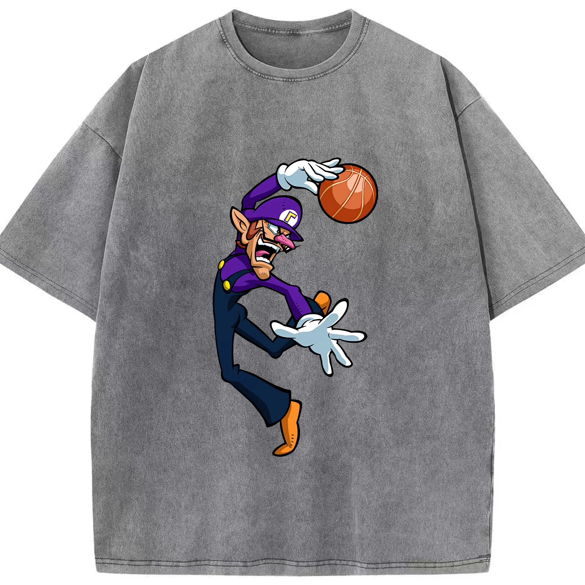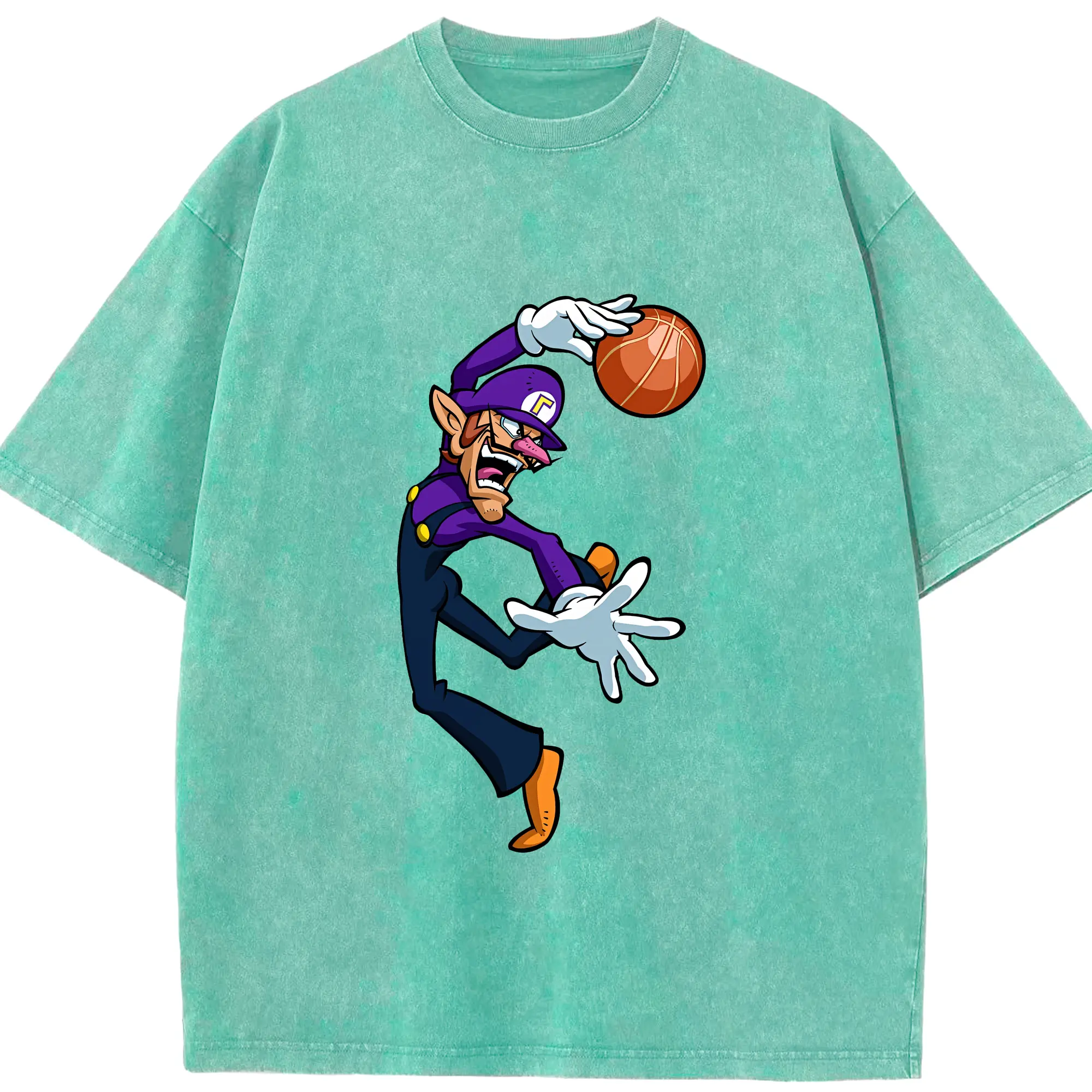 マリオ グッズ ワルイージ - 綿100% ヴィンテージ風 半袖Tシャツ ・ 背面プリント ・ 柔らか肌触り ・ 通気性 快適 ・ スポーツ カジュアル 外出用