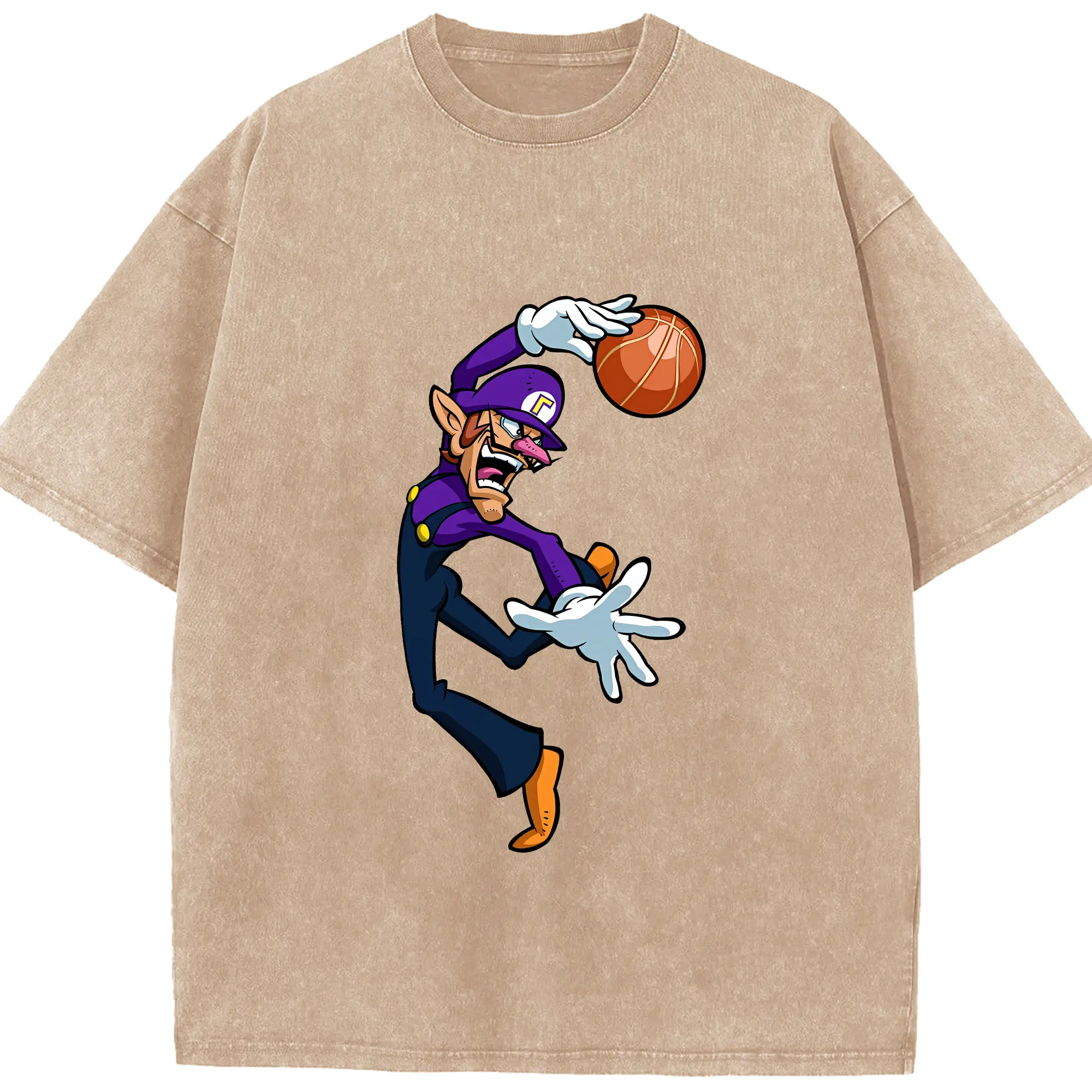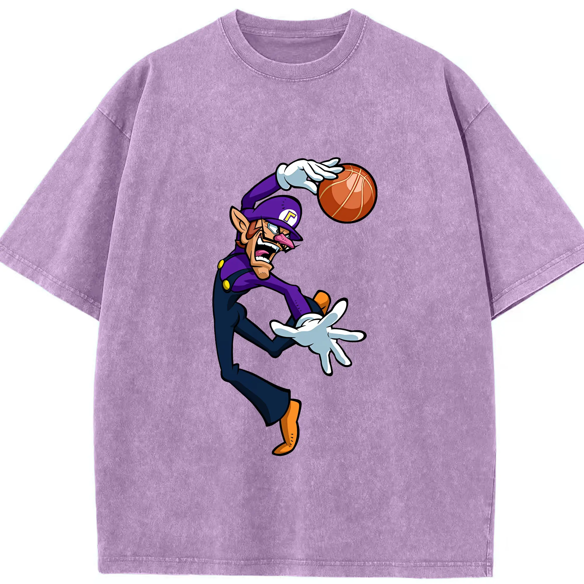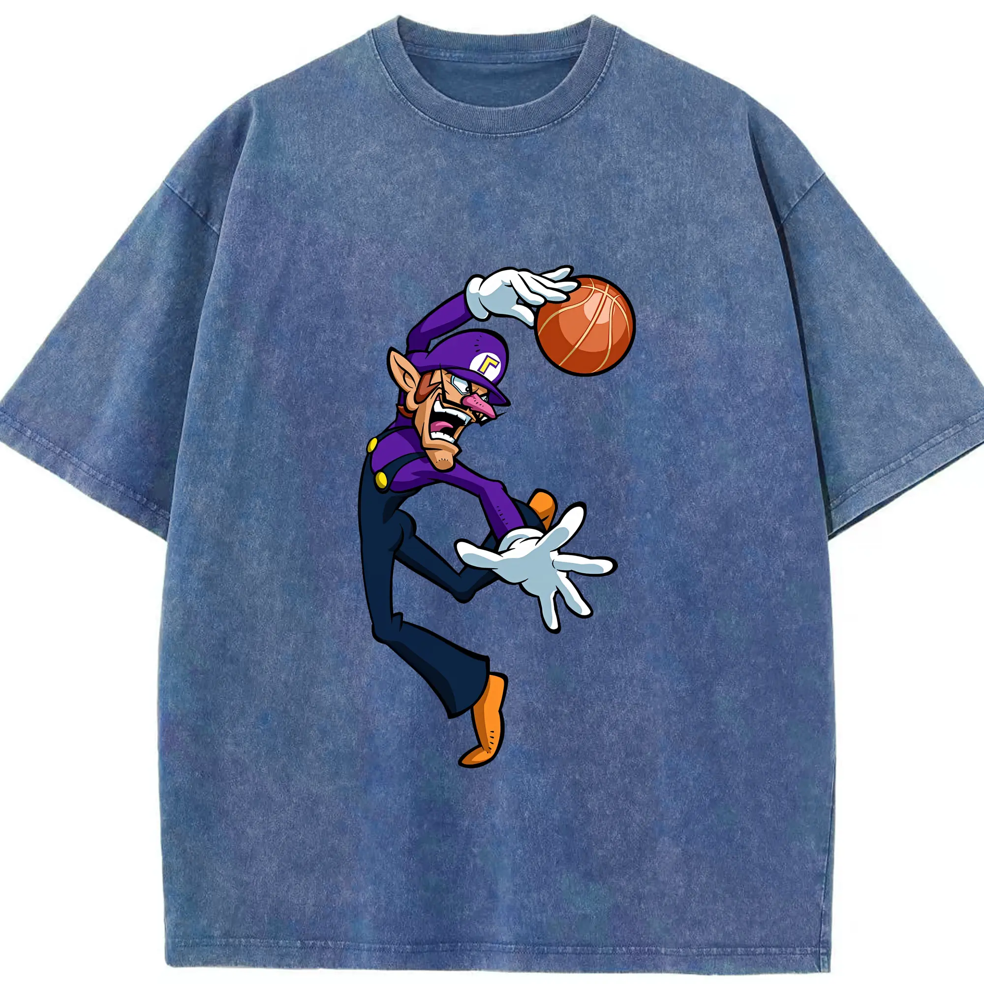 マリオ グッズ ワルイージ - 綿100% ヴィンテージ風 半袖Tシャツ ・ 背面プリント ・ 柔らか肌触り ・ 通気性 快適 ・ スポーツ カジュアル 外出用