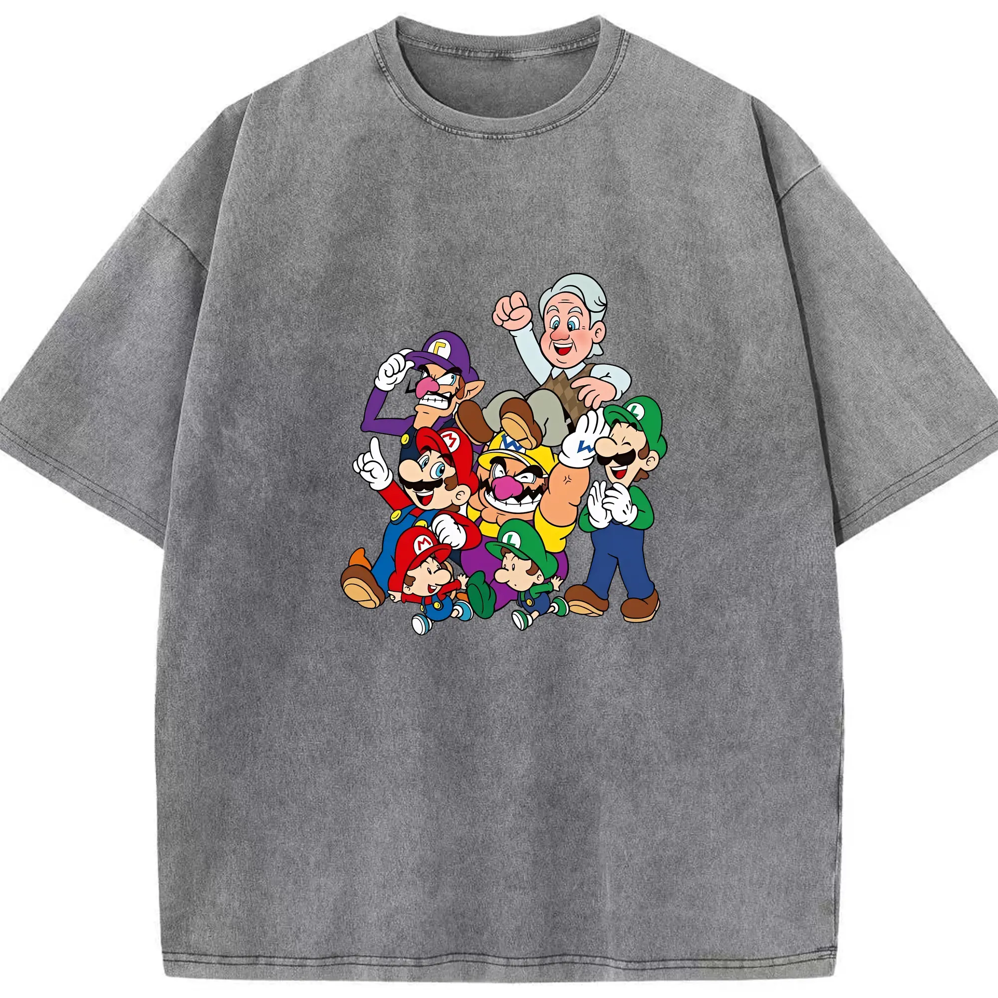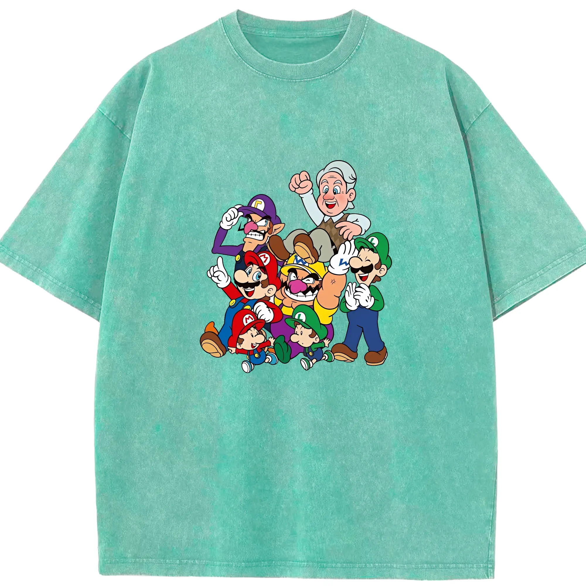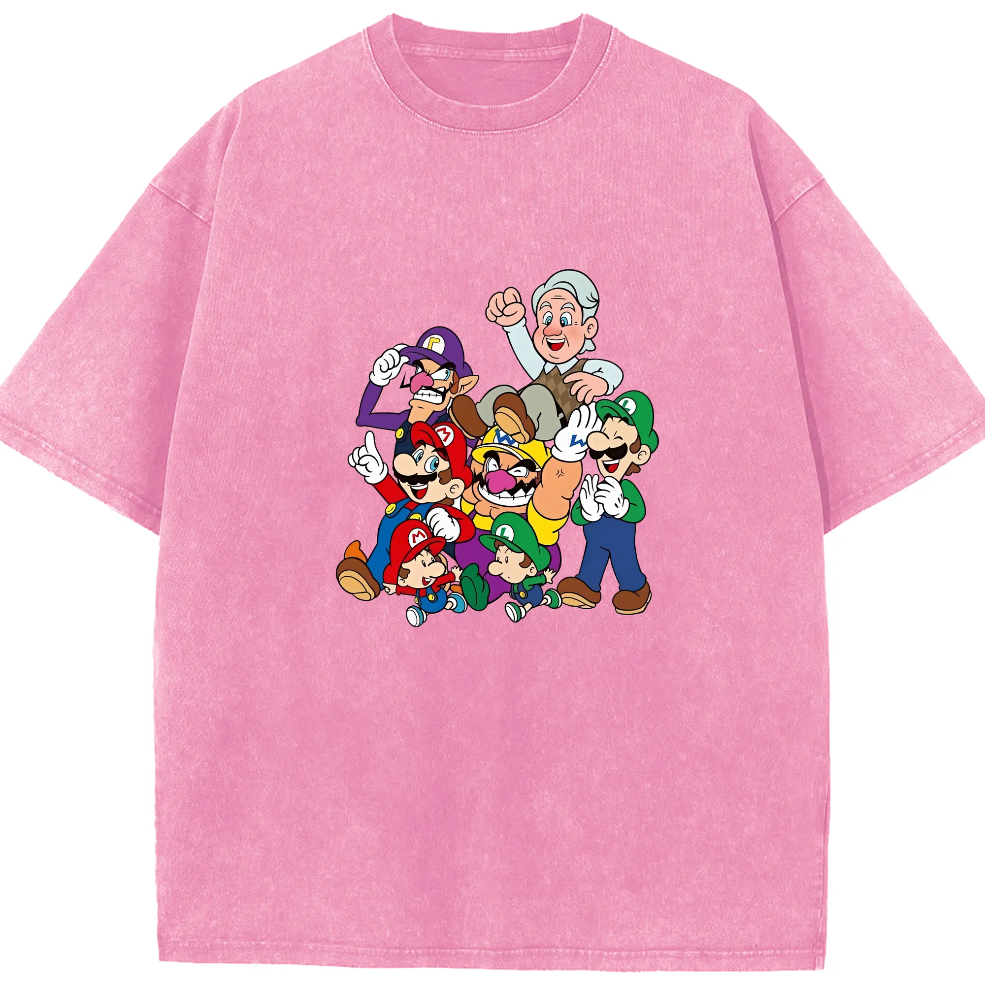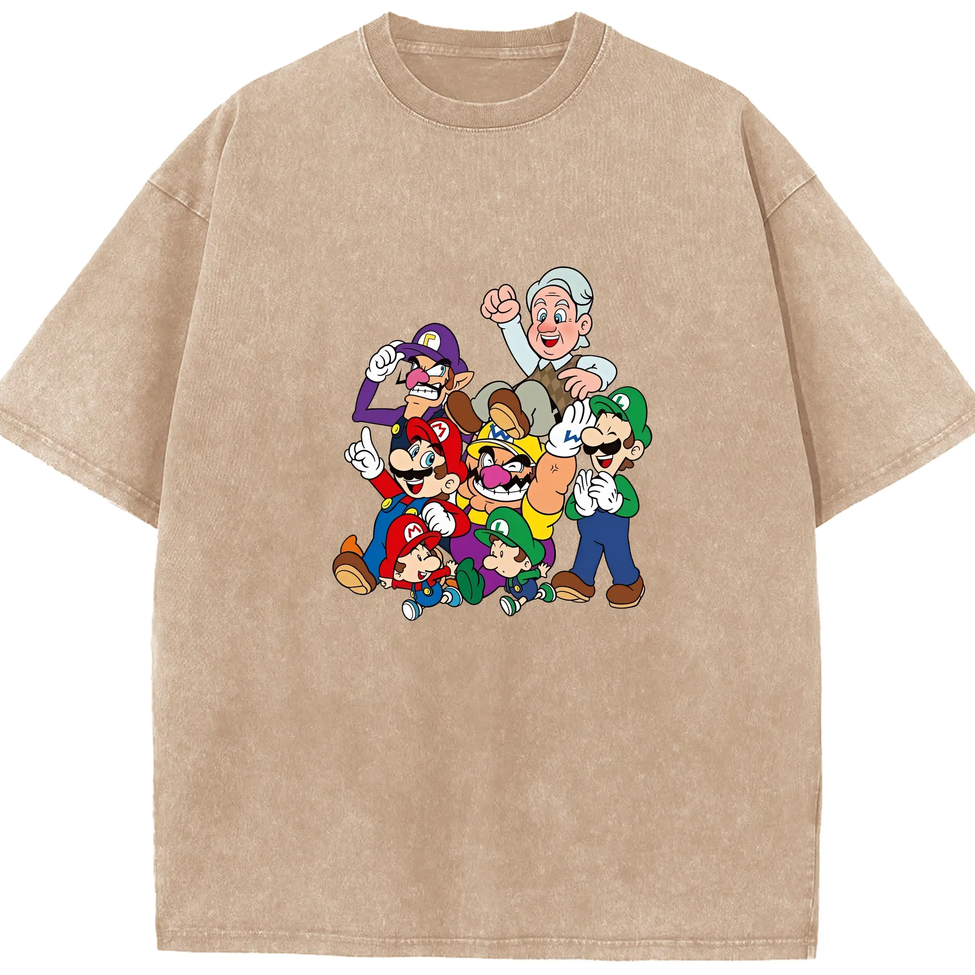 マリオ グッズ ワルイージ - 綿100% ヴィンテージ風 半袖Tシャツ ・ 背面プリント ・ 柔らか肌触り ・ 通気性 快適 ・ スポーツ カジュアル 外出用