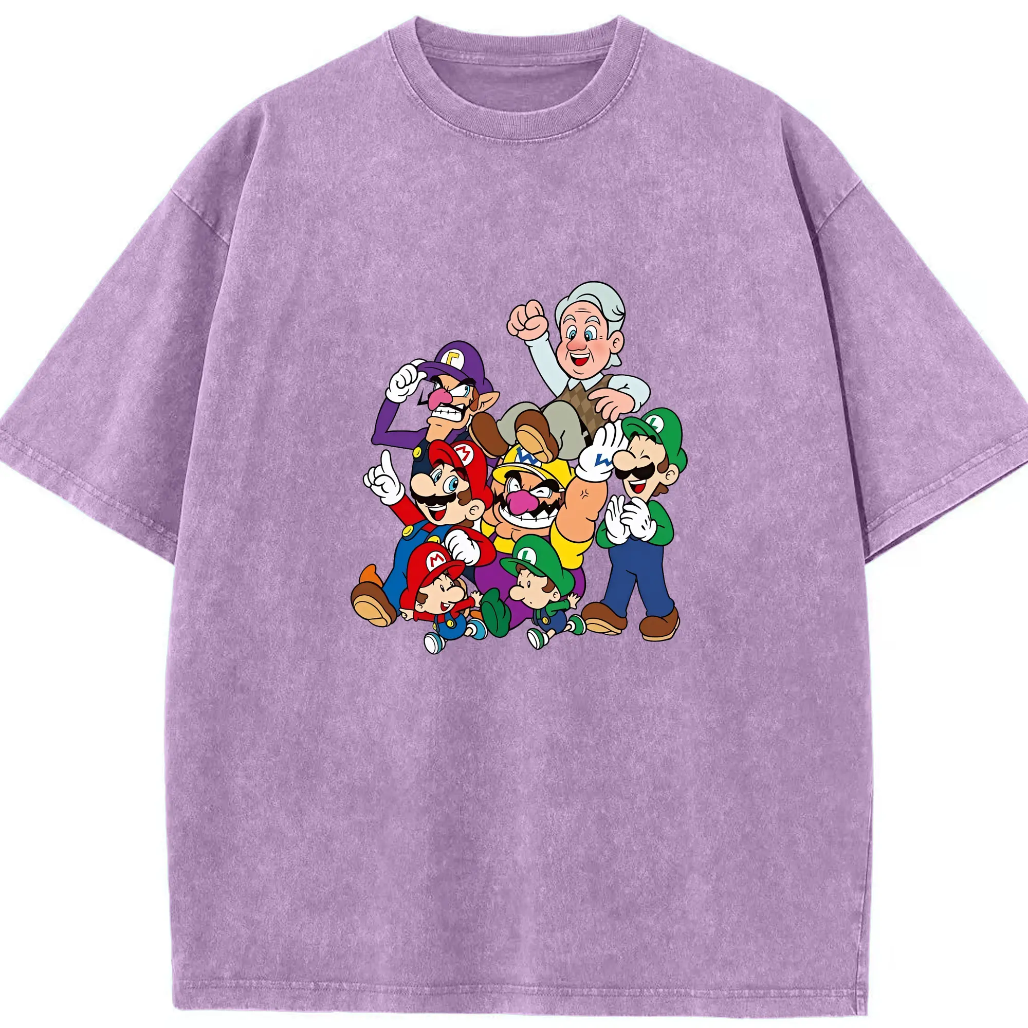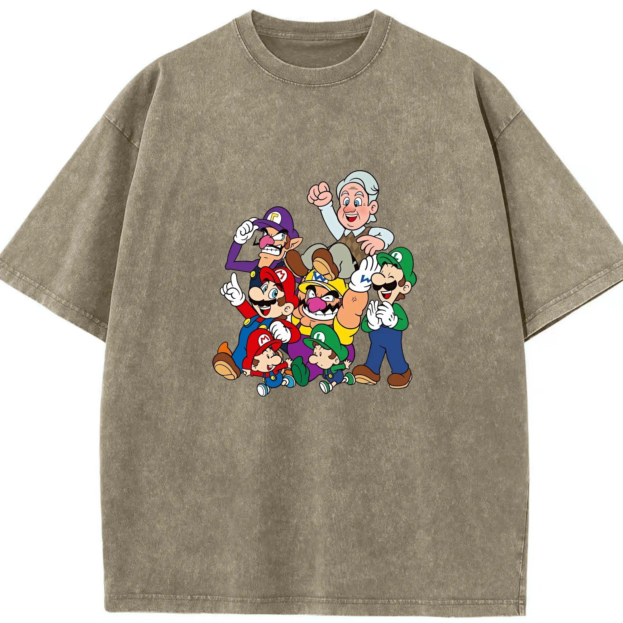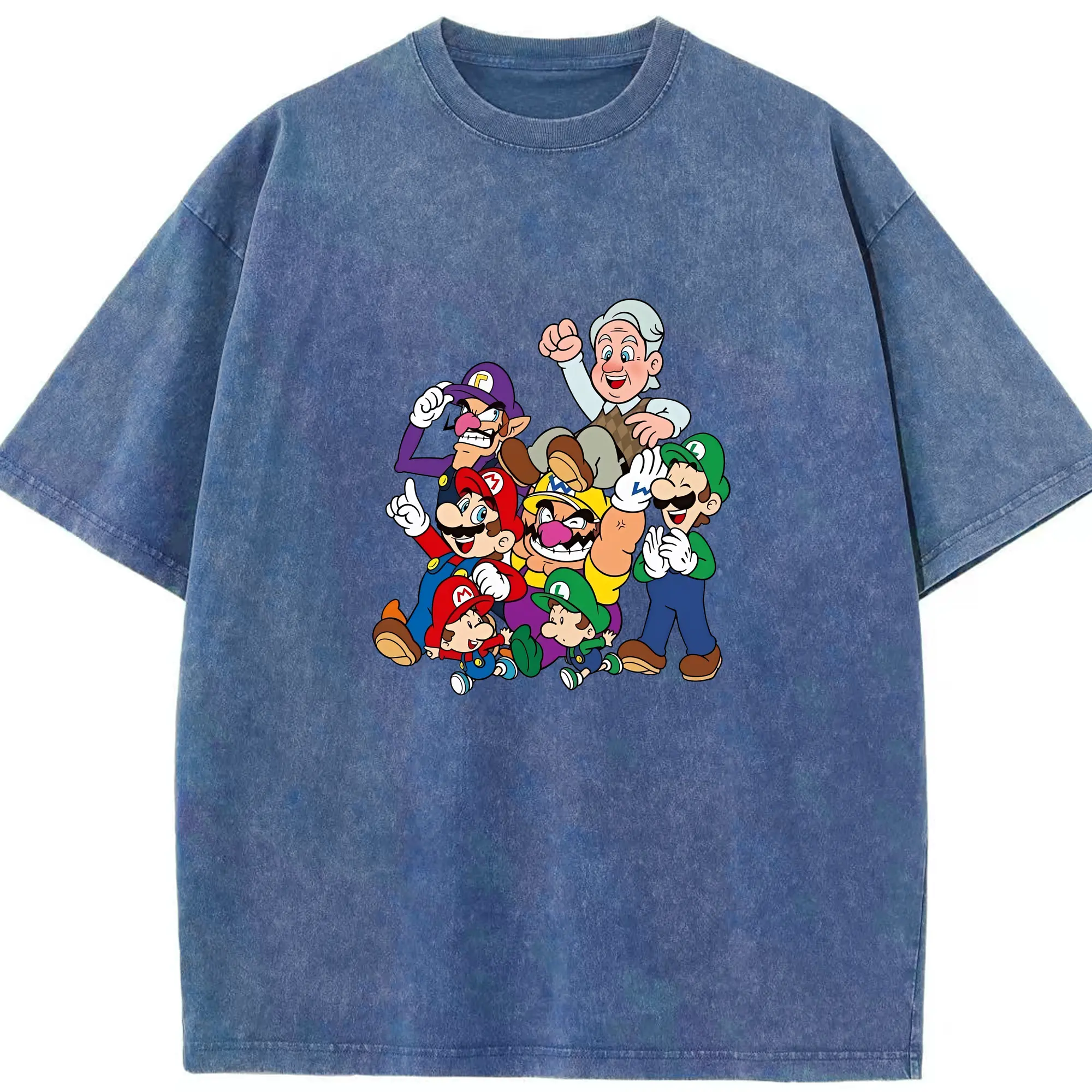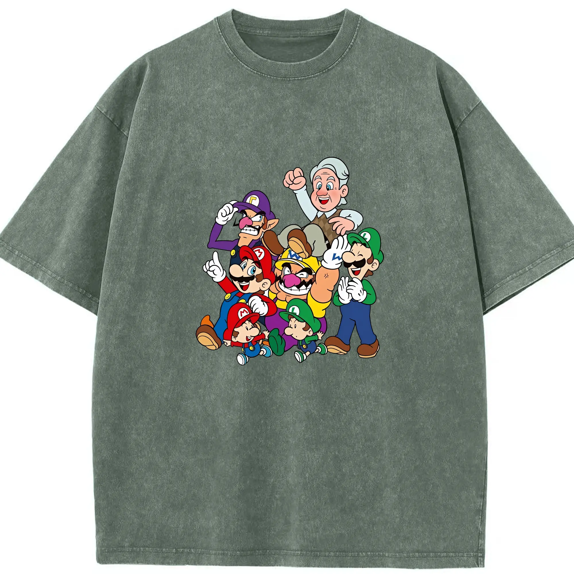 マリオ グッズ ワルイージ - 綿100% ヴィンテージ風 半袖Tシャツ ・ 背面プリント ・ 柔らか肌触り ・ 通気性 快適 ・ スポーツ カジュアル 外出用