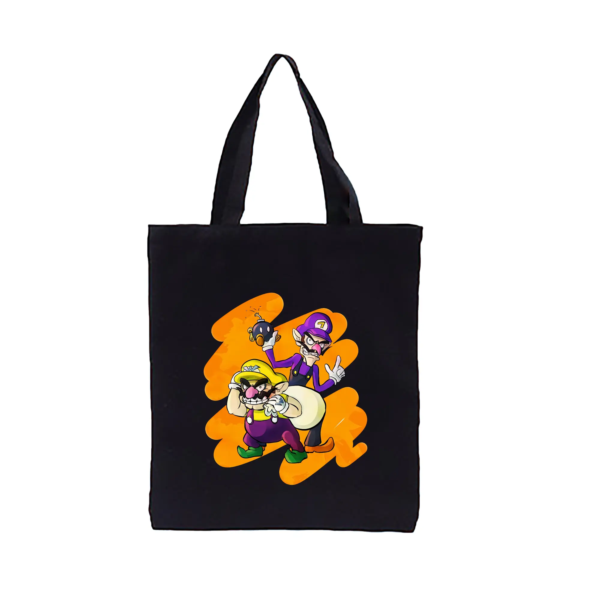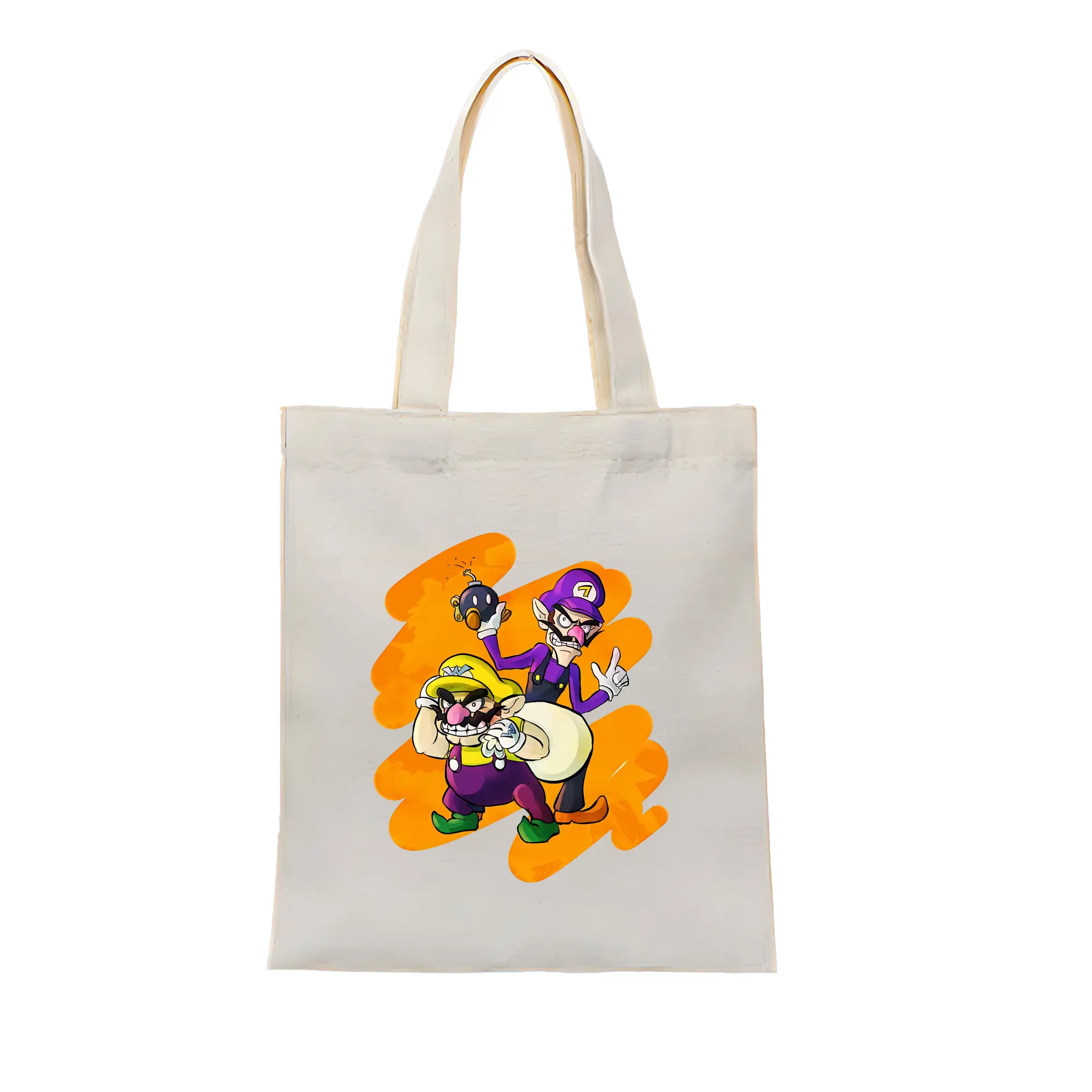 マリオ グッズ ワルイージ - 縦型キャンバス手提げバッグ(トートバッグ) ・ キャンバス素材 ・ ショッピング用 ・ 軽量 丈夫 お手入れ簡単