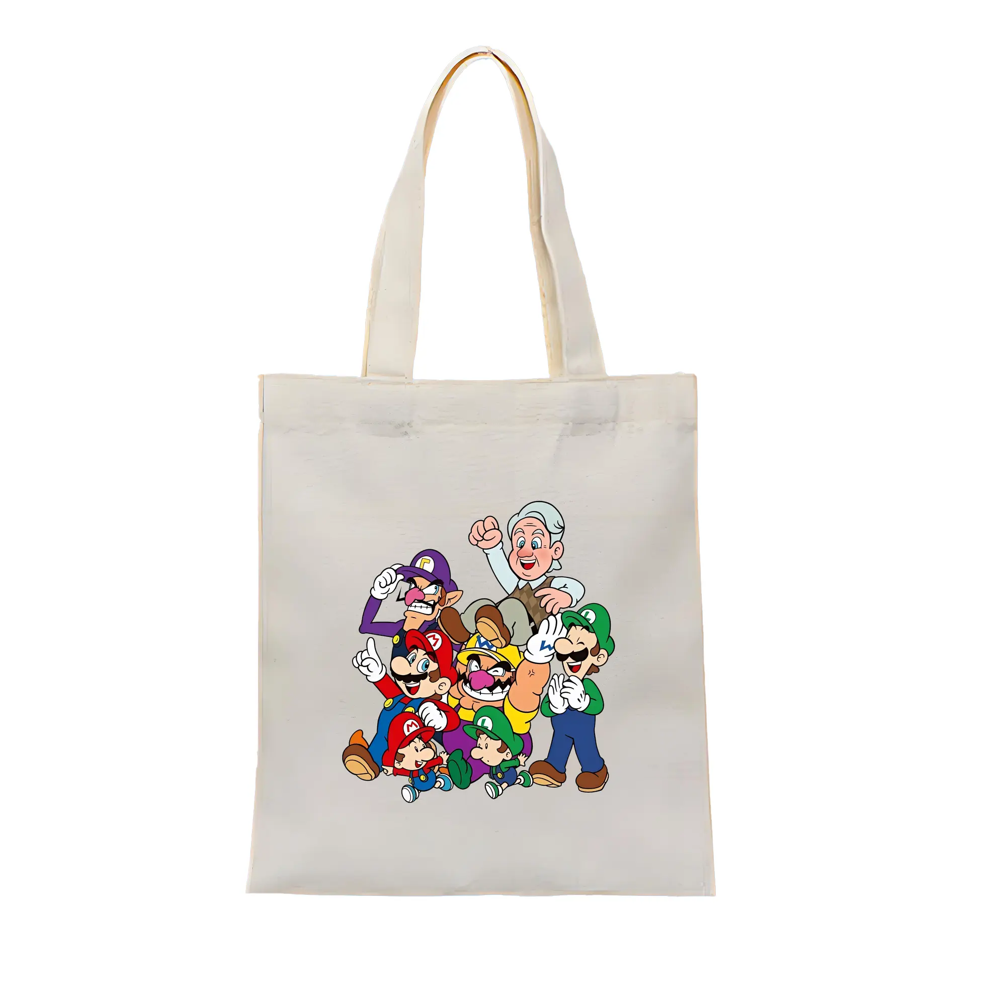 マリオ グッズ ワルイージ - 縦型キャンバス手提げバッグ(トートバッグ) ・ キャンバス素材 ・ ショッピング用 ・ 軽量 丈夫 お手入れ簡単