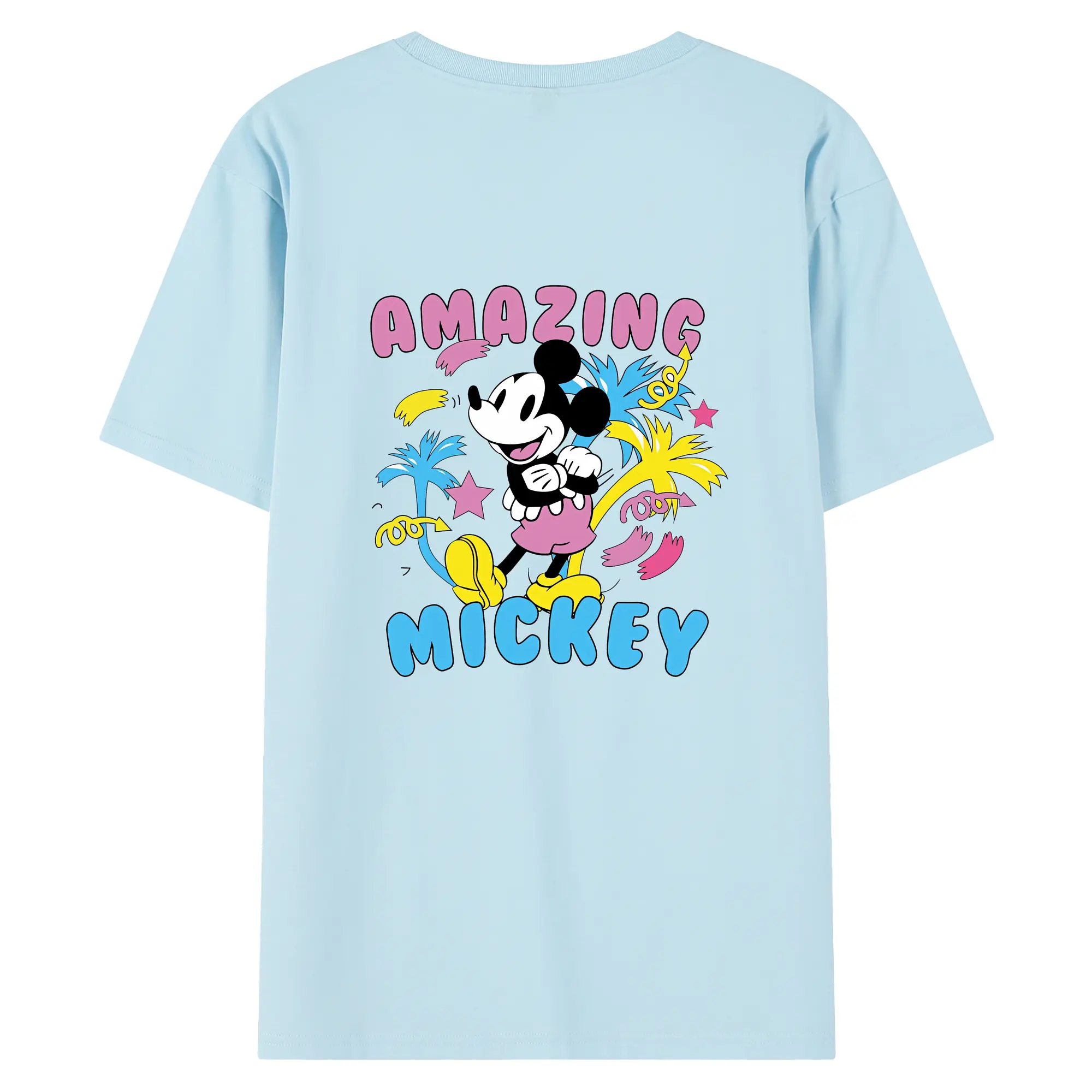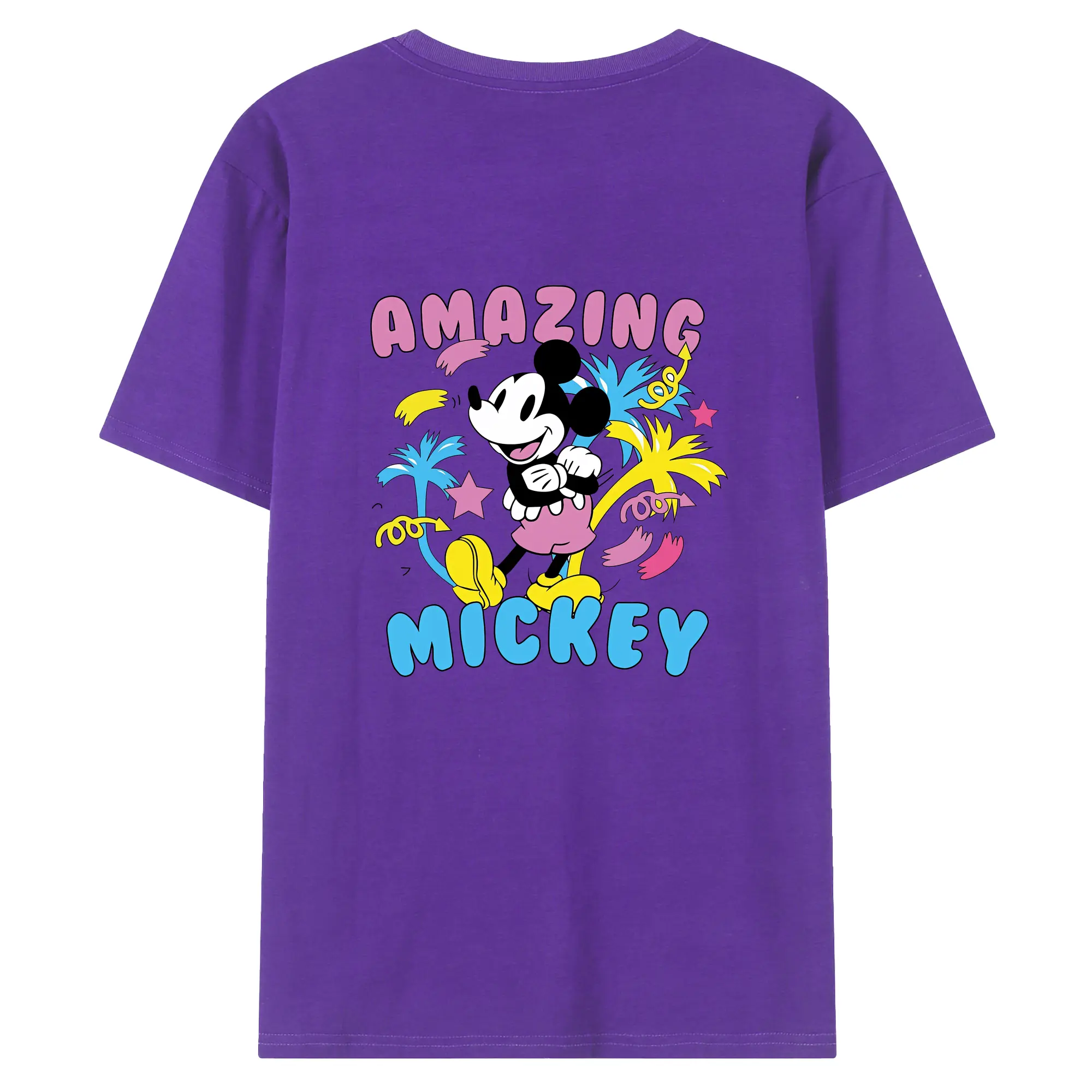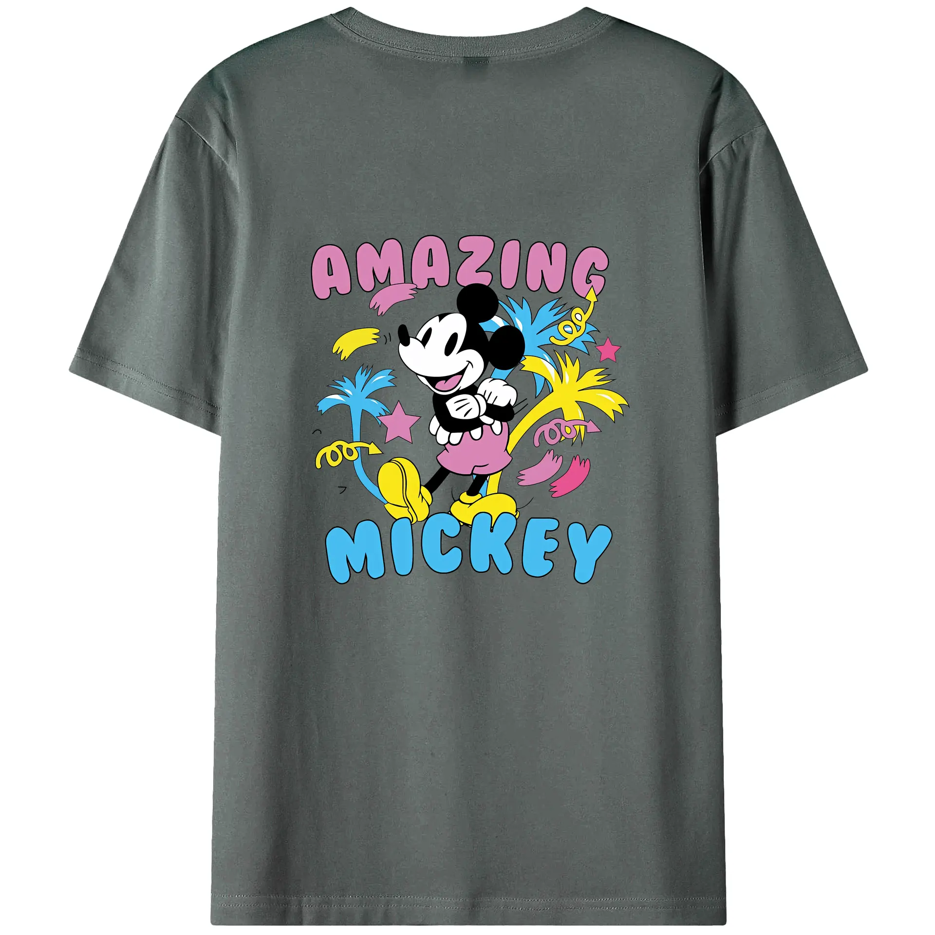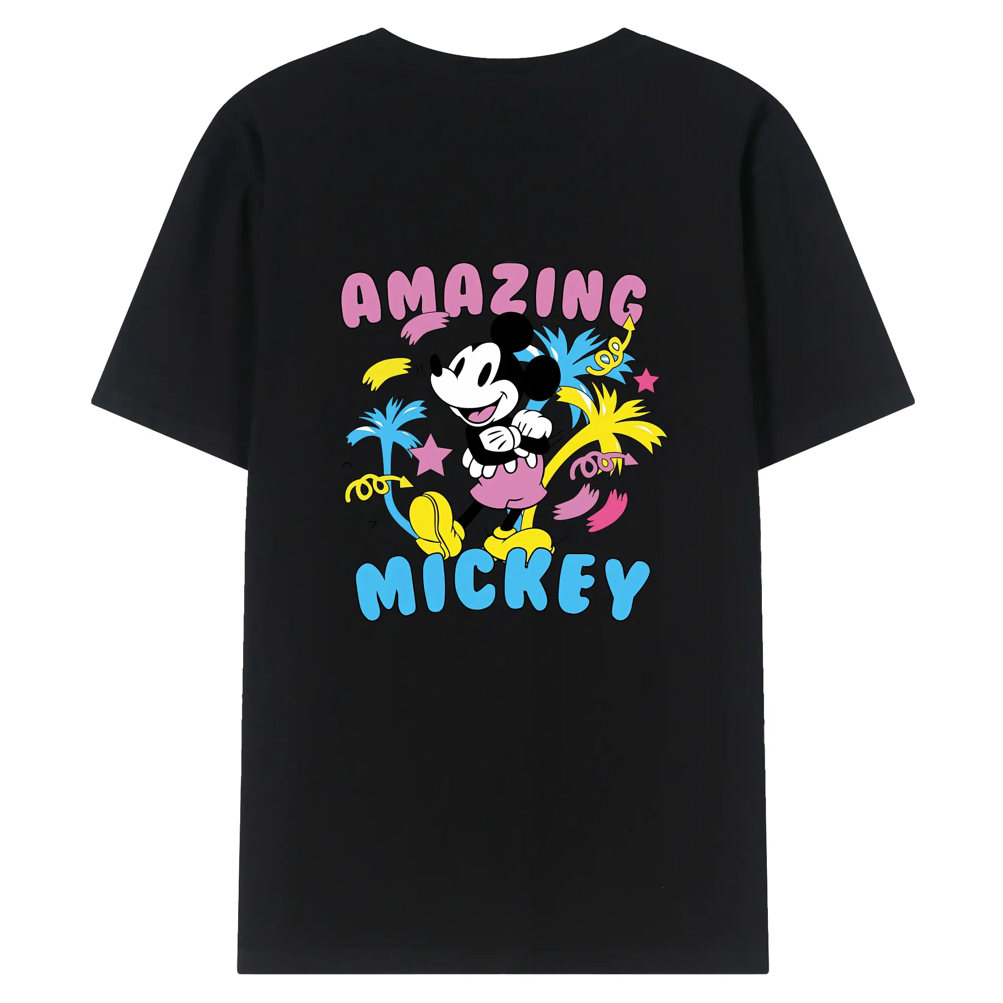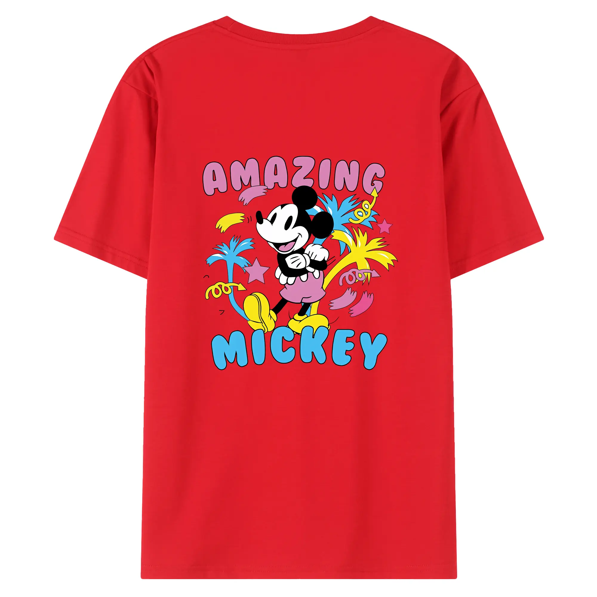 ミッキーマウス(Mickey Mouse) グッズ ミニーマウス(Minnie Mouse) - 綿100% 半袖Tシャツ ・ バックプリント ・ 快適 通気性 ・ 日常使い 散歩 スポーツ用
