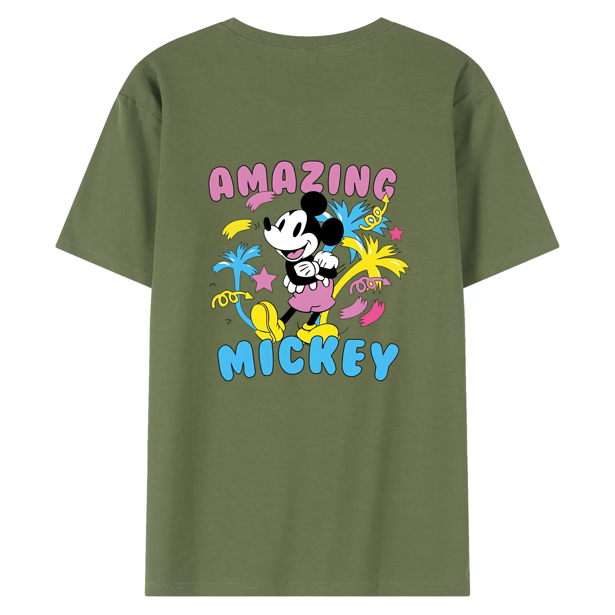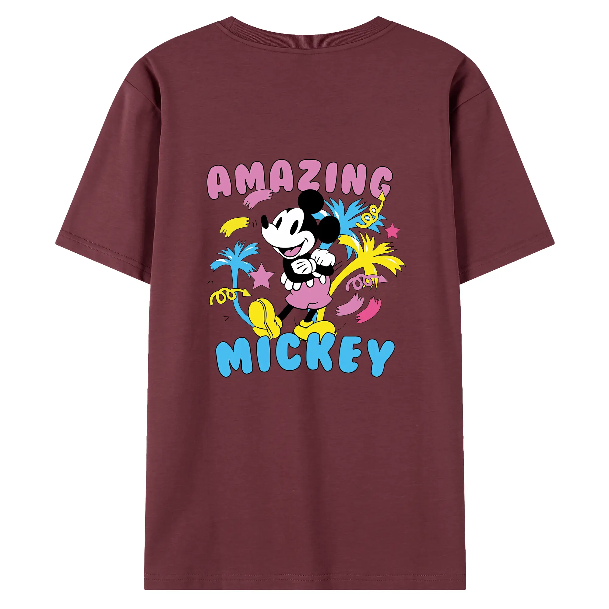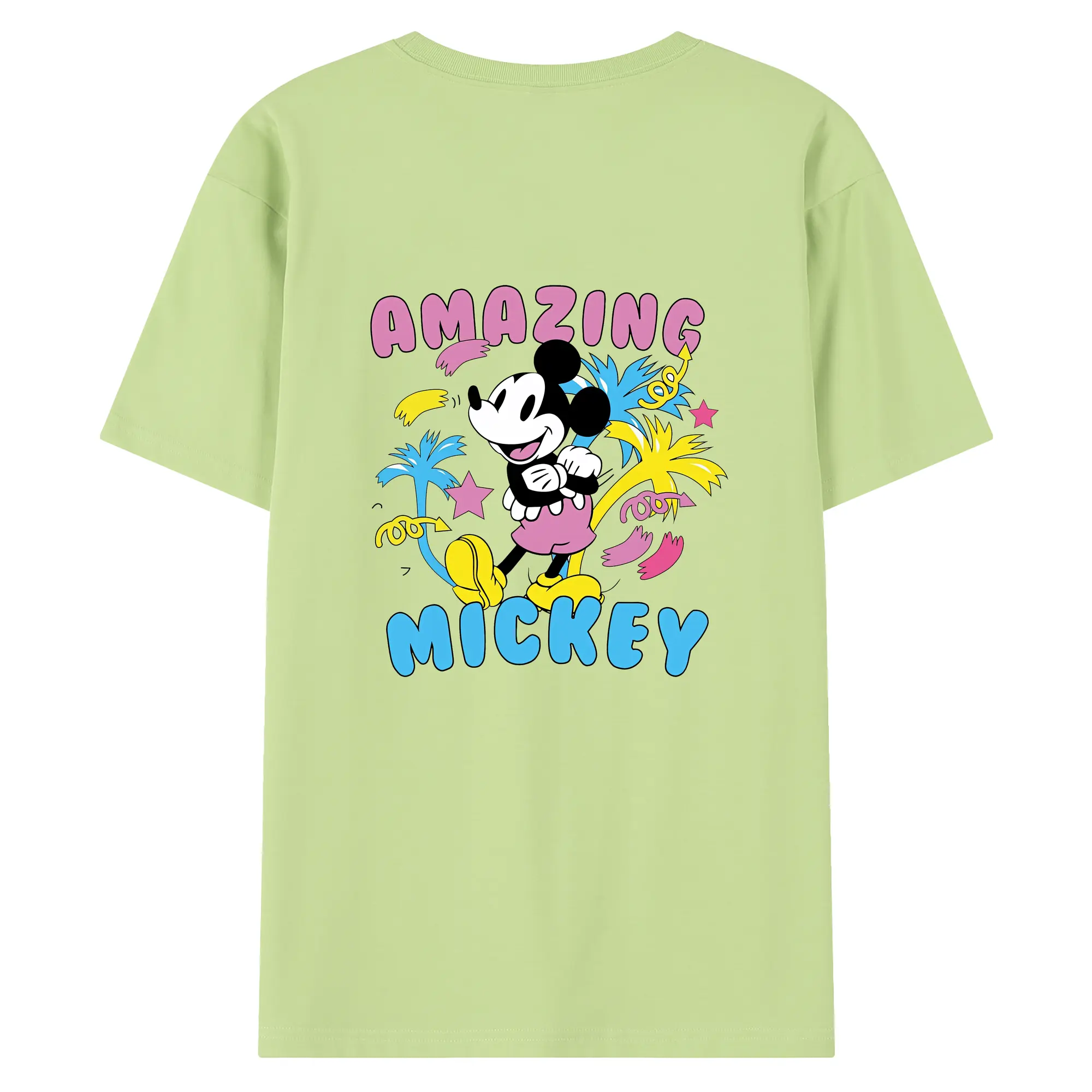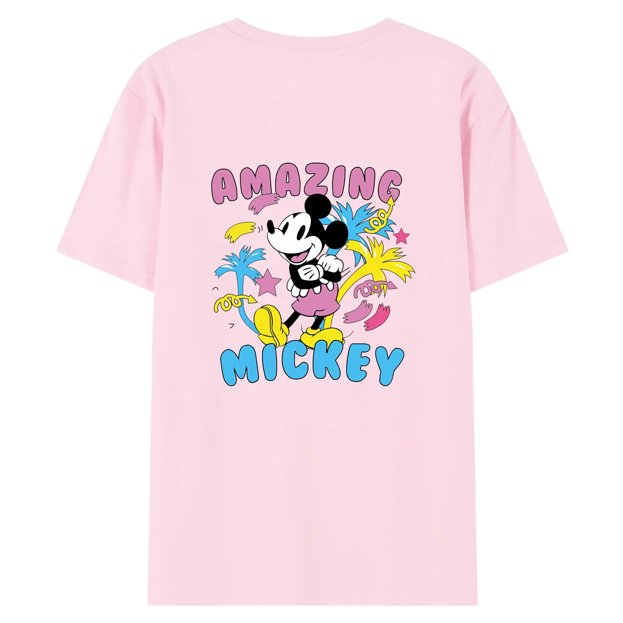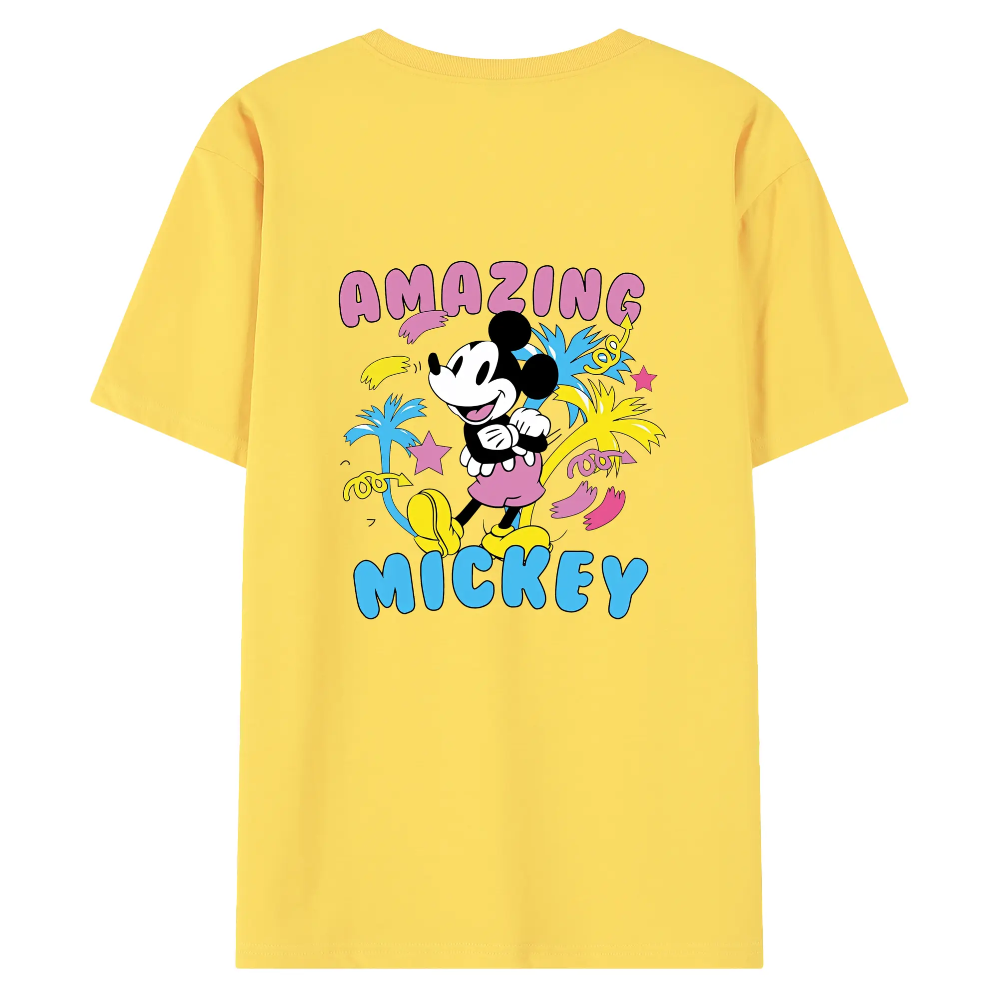 ミッキーマウス(Mickey Mouse) グッズ ミニーマウス(Minnie Mouse) - 綿100% 半袖Tシャツ ・ バックプリント ・ 快適 通気性 ・ 日常使い 散歩 スポーツ用