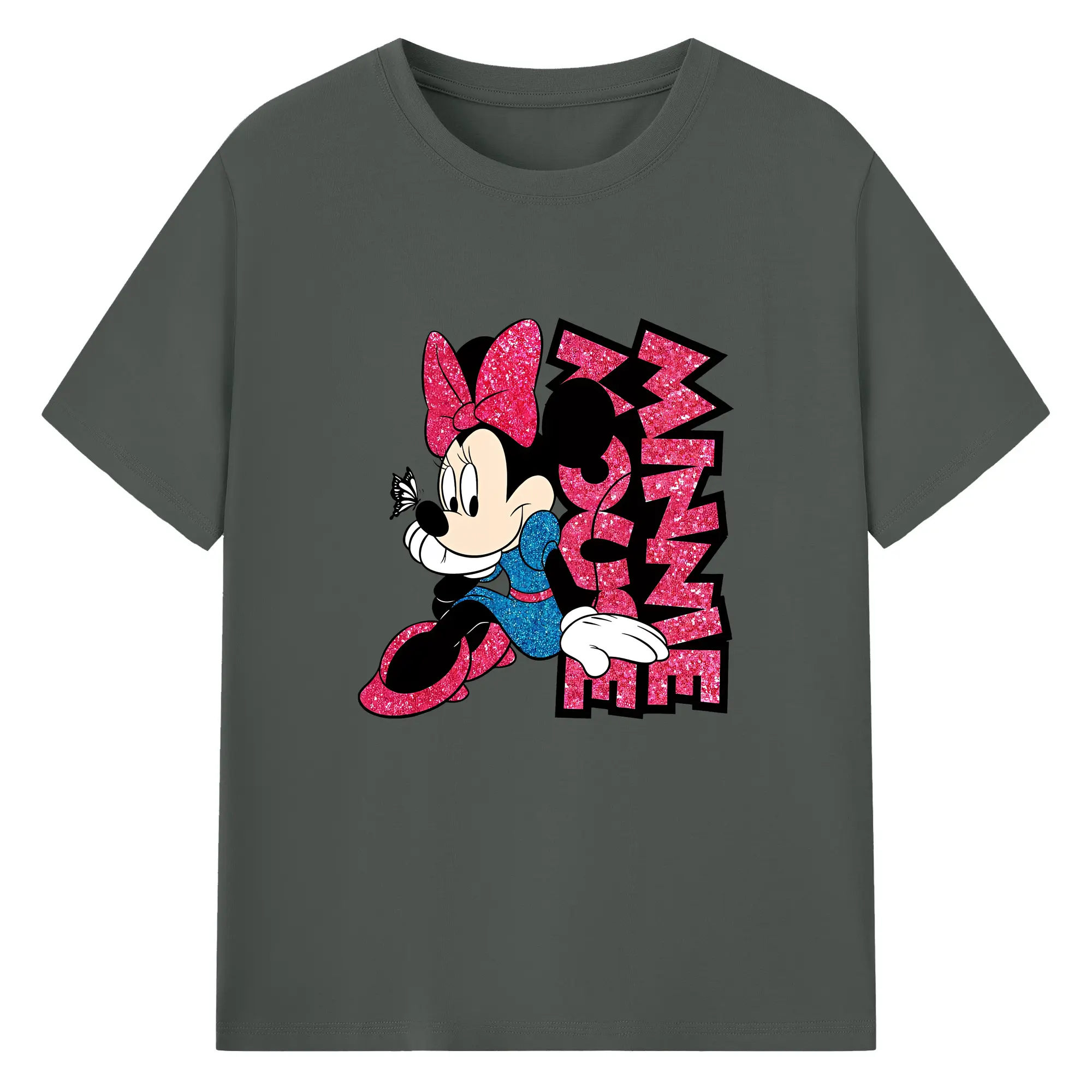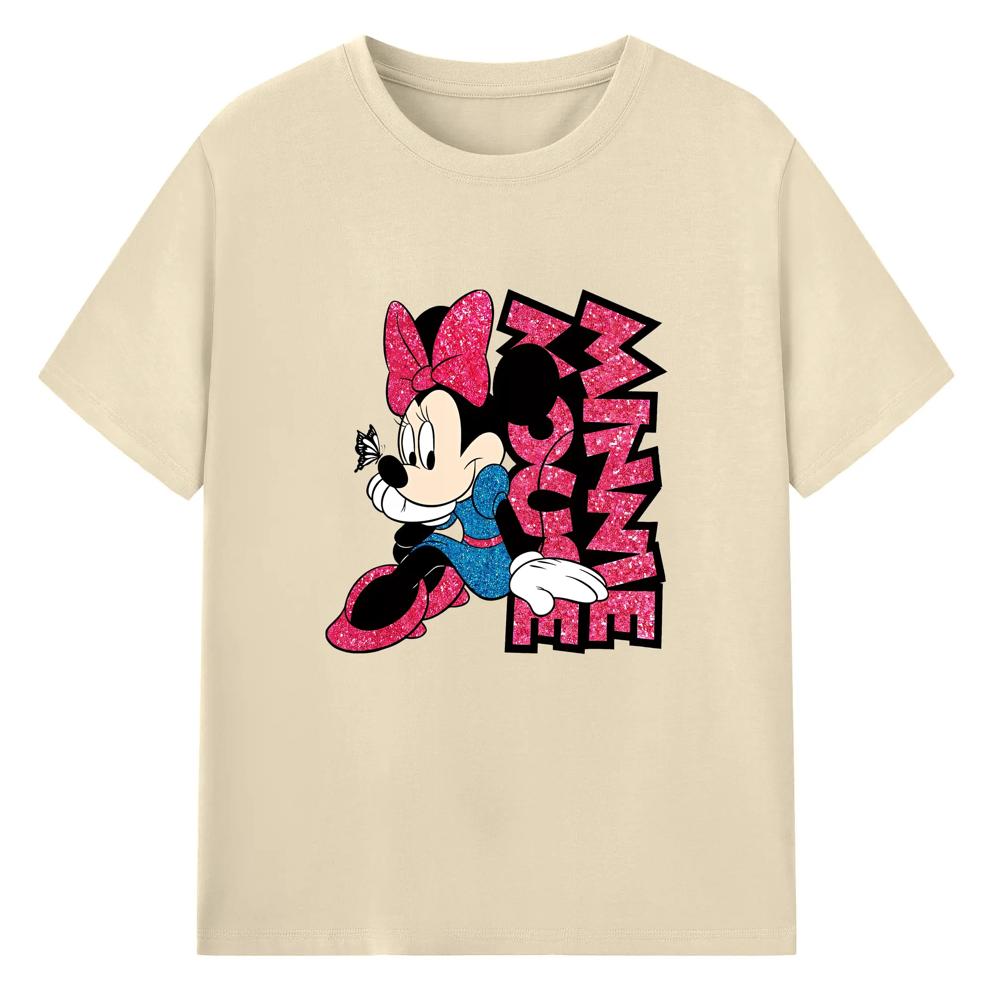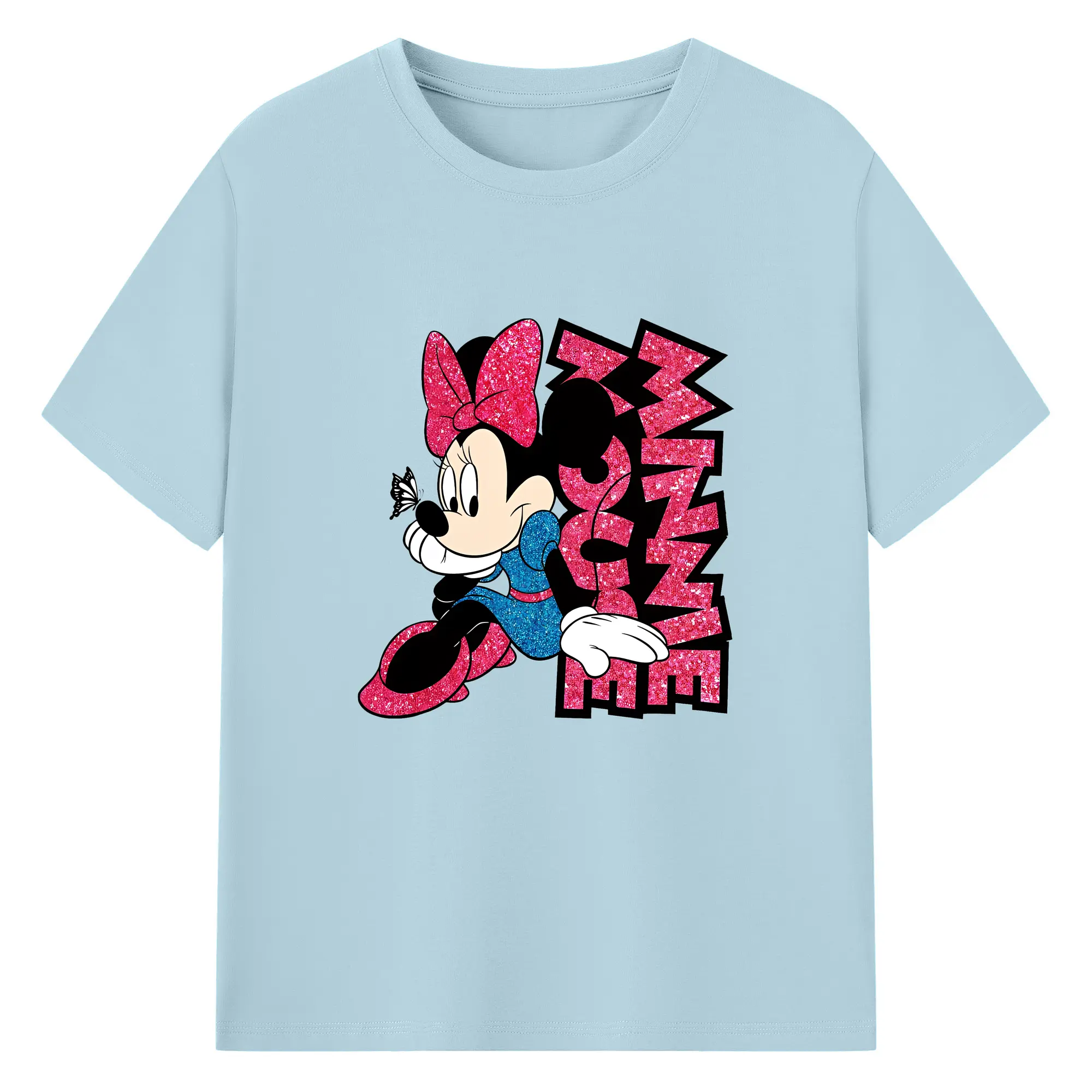 ミッキーマウス(Mickey Mouse) グッズ ミニーマウス(Minnie Mouse) - 綿100% 半袖Tシャツ ・ バックプリント ・ 快適 通気性 ・ 日常使い 散歩 スポーツ用
