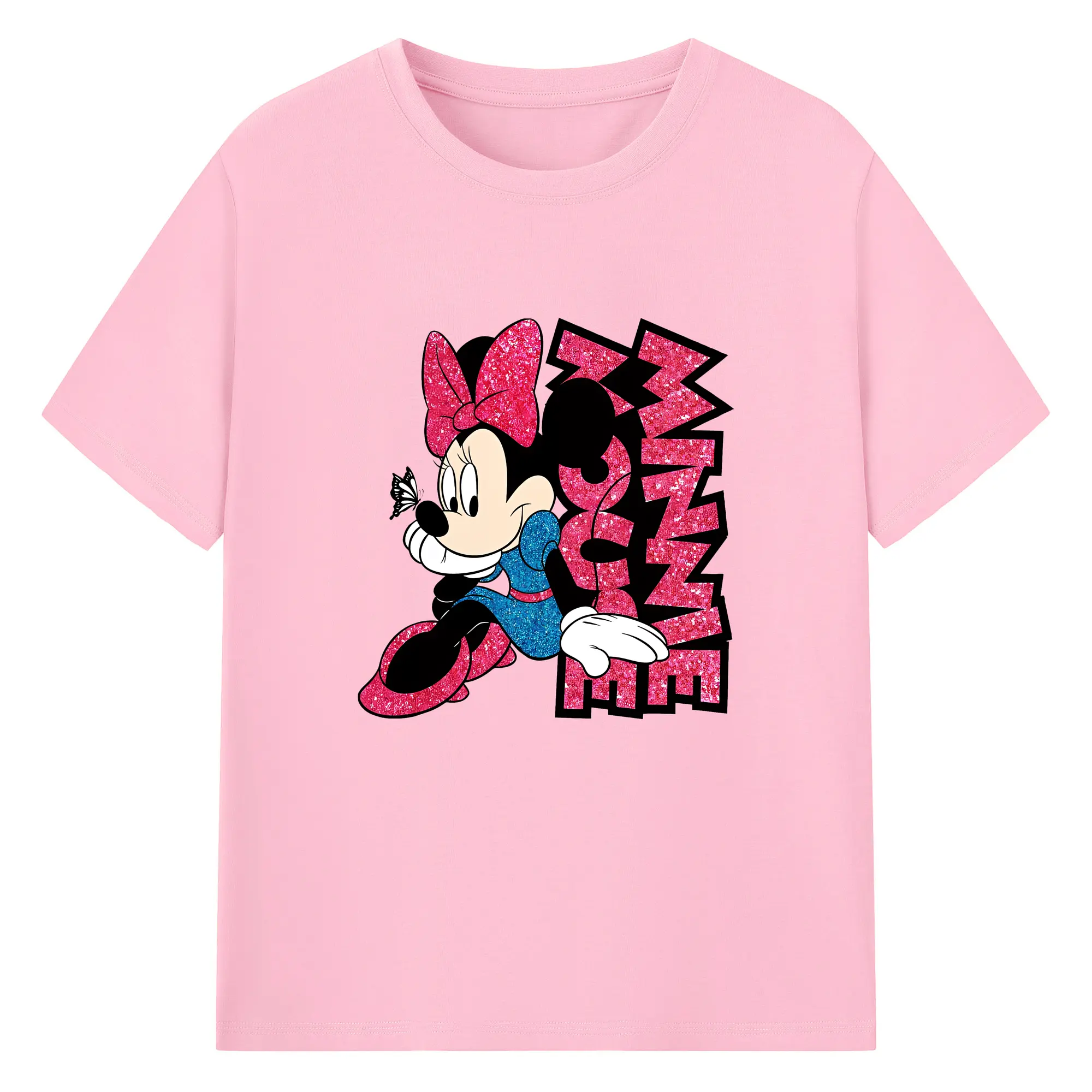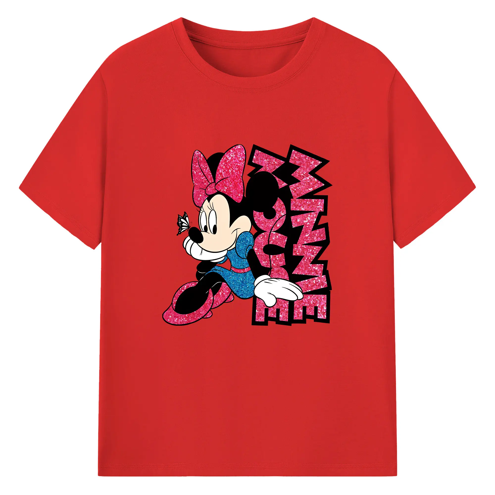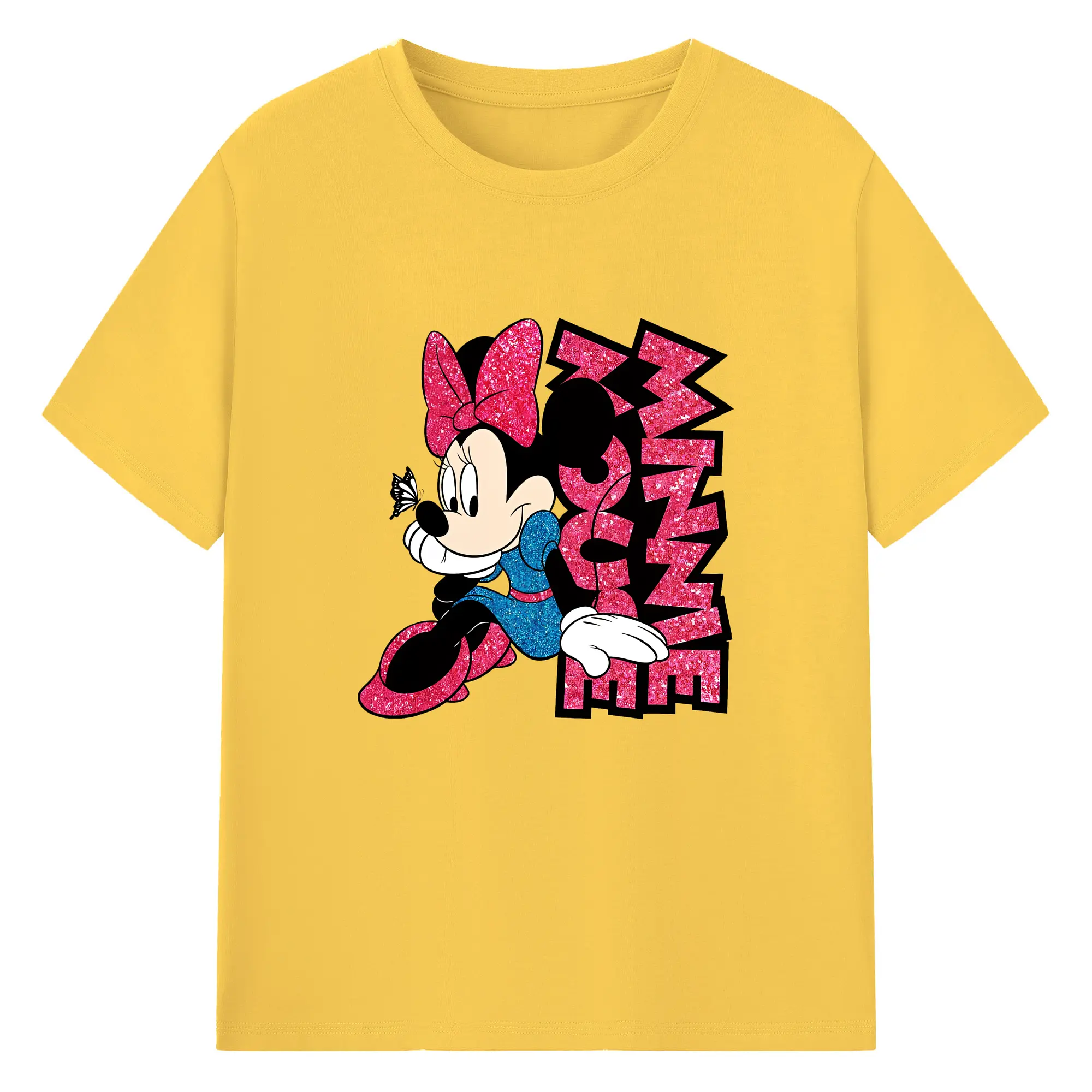 ミッキーマウス(Mickey Mouse) グッズ ミニーマウス(Minnie Mouse) - 綿100% キッズTシャツ ・ フロントプリント ・ 快適 通気性 ・ スポーツ カジュアル 散歩用