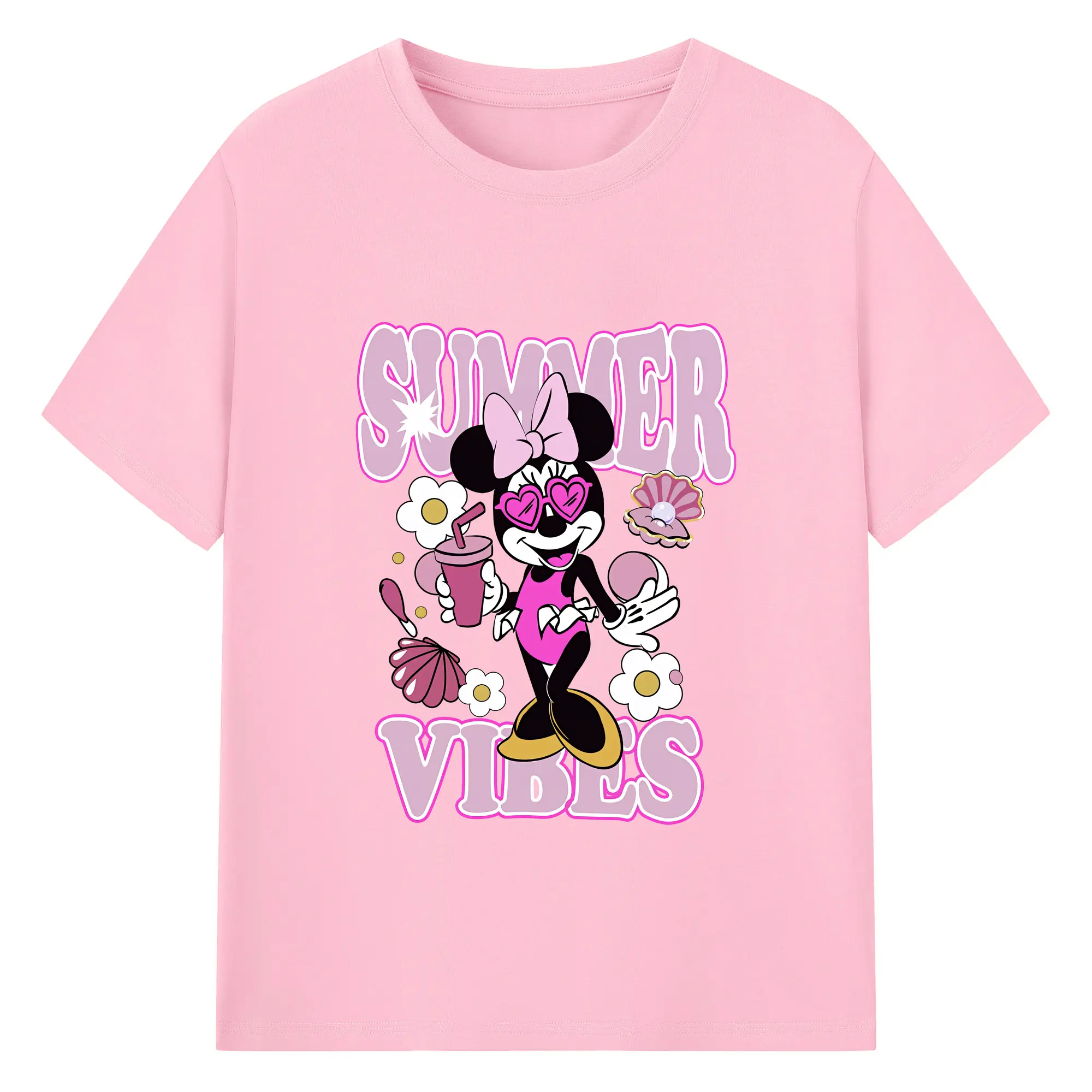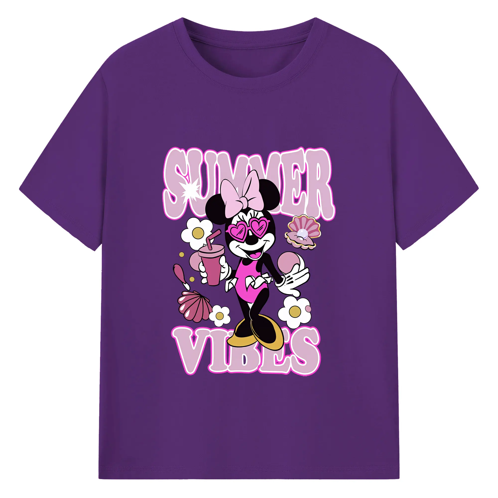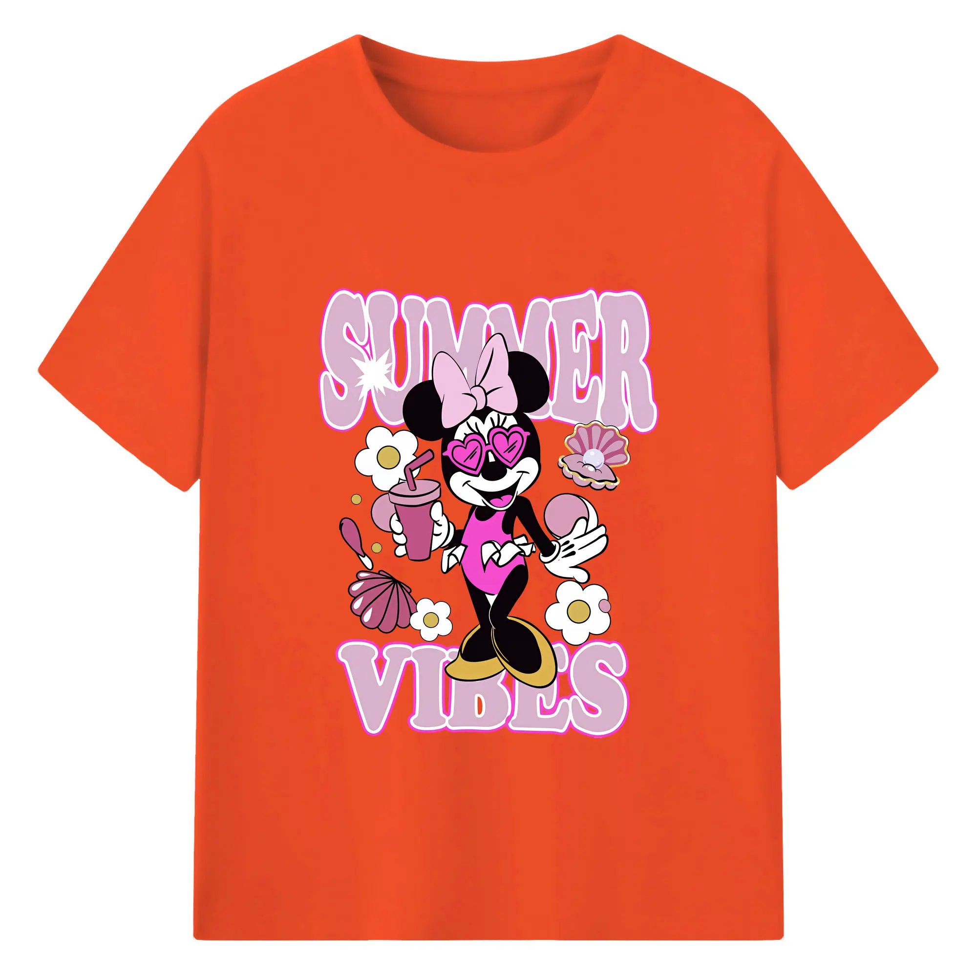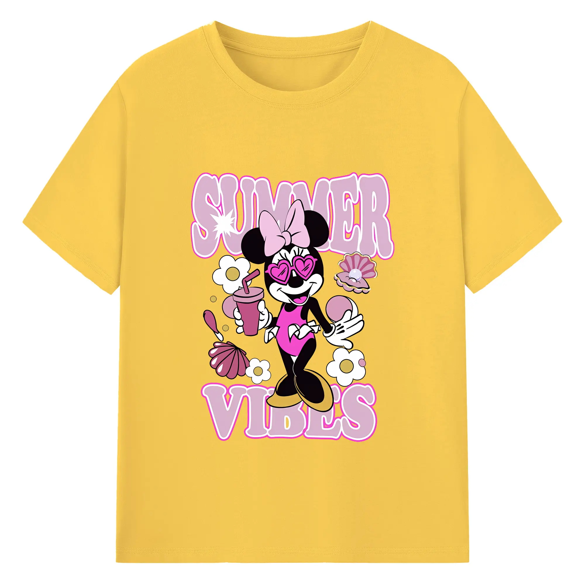 ミッキーマウス(Mickey Mouse) グッズ ミニーマウス(Minnie Mouse) - 綿100% キッズTシャツ ・ フロントプリント ・ 快適 通気性 ・ スポーツ カジュアル 散歩用