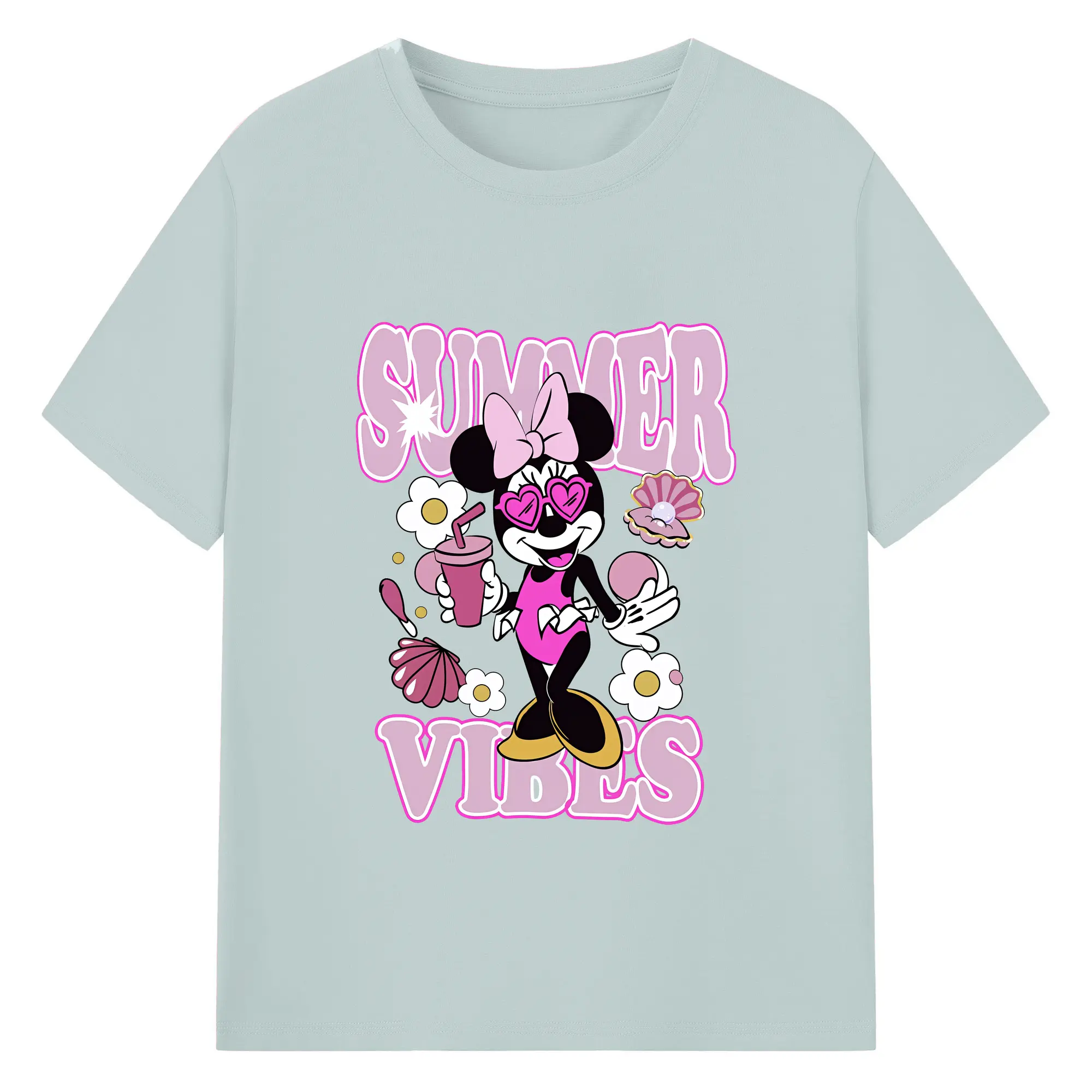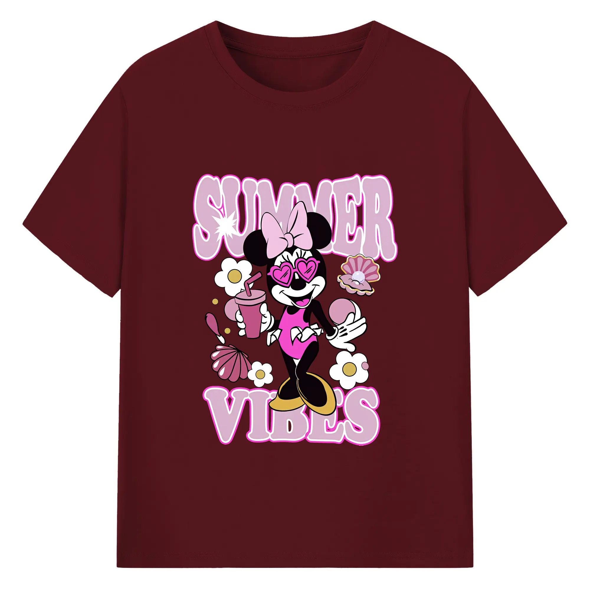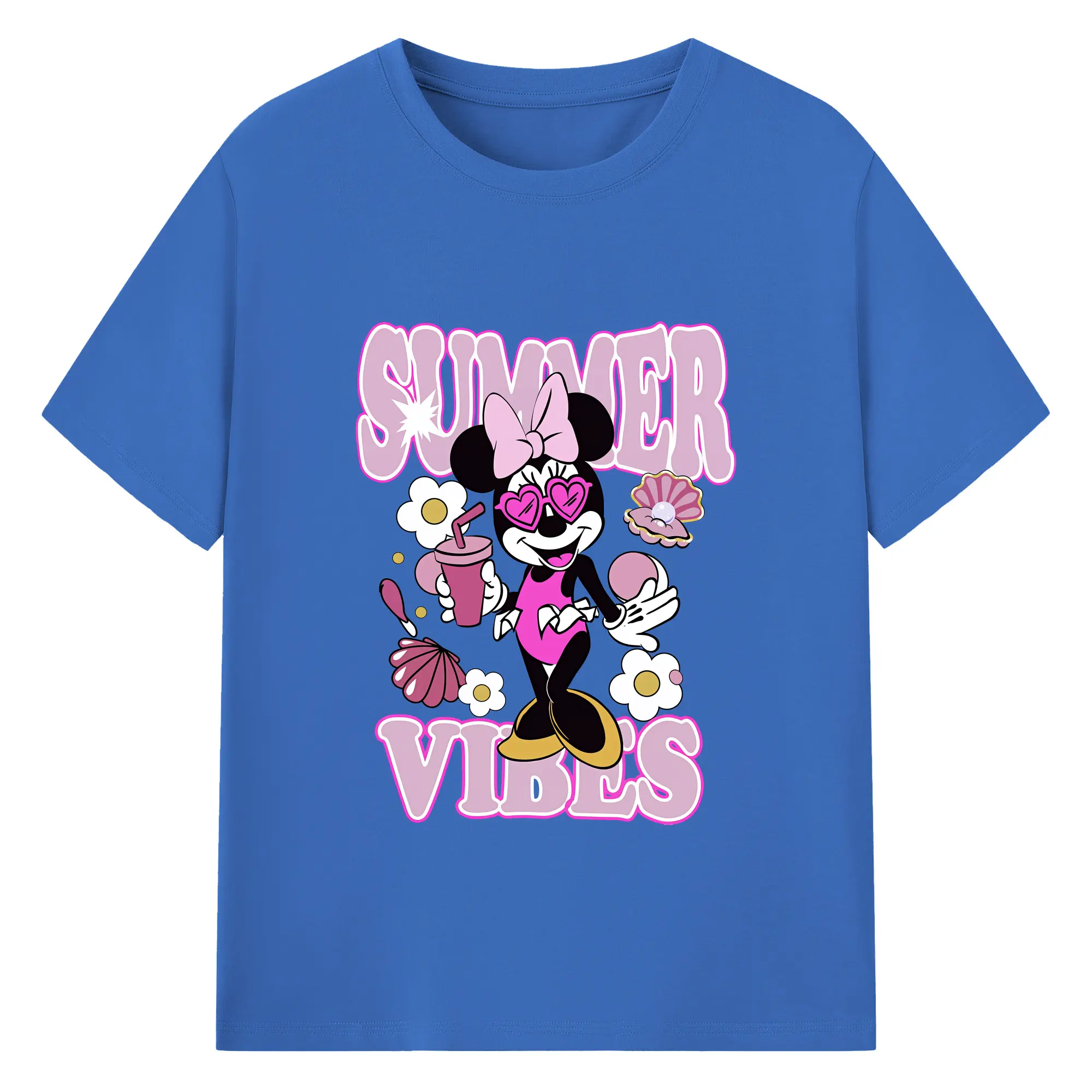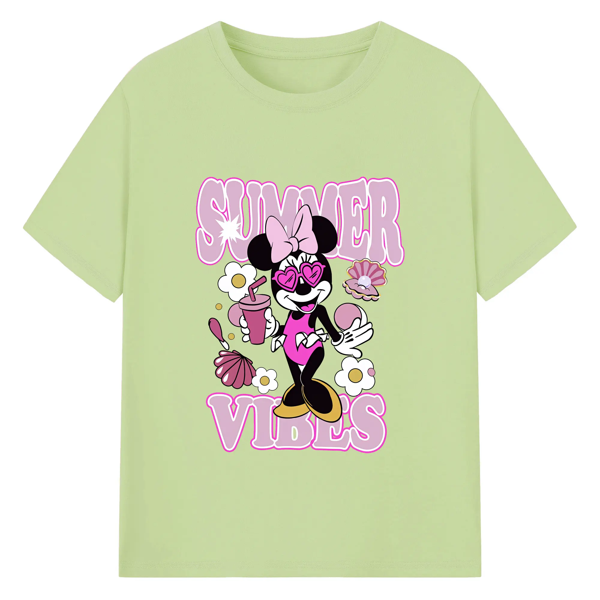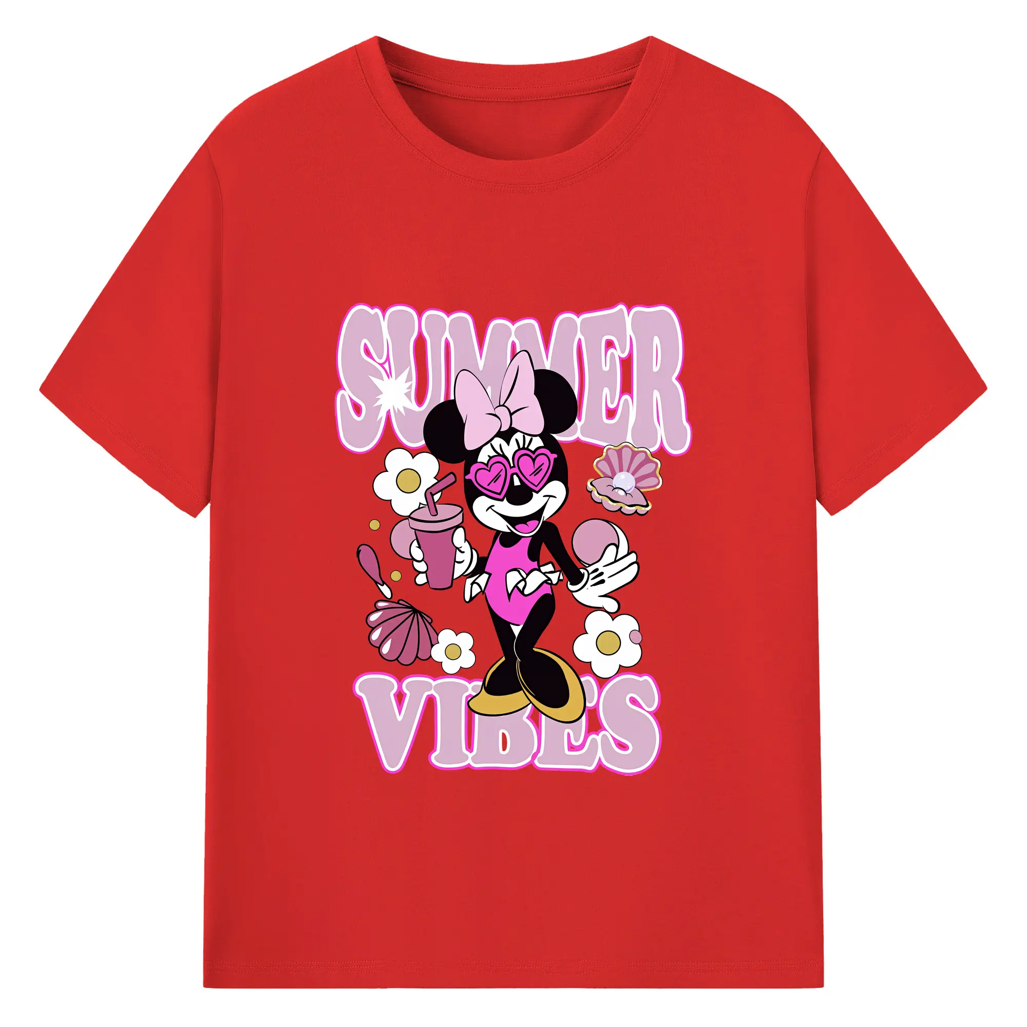 ミッキーマウス(Mickey Mouse) グッズ ミニーマウス(Minnie Mouse) - 綿100% キッズTシャツ ・ フロントプリント ・ 快適 通気性 ・ スポーツ カジュアル 散歩用