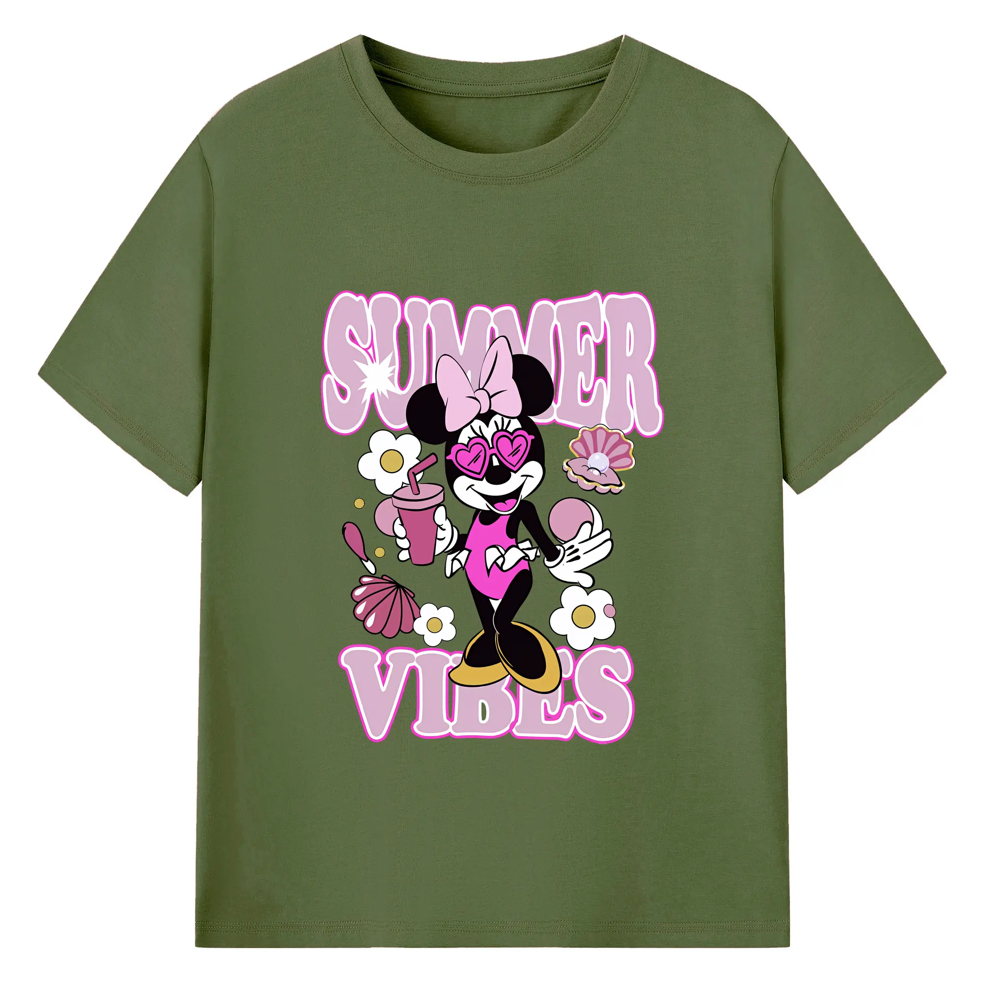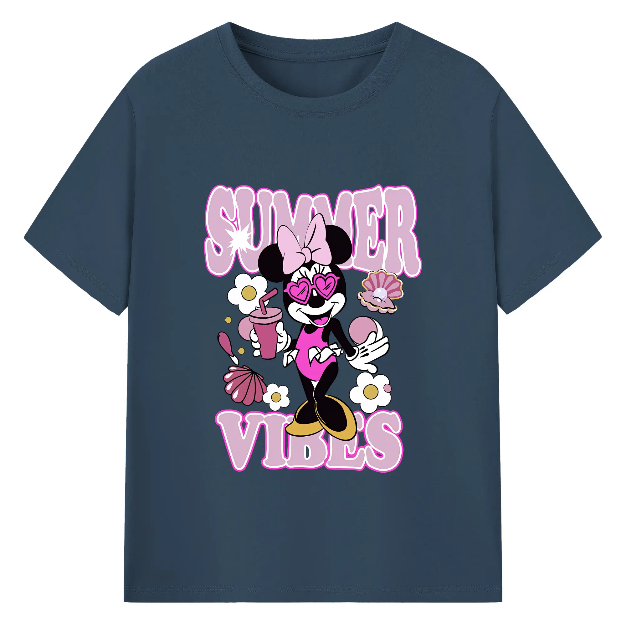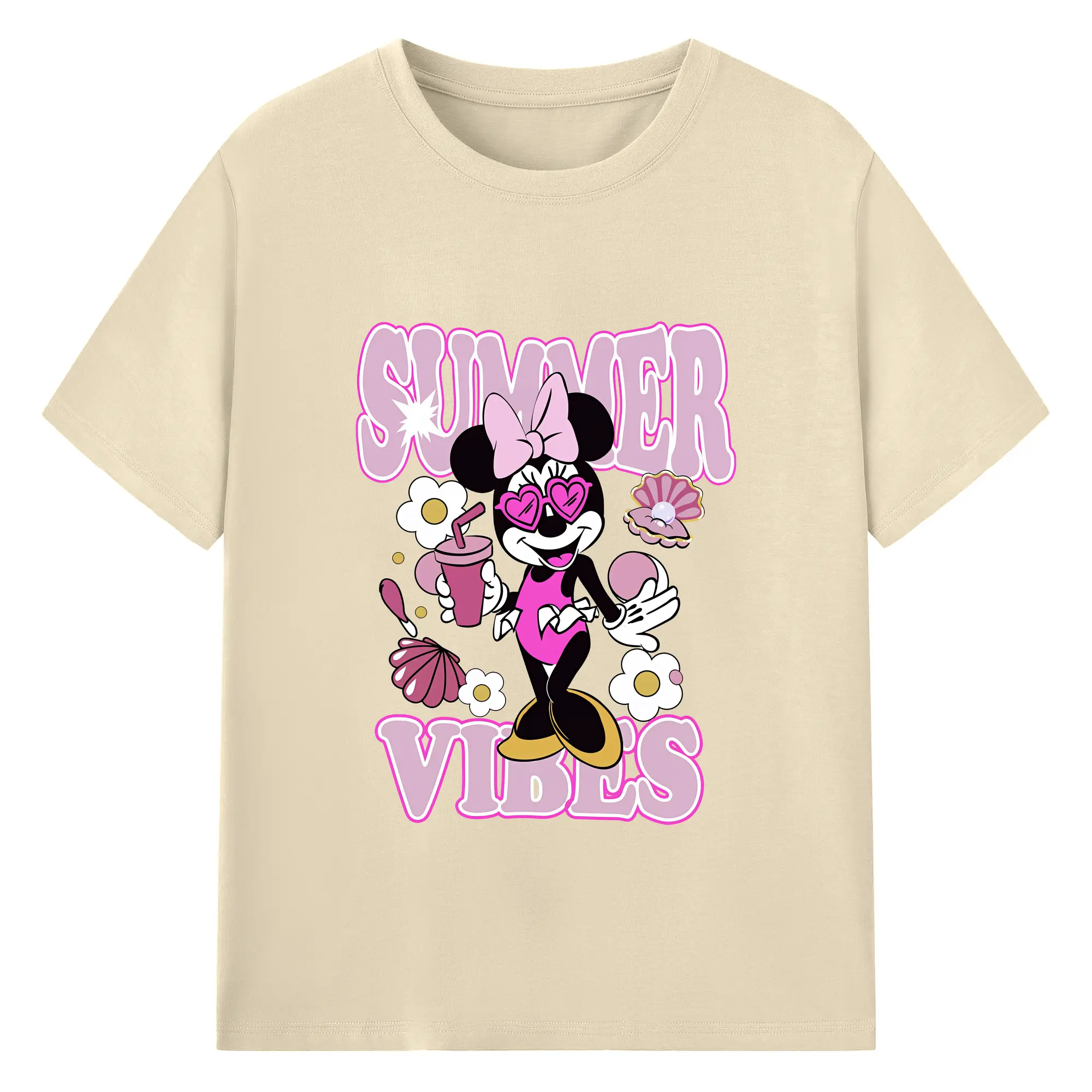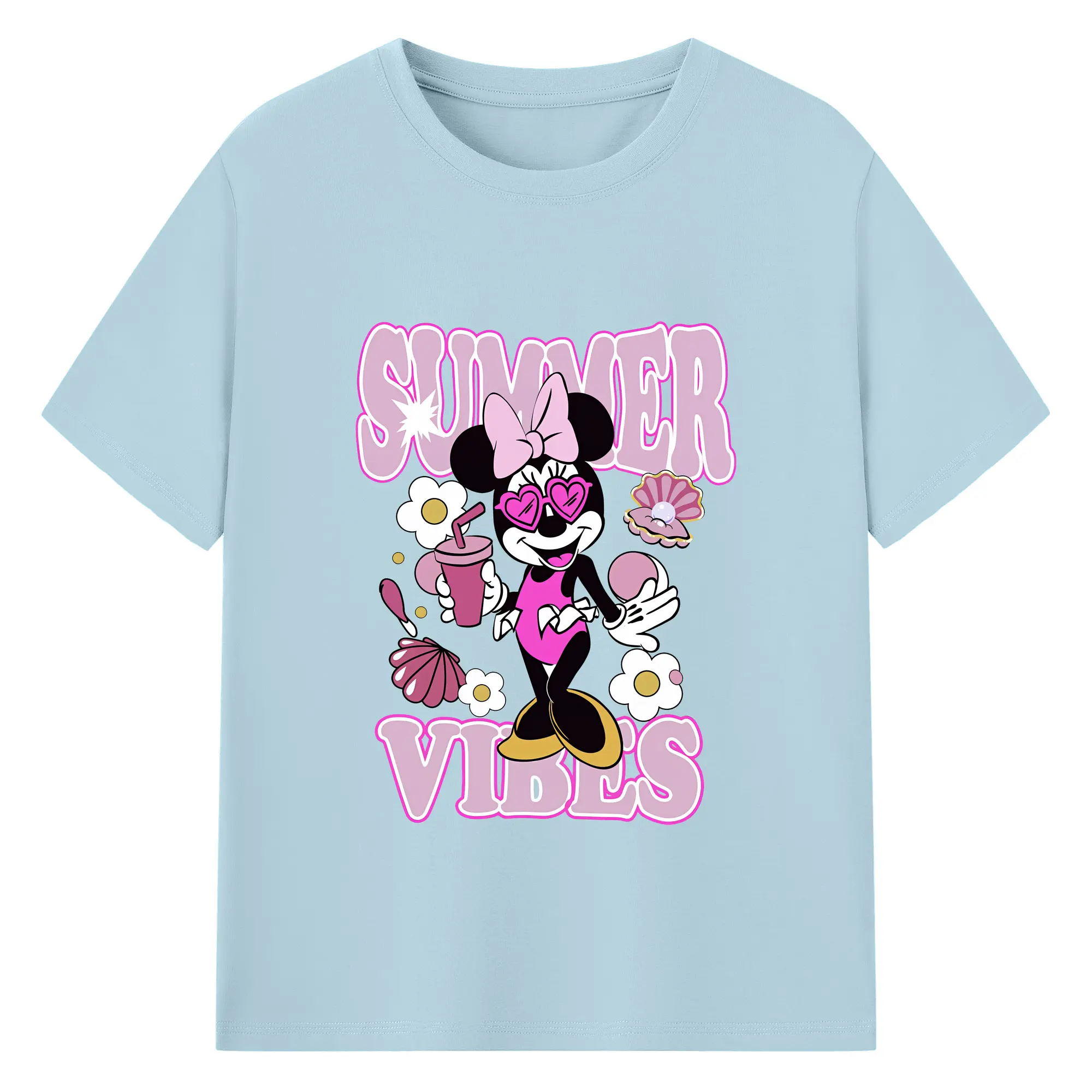 ミッキーマウス(Mickey Mouse) グッズ ミニーマウス(Minnie Mouse) - 綿100% キッズTシャツ ・ フロントプリント ・ 快適 通気性 ・ スポーツ カジュアル 散歩用