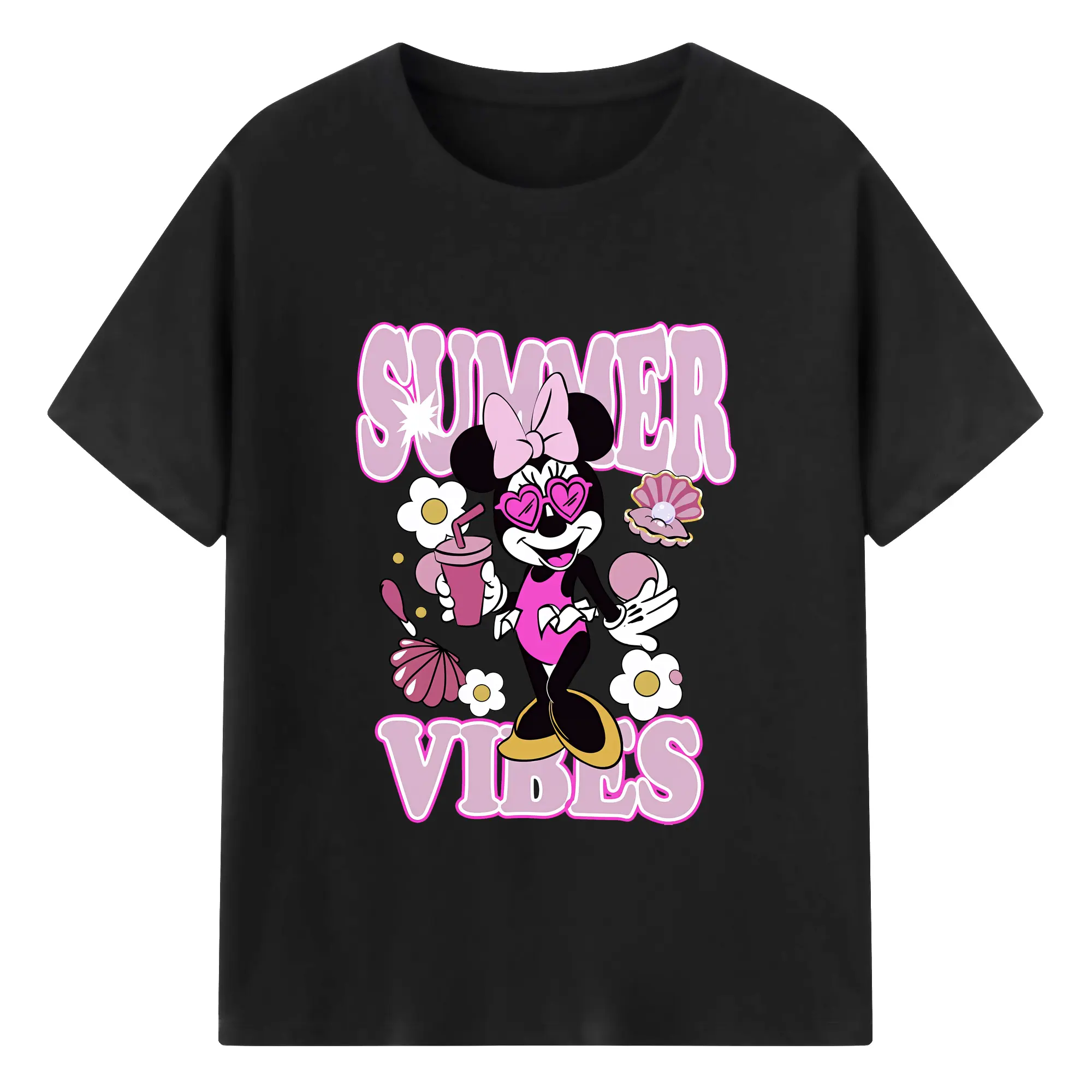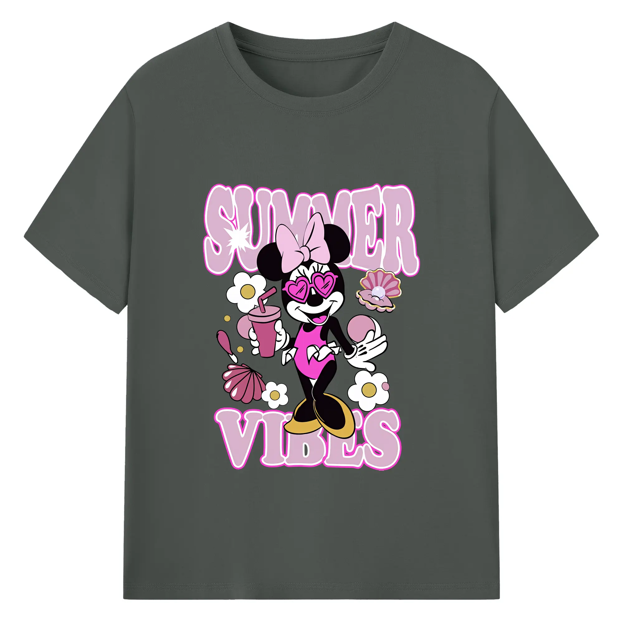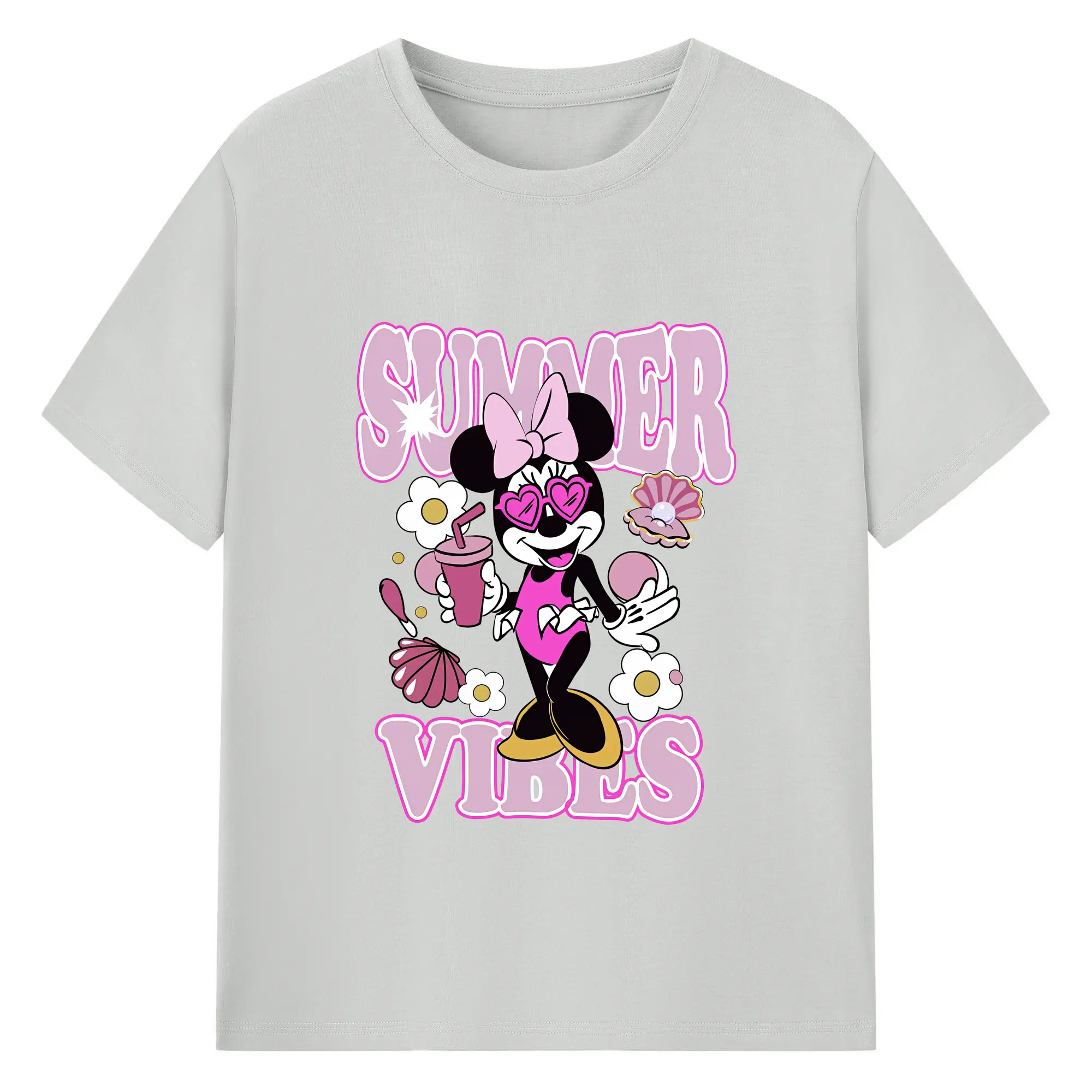 ミッキーマウス(Mickey Mouse) グッズ ミニーマウス(Minnie Mouse) - 綿100% 半袖Tシャツ ・ バックプリント ・ 快適 通気性 ・ 日常使い 散歩 スポーツ用