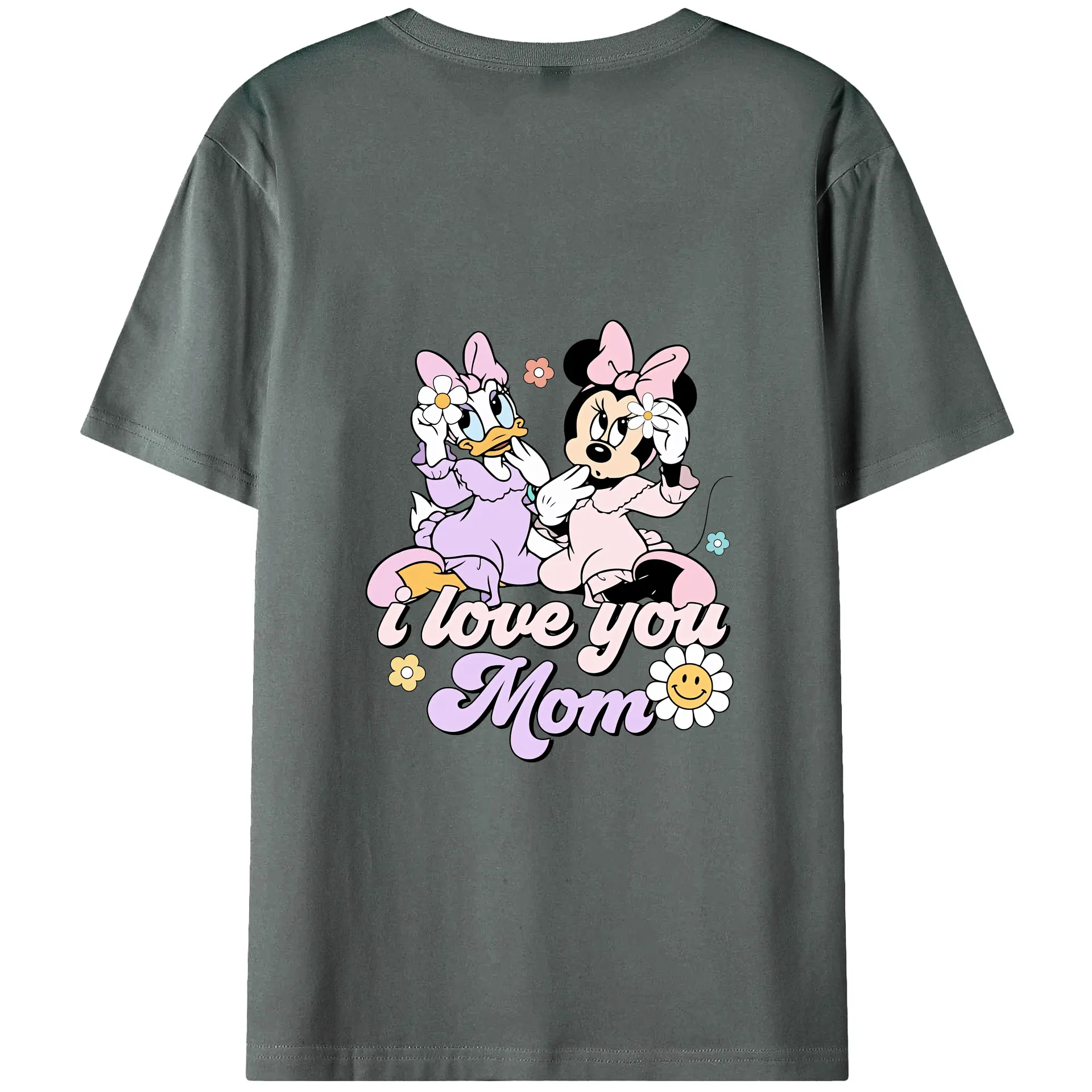ミッキーマウス(Mickey Mouse) グッズ ミニーマウス(Minnie Mouse) - 綿100% 半袖Tシャツ ・ フロントプリント ・ 快適 通気性 ・ 日常使い 散歩 スポーツ用