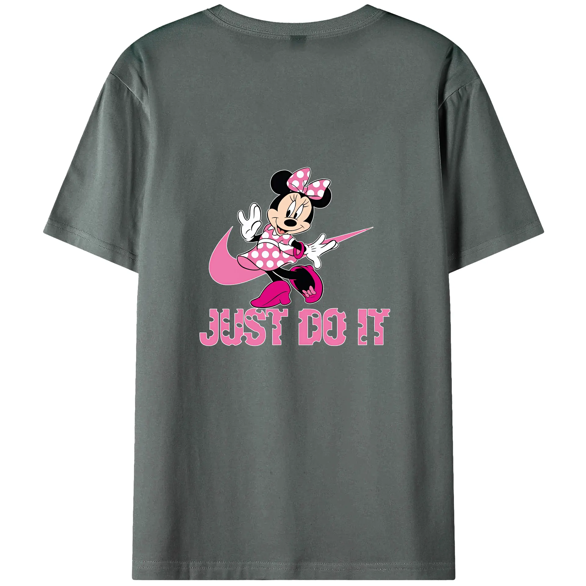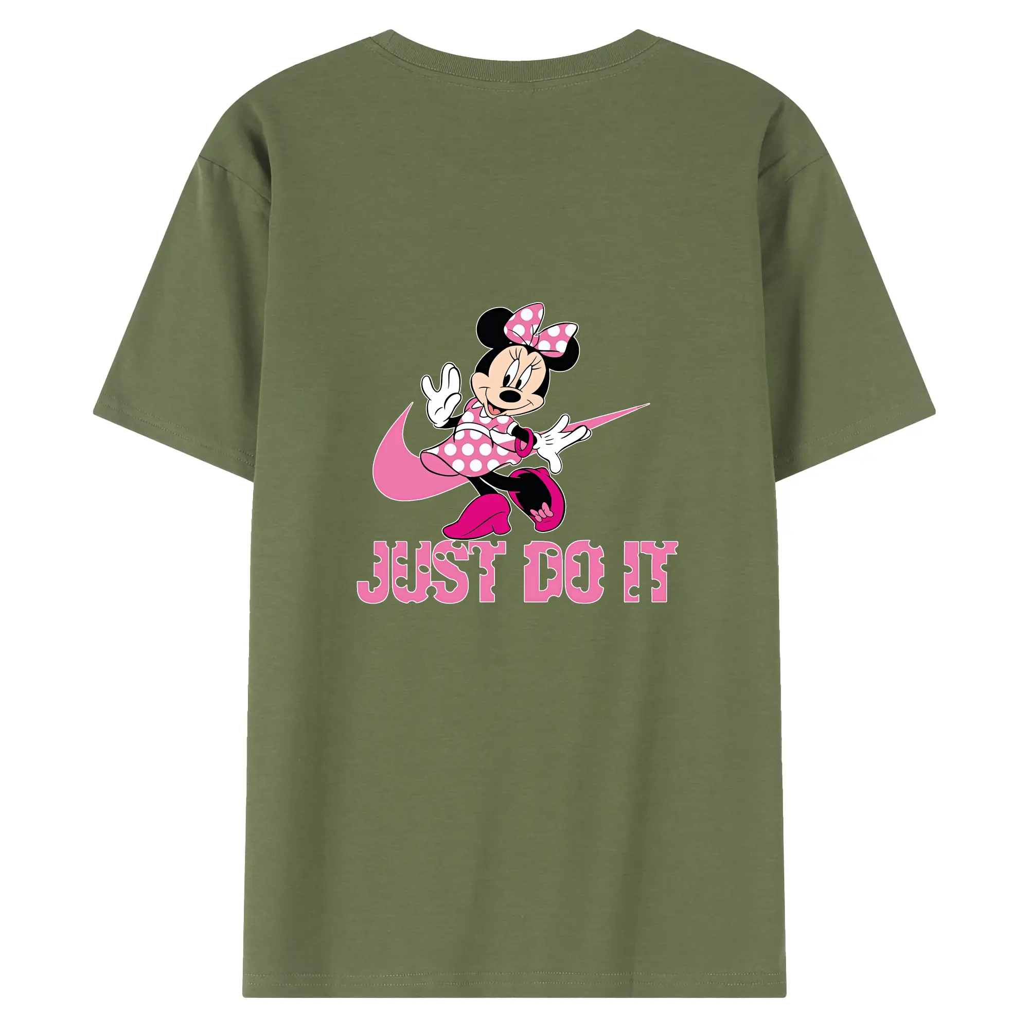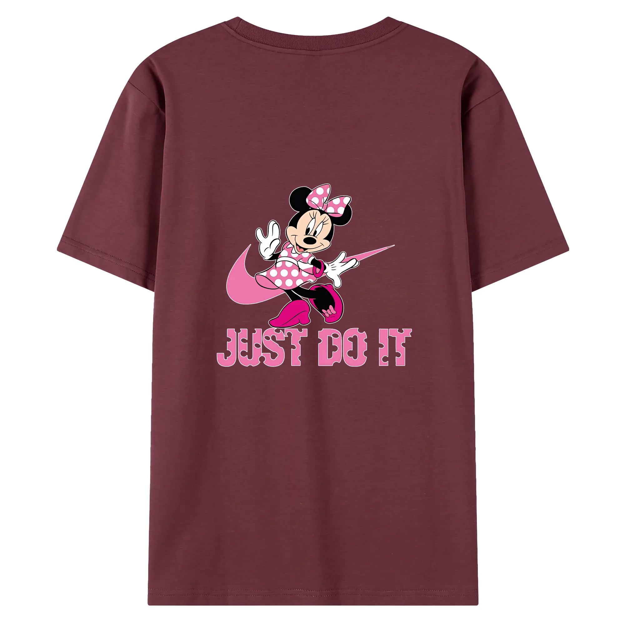 ミッキーマウス(Mickey Mouse) グッズ ミニーマウス(Minnie Mouse) - 綿100% 半袖Tシャツ ・ フロントプリント ・ 快適 通気性 ・ 日常使い 散歩 スポーツ用