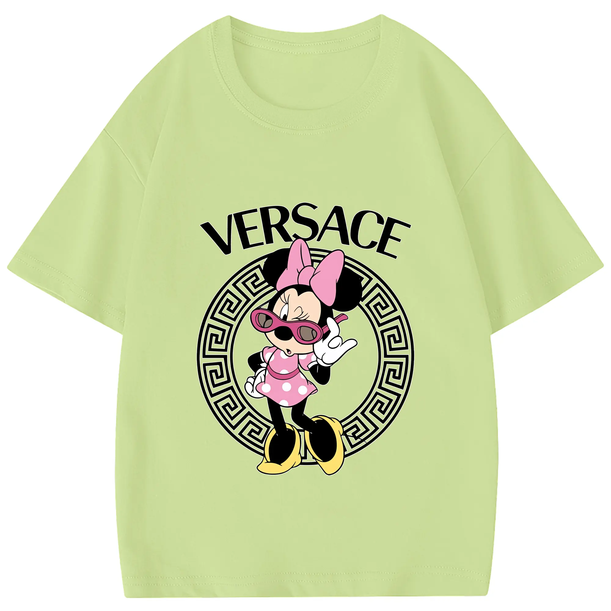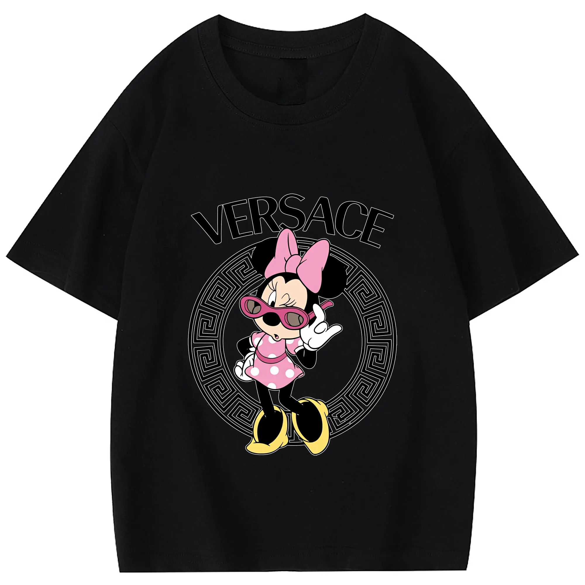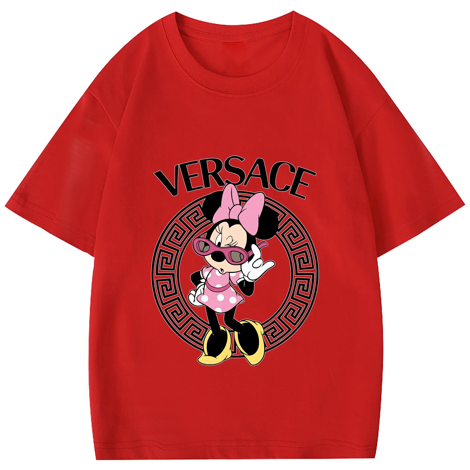 ミッキーマウス(Mickey Mouse) グッズ ミニーマウス(Minnie Mouse) - 綿100% 半袖Tシャツ ・ フロントプリント ・ 快適 通気性 ・ 日常使い 散歩 スポーツ用