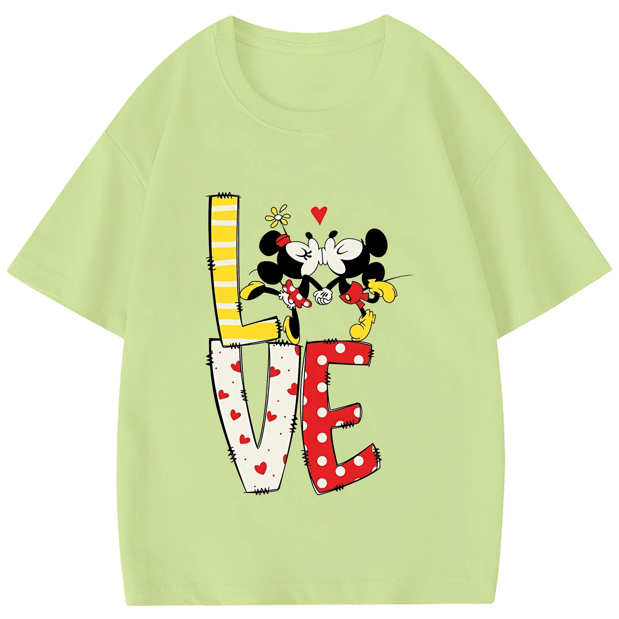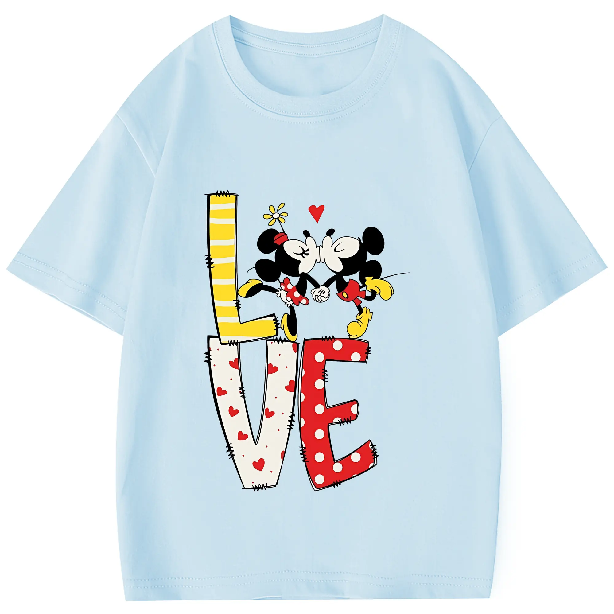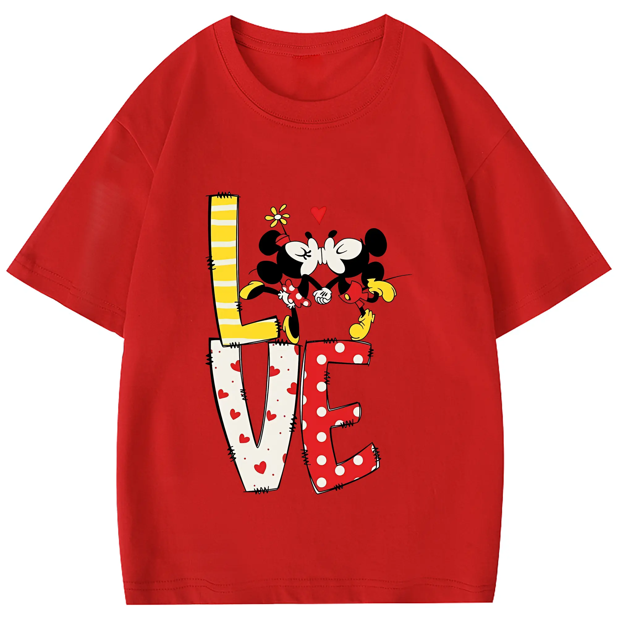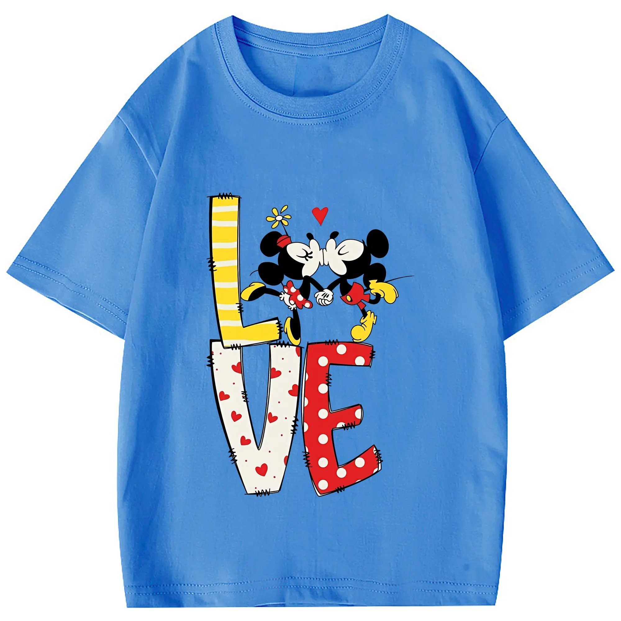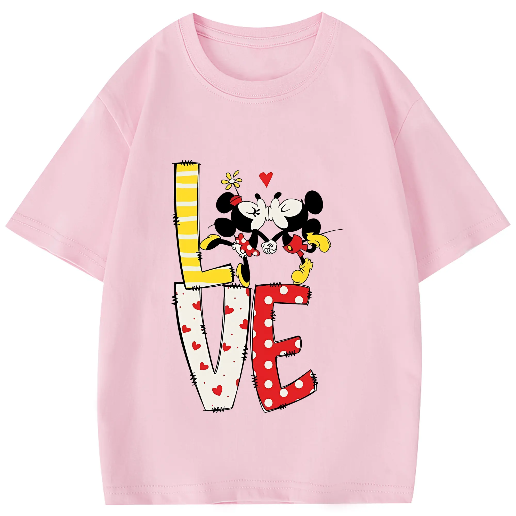 ミッキーマウス(Mickey Mouse) グッズ ミニーマウス(Minnie Mouse) - 綿100% 半袖Tシャツ ・ フロントプリント ・ 快適 通気性 ・ 日常使い 散歩 スポーツ用