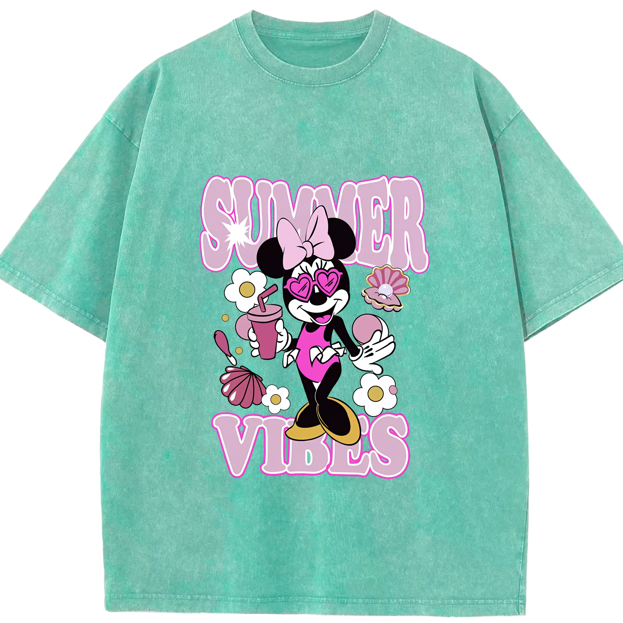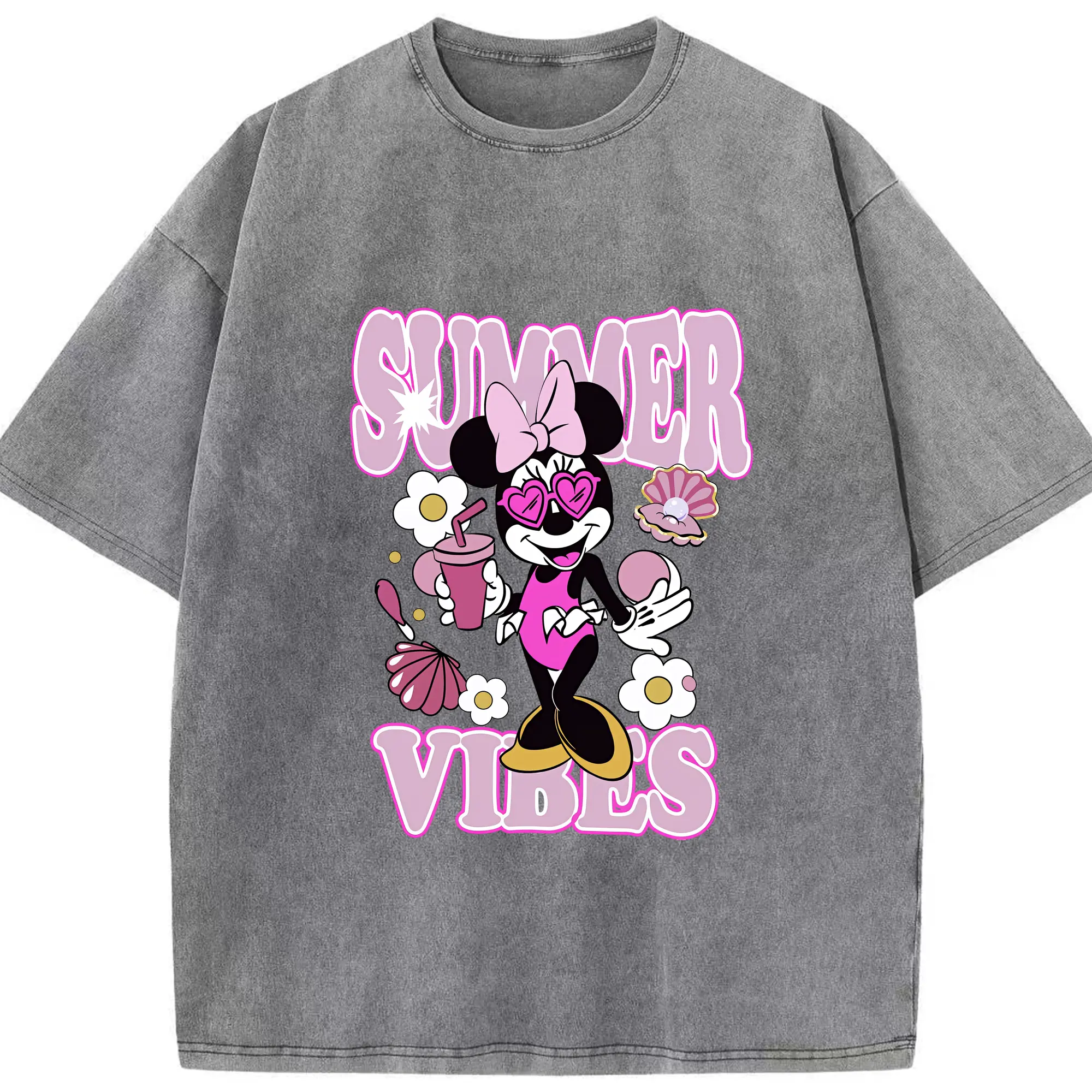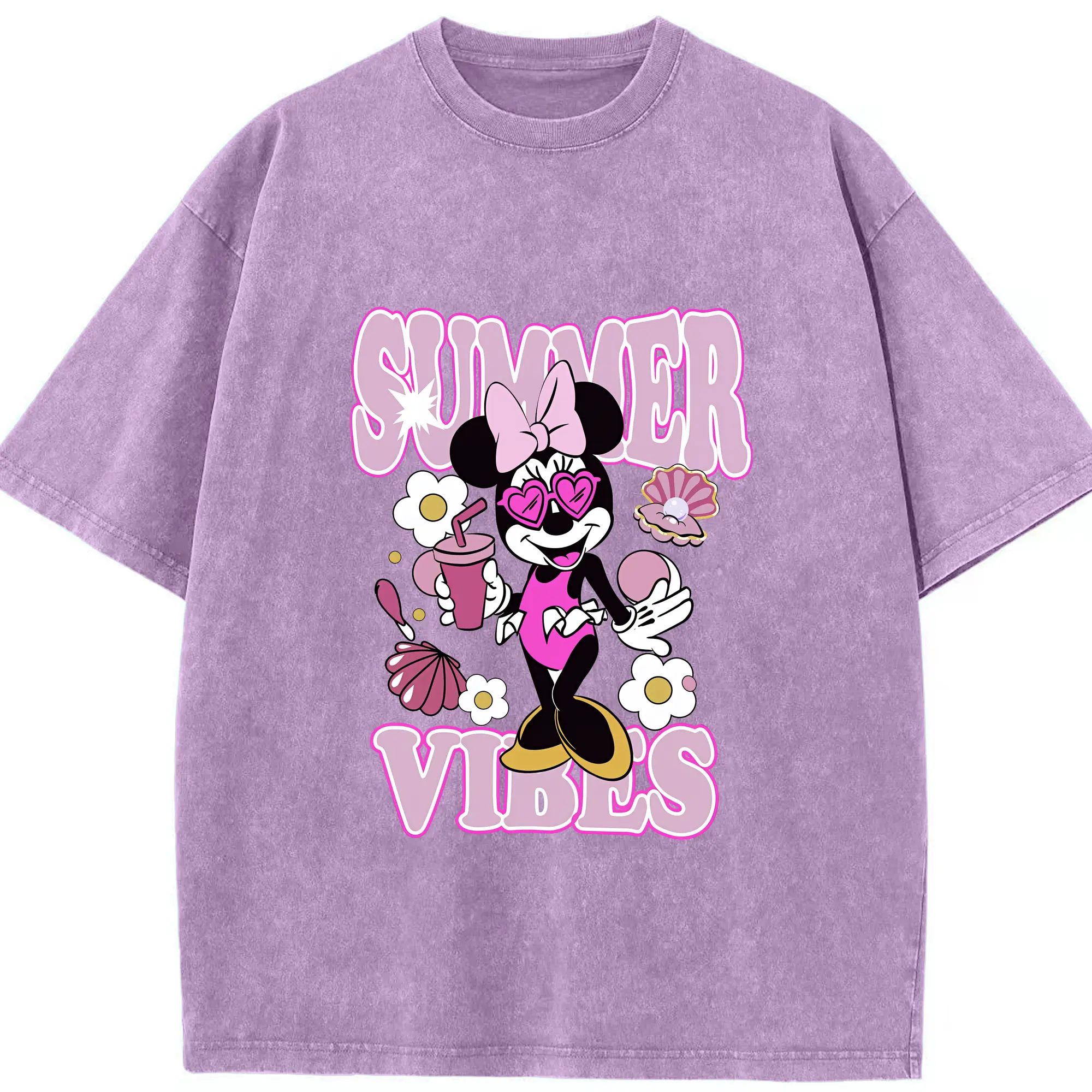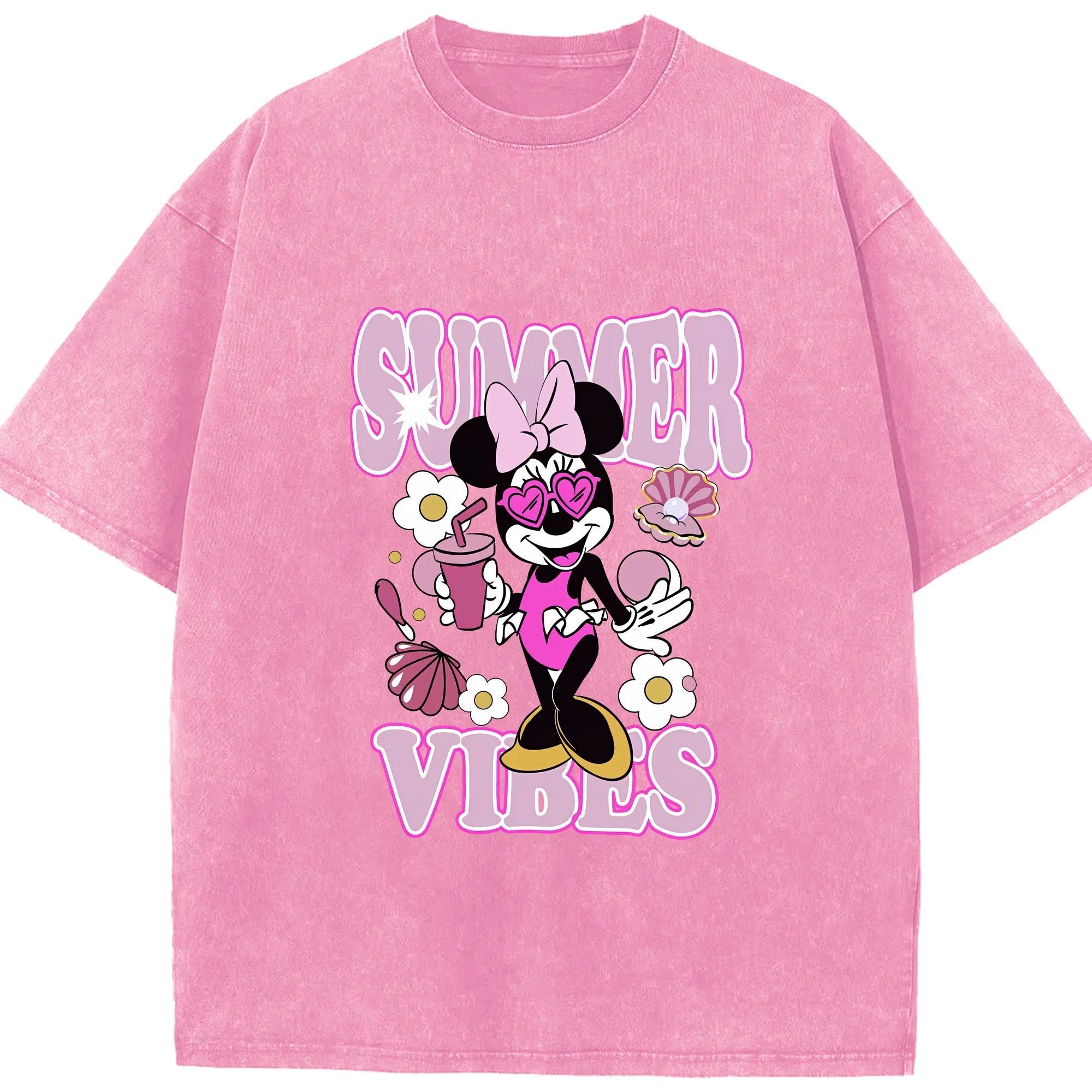 ミッキーマウス(Mickey Mouse) グッズ ミニーマウス(Minnie Mouse) - 綿100% 半袖Tシャツ ・ フロントプリント ・ 快適 通気性 ・ 日常使い 散歩 スポーツ用