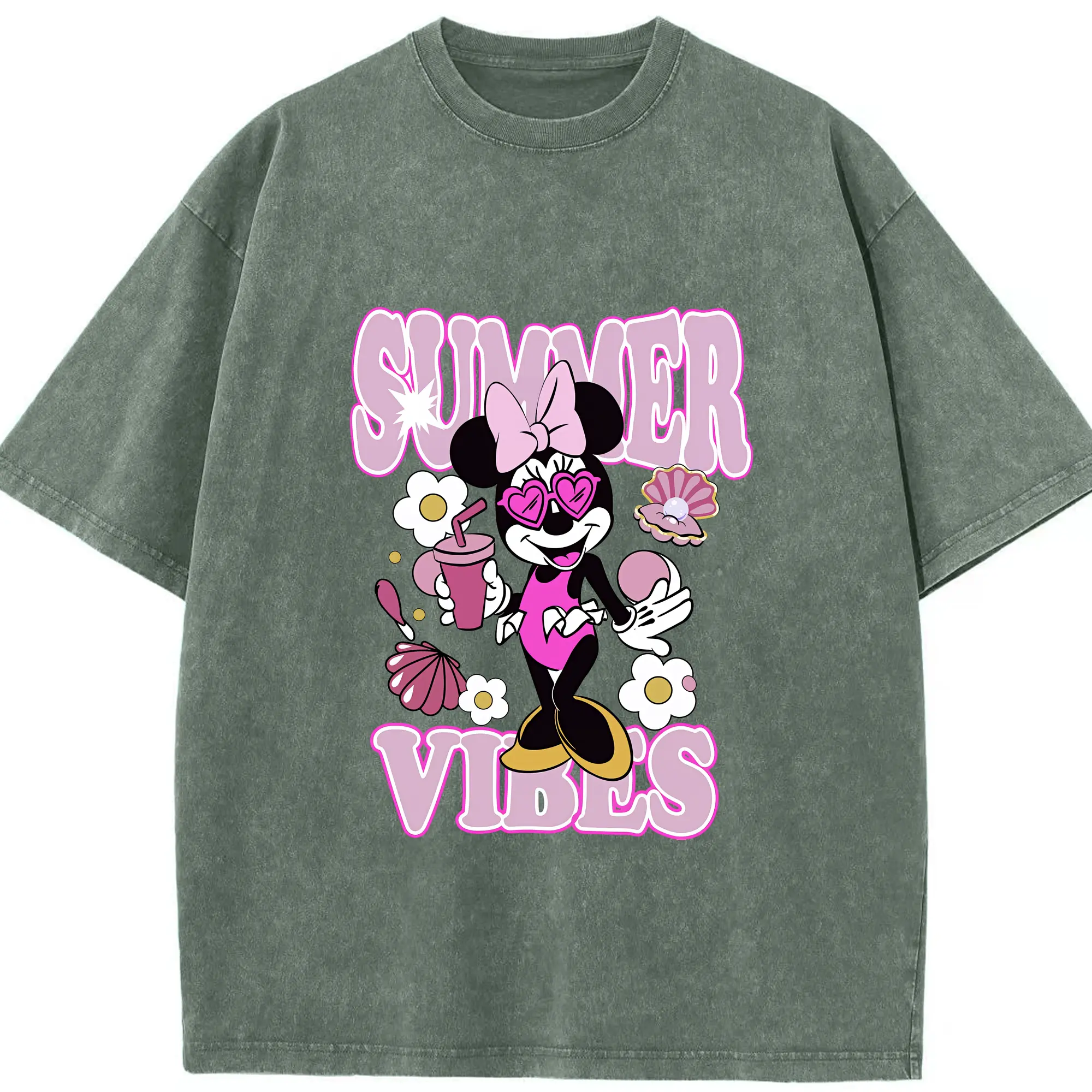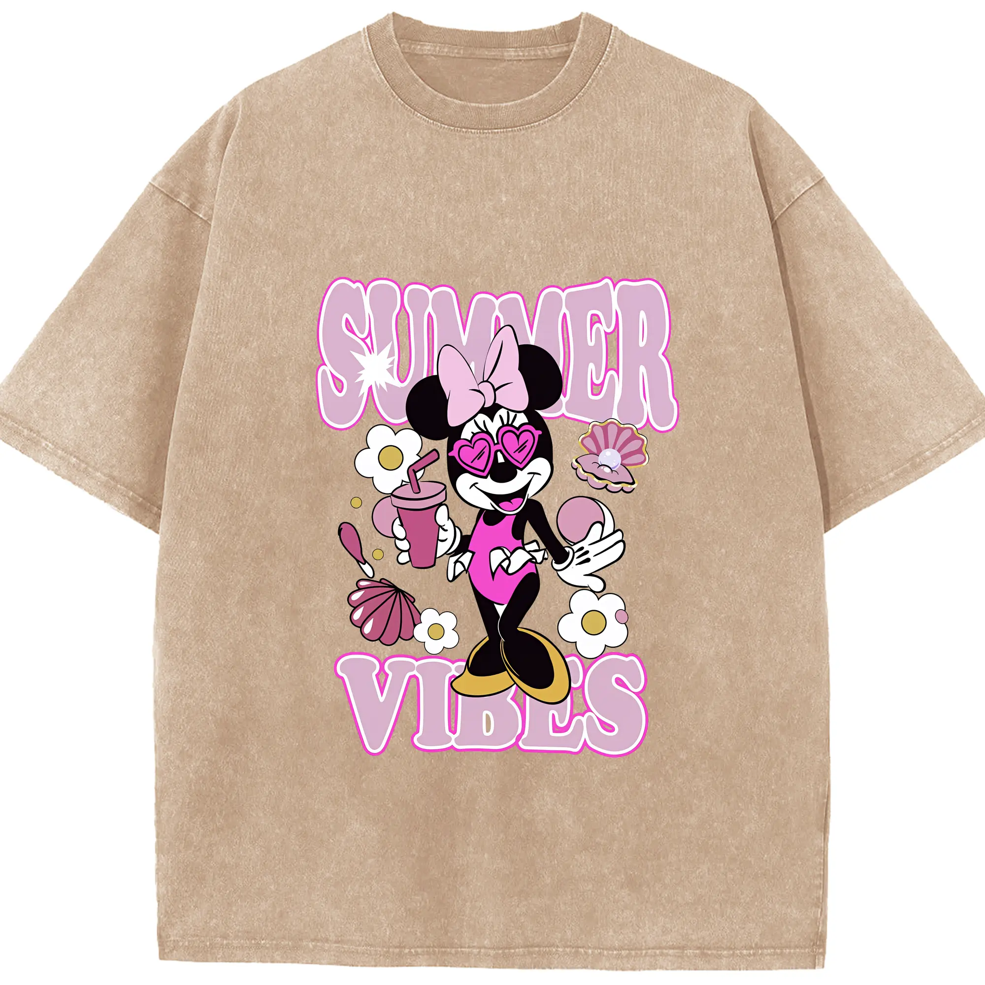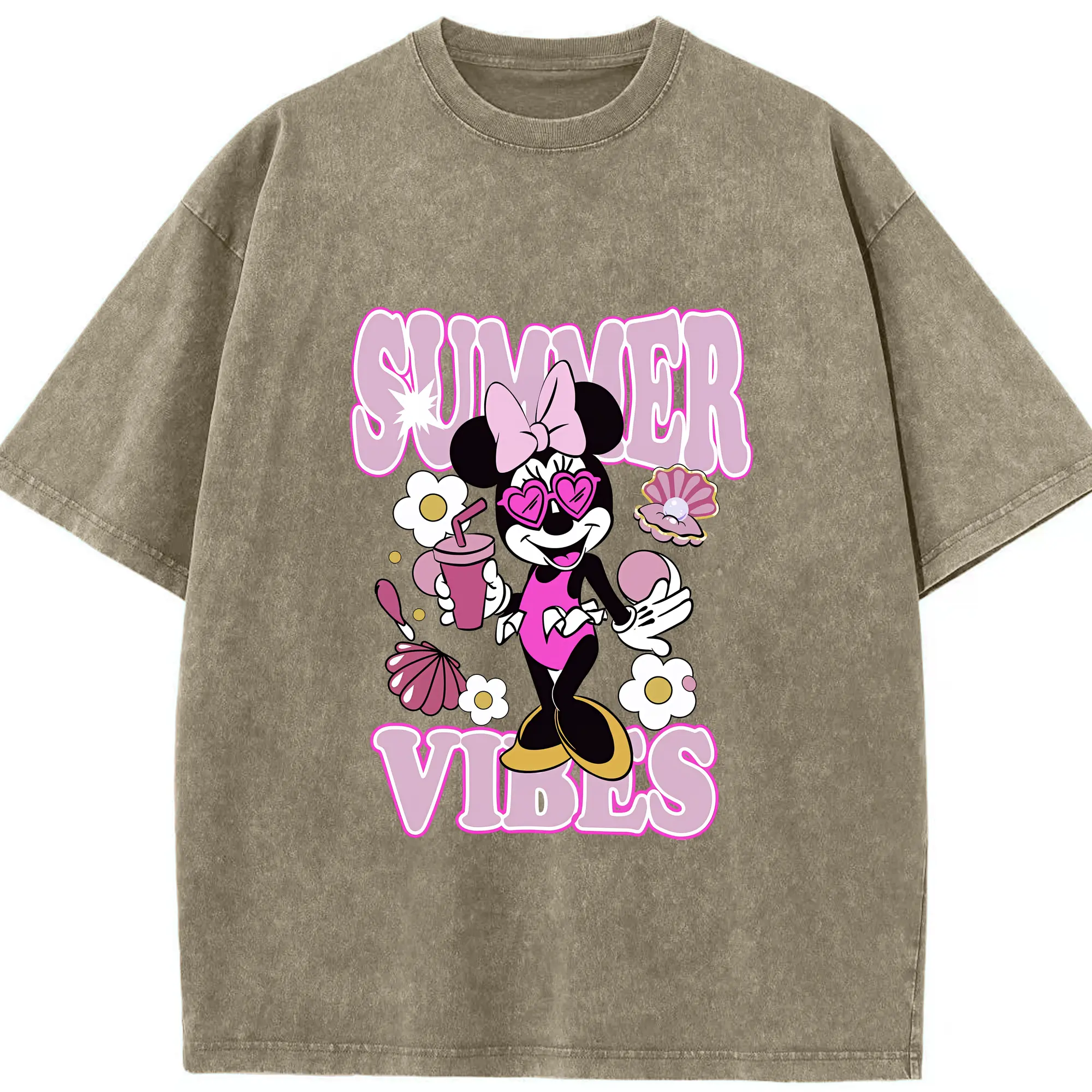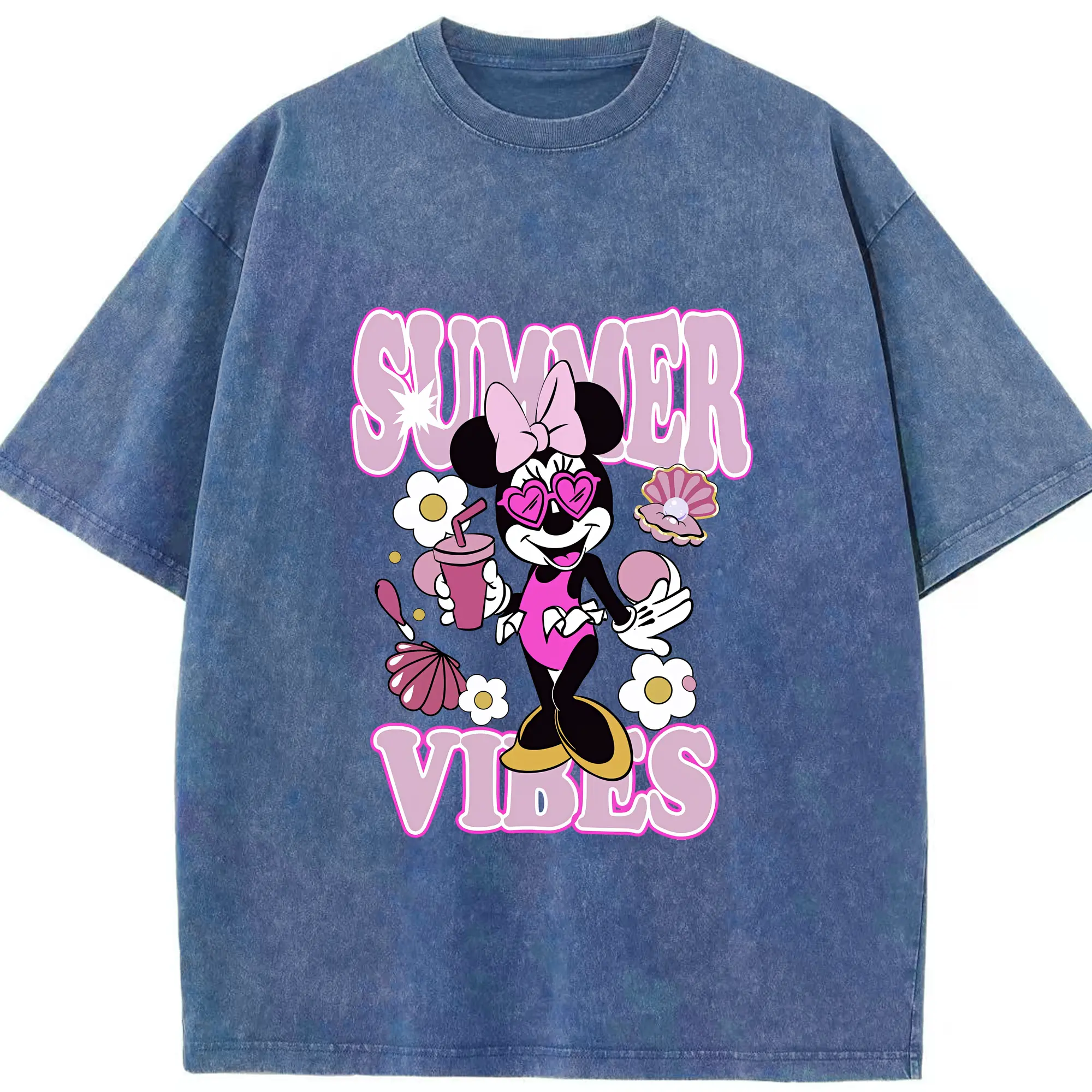 ミッキーマウス(Mickey Mouse) グッズ ミニーマウス(Minnie Mouse) - 綿100% 半袖Tシャツ ・ フロントプリント ・ 快適 通気性 ・ 日常使い 散歩 スポーツ用