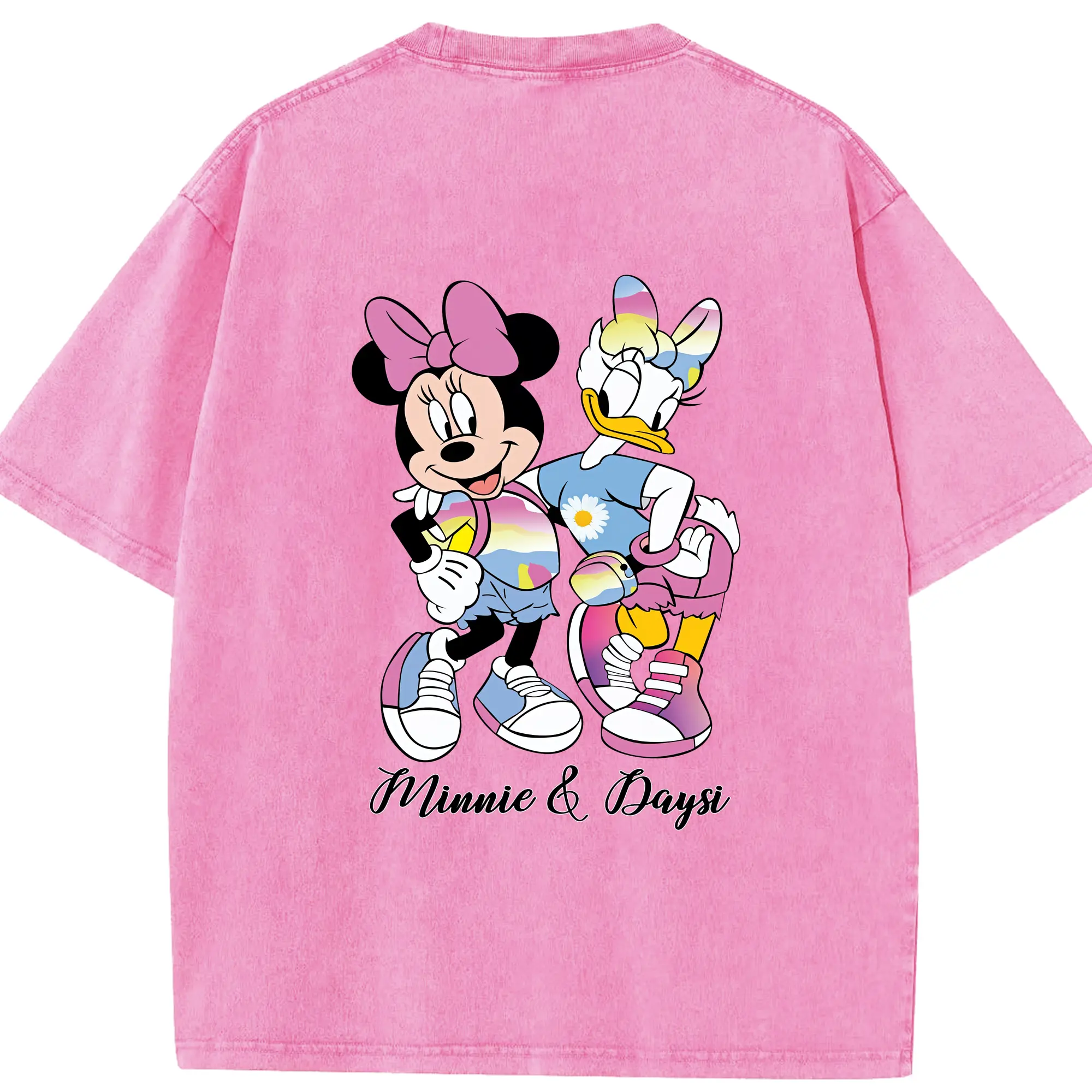 ミッキーマウス(Mickey Mouse) グッズ ミニーマウス(Minnie Mouse) - 綿100% 半袖Tシャツ ・ バックプリント ・ 快適 通気性 ・ 日常使い 散歩 スポーツ用
