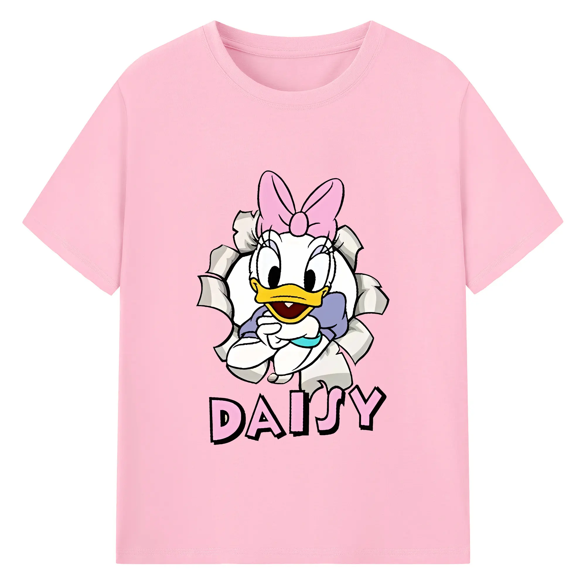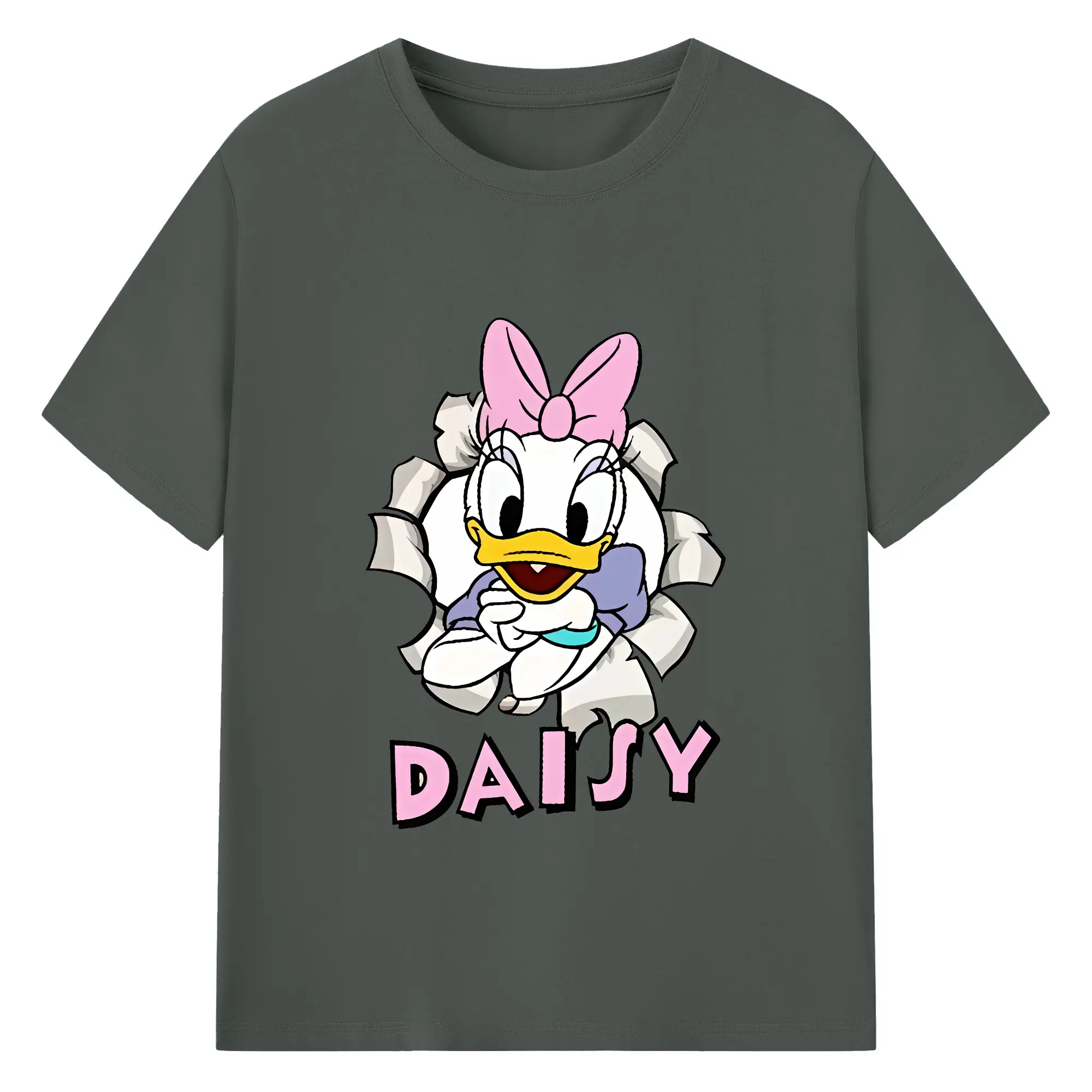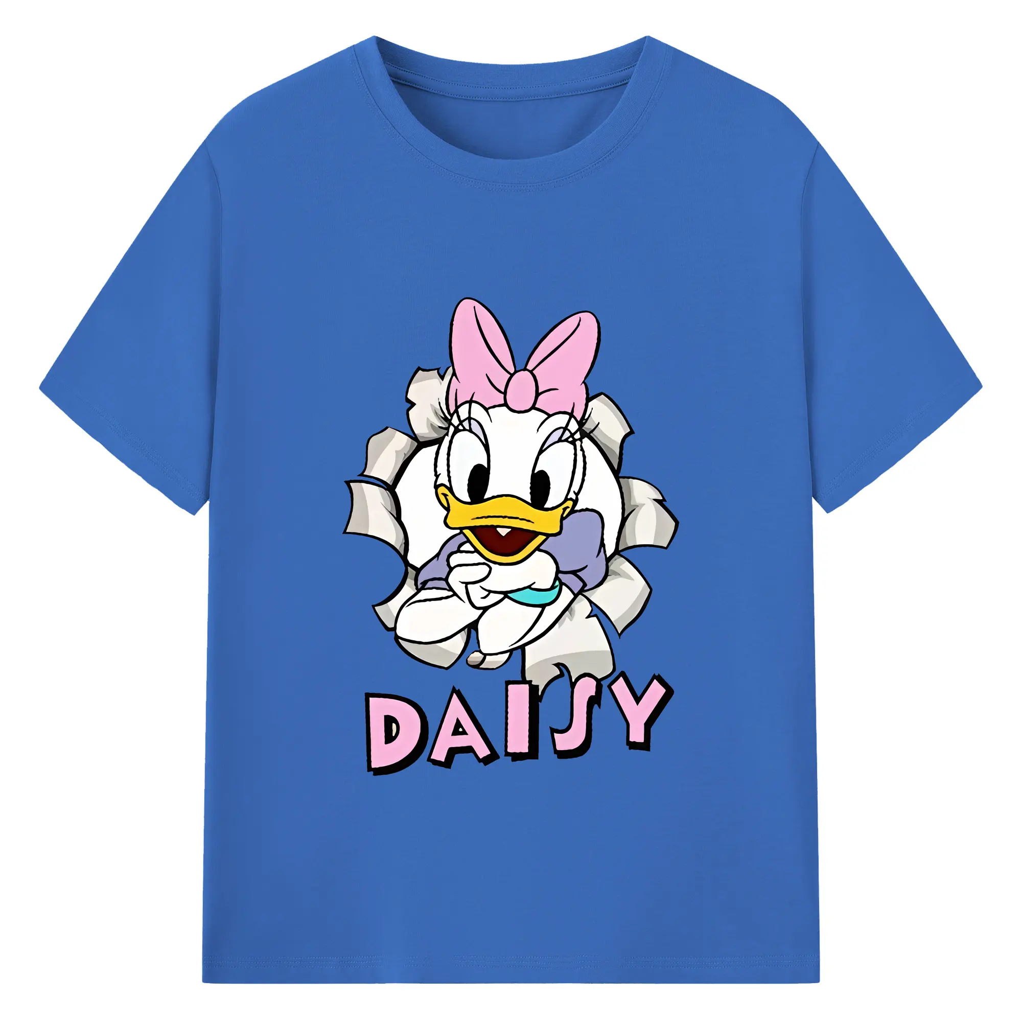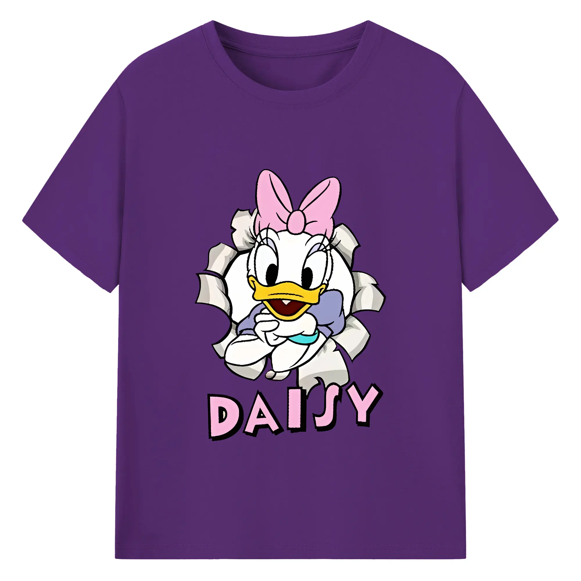 ミッキーマウス(Mickey Mouse) グッズ デイジーダック(Daisy Duck) - 綿100% 半袖Tシャツ ・ バックプリント ・ 快適 通気性 ・ 日常使い 散歩 スポーツ用
