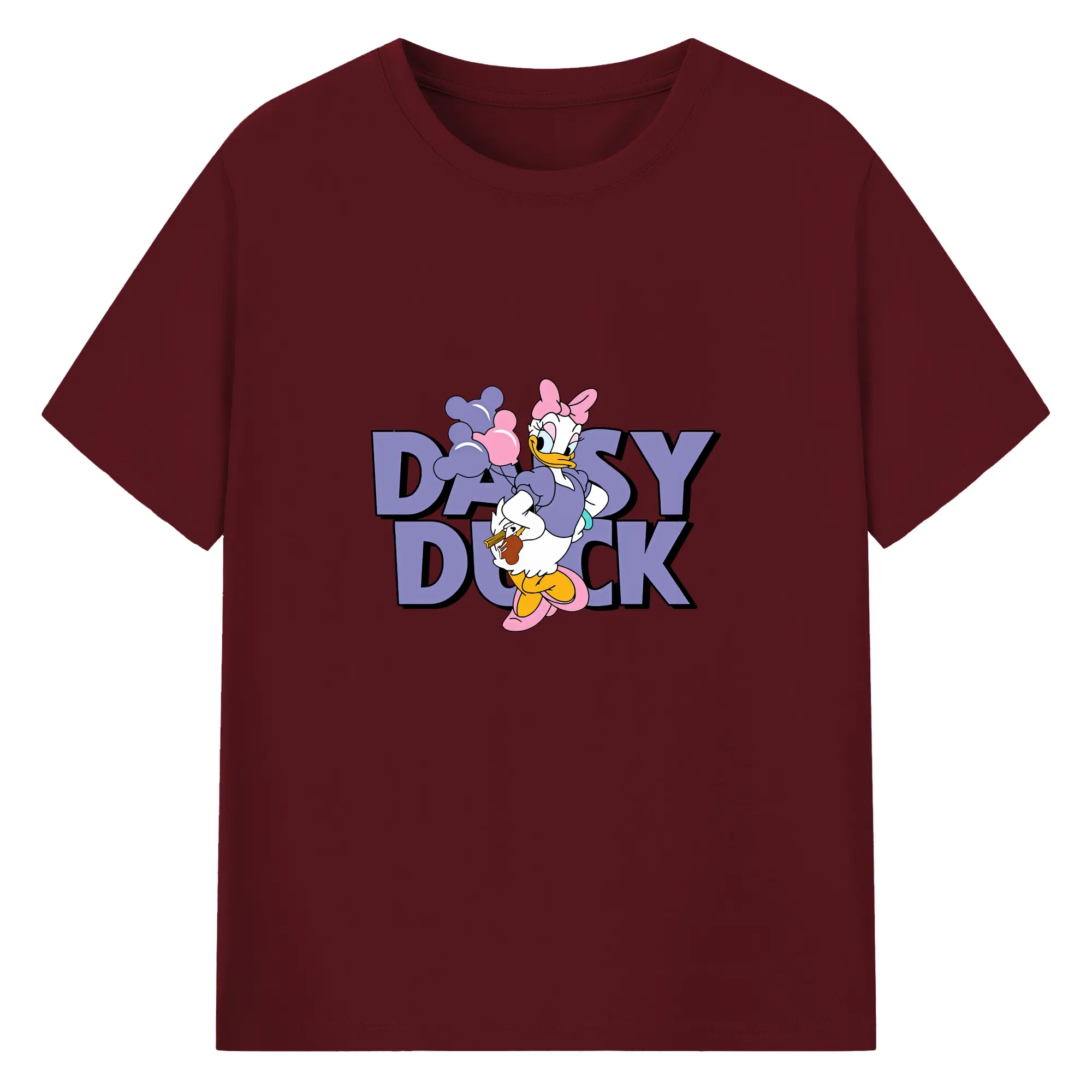 ミッキーマウス(Mickey Mouse) グッズ デイジーダック(Daisy Duck) - 綿100% 半袖Tシャツ ・ バックプリント ・ 快適 通気性 ・ 日常使い 散歩 スポーツ用