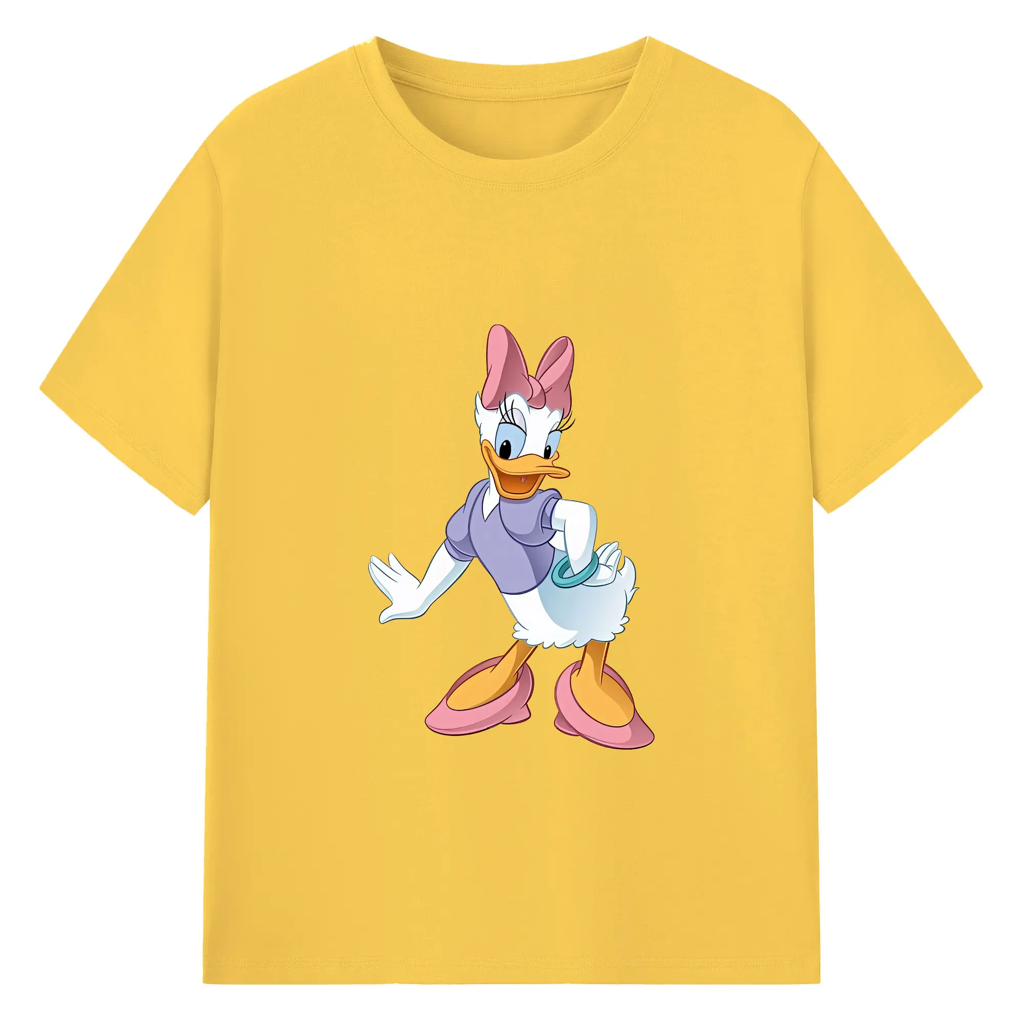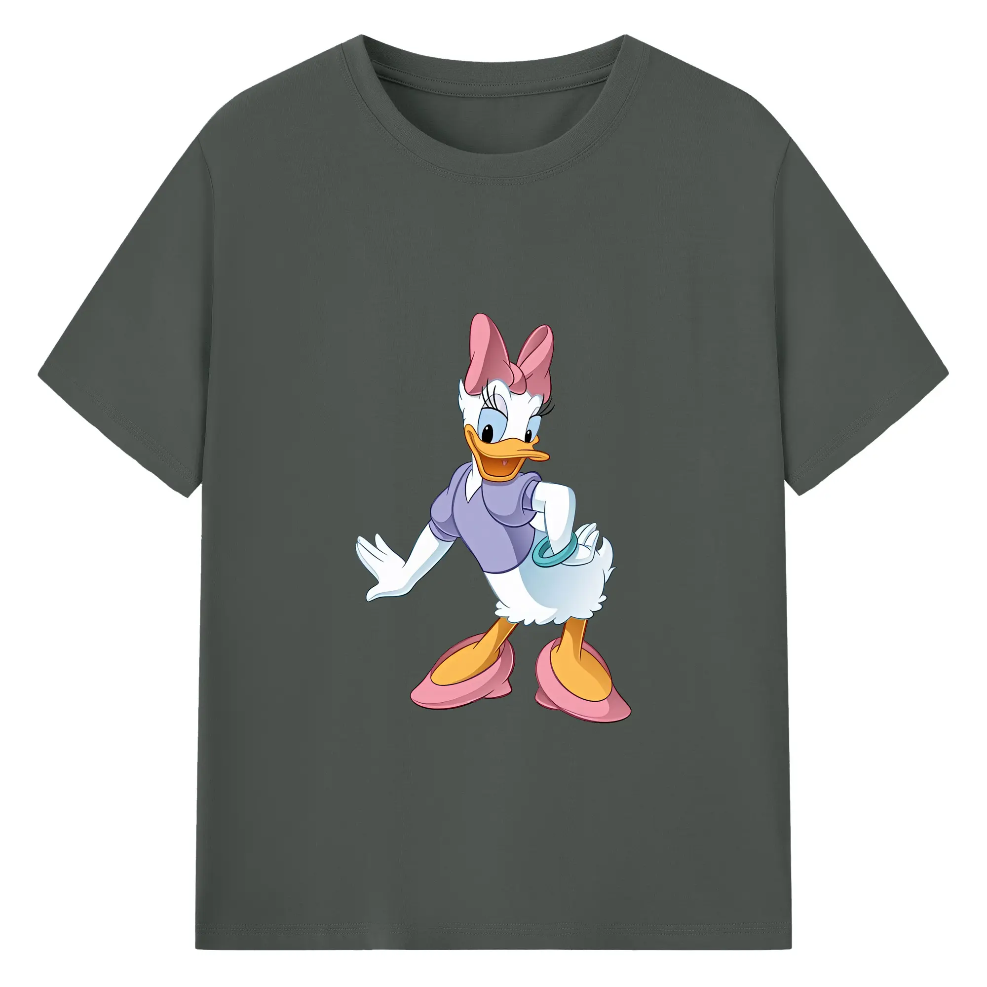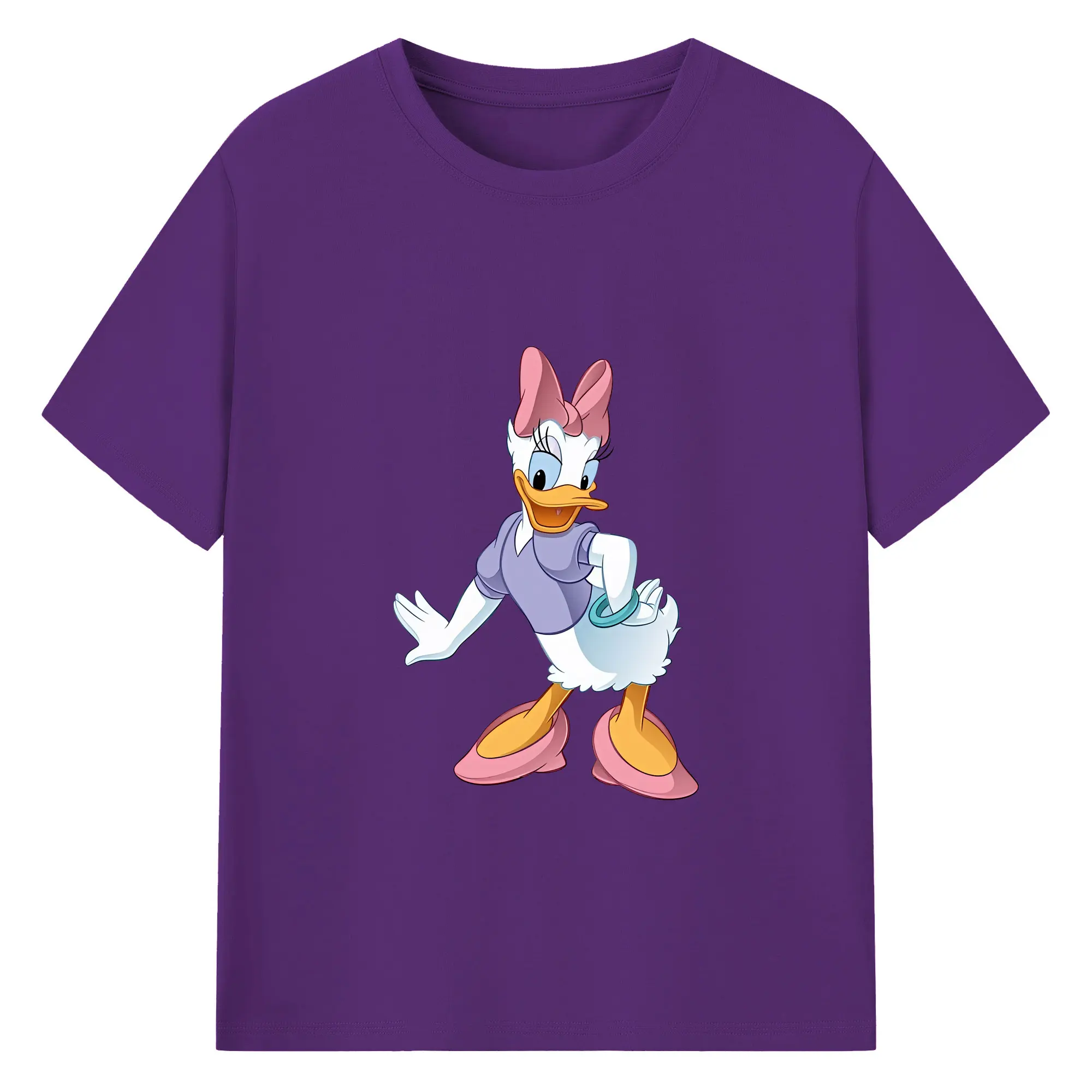 ミッキーマウス(Mickey Mouse) グッズ デイジーダック(Daisy Duck) - 綿100% 半袖Tシャツ ・ バックプリント ・ 快適 通気性 ・ 日常使い 散歩 スポーツ用