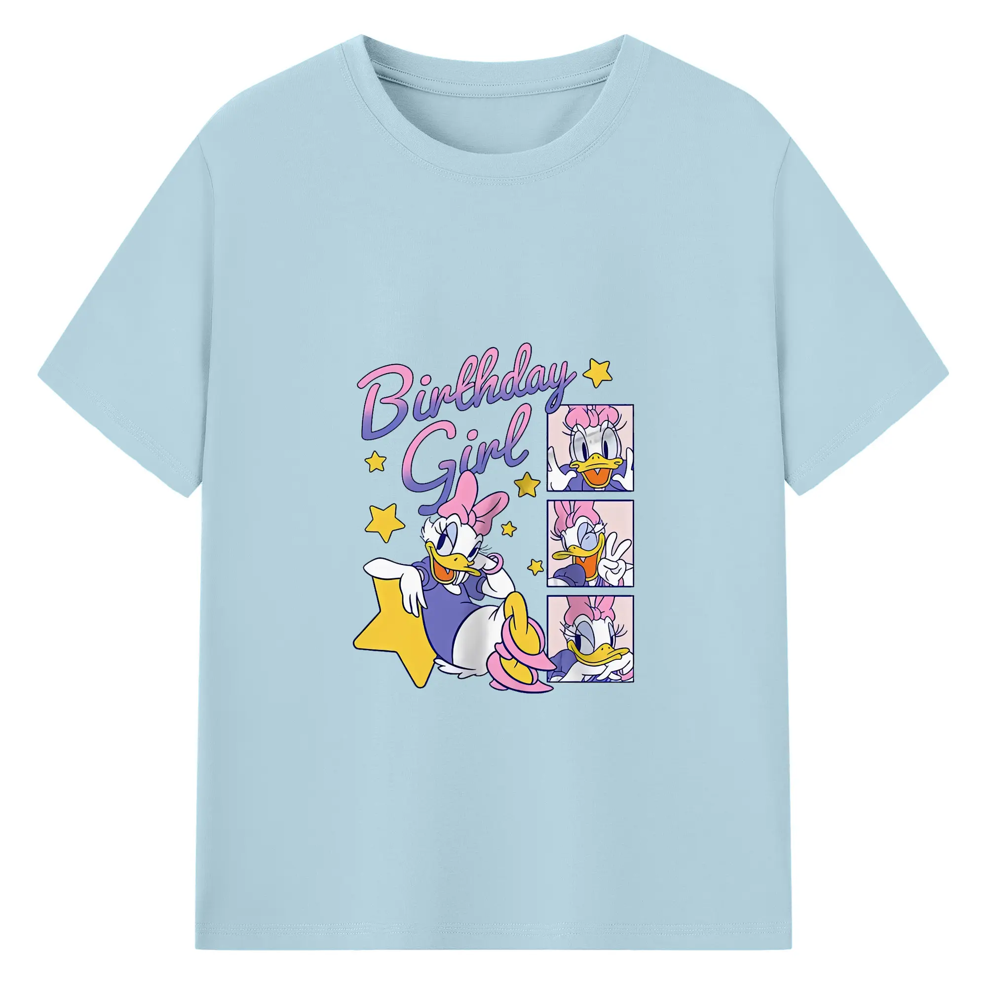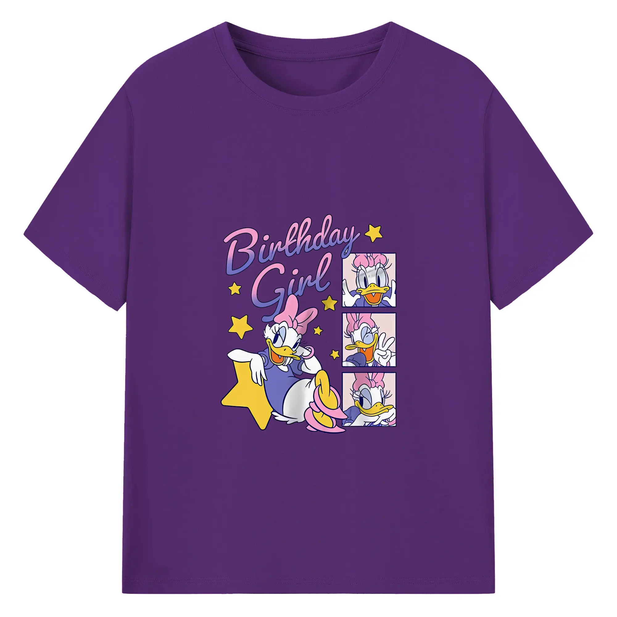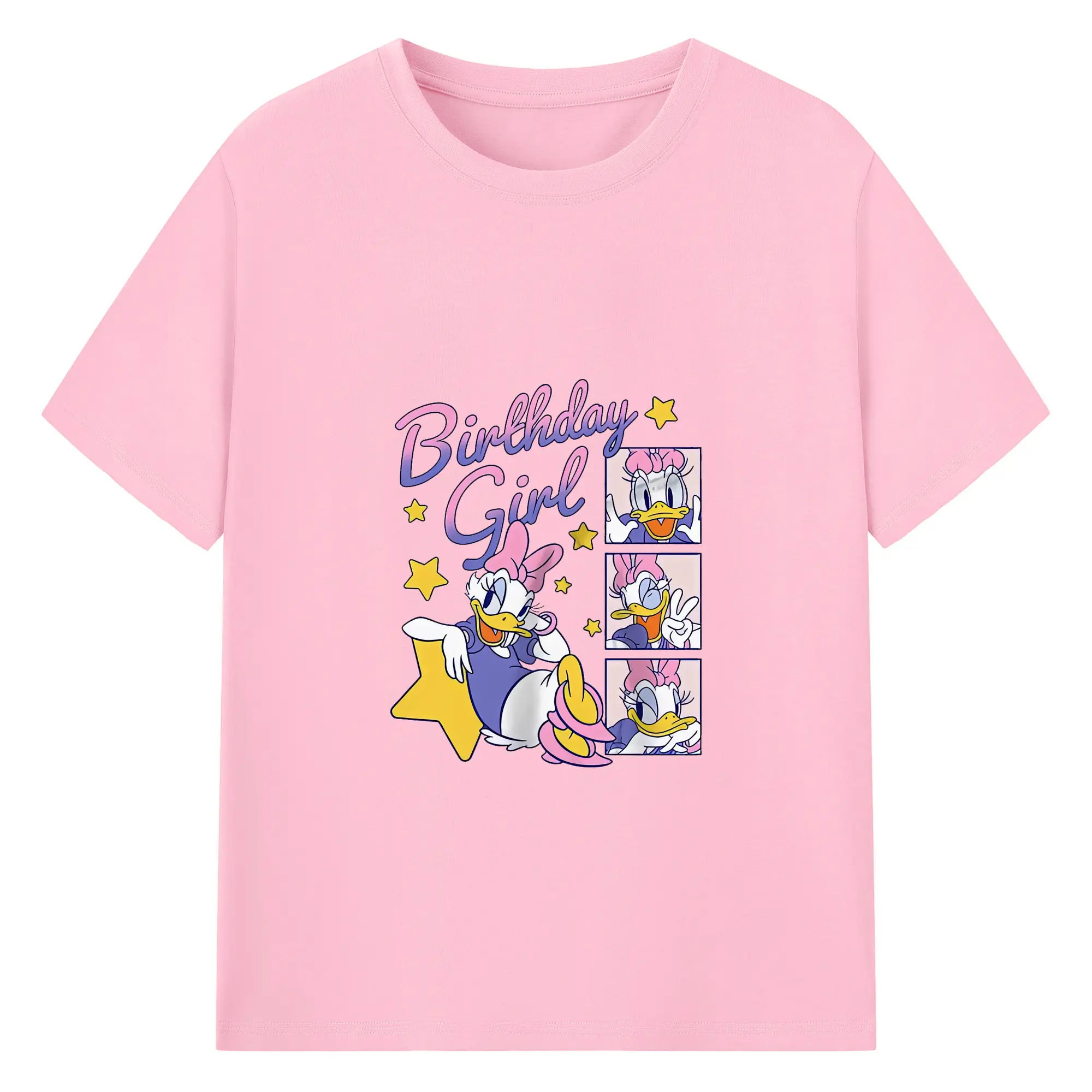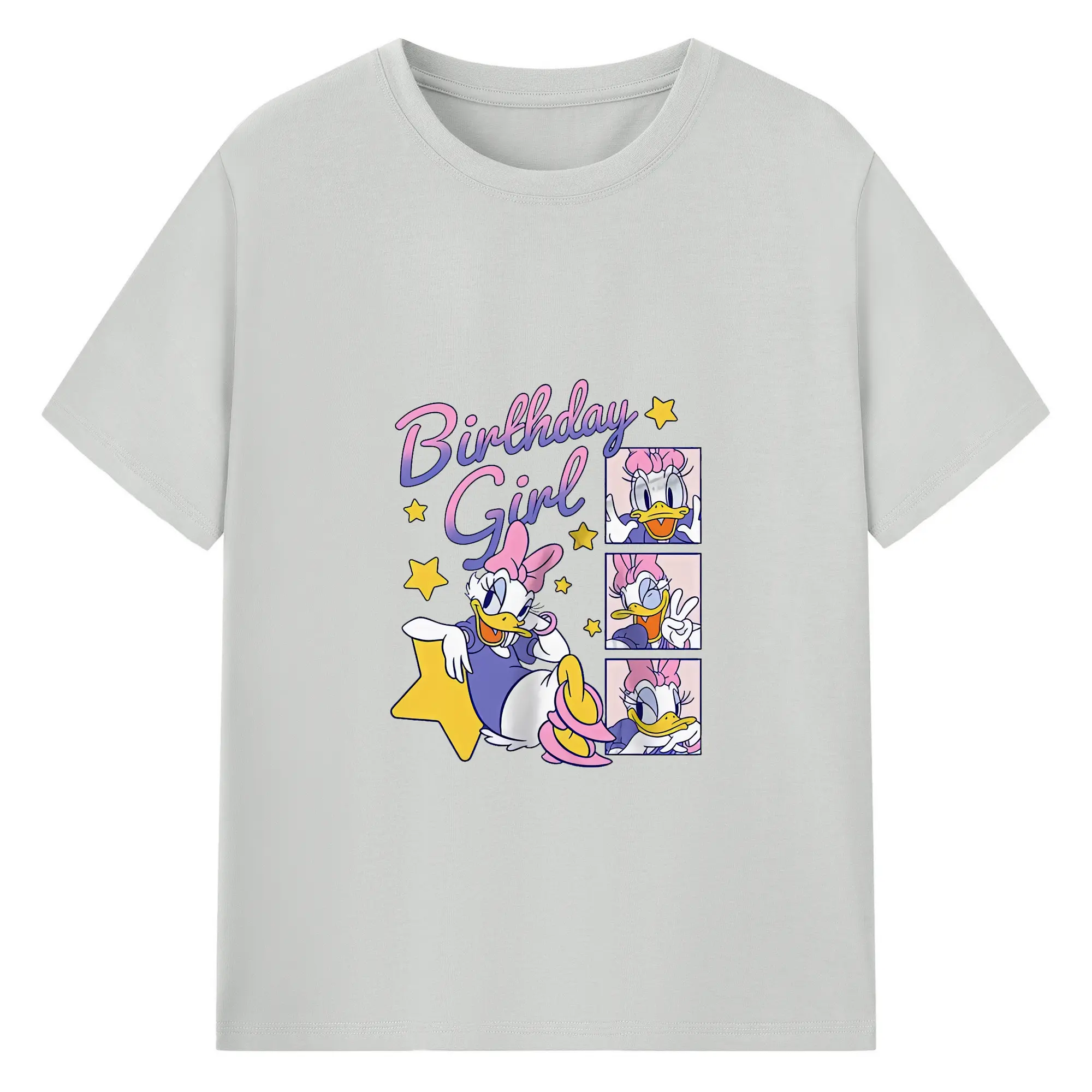 ミッキーマウス(Mickey Mouse) グッズ デイジーダック(Daisy Duck) - 綿100% 半袖Tシャツ ・ バックプリント ・ 快適 通気性 ・ 日常使い 散歩 スポーツ用