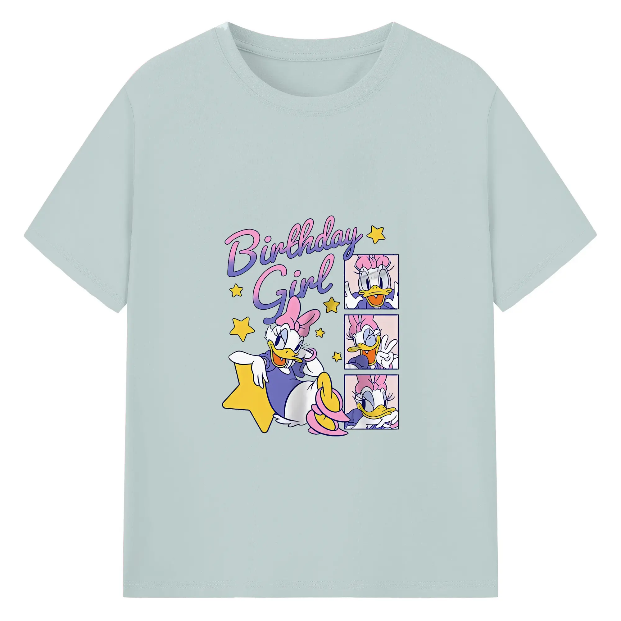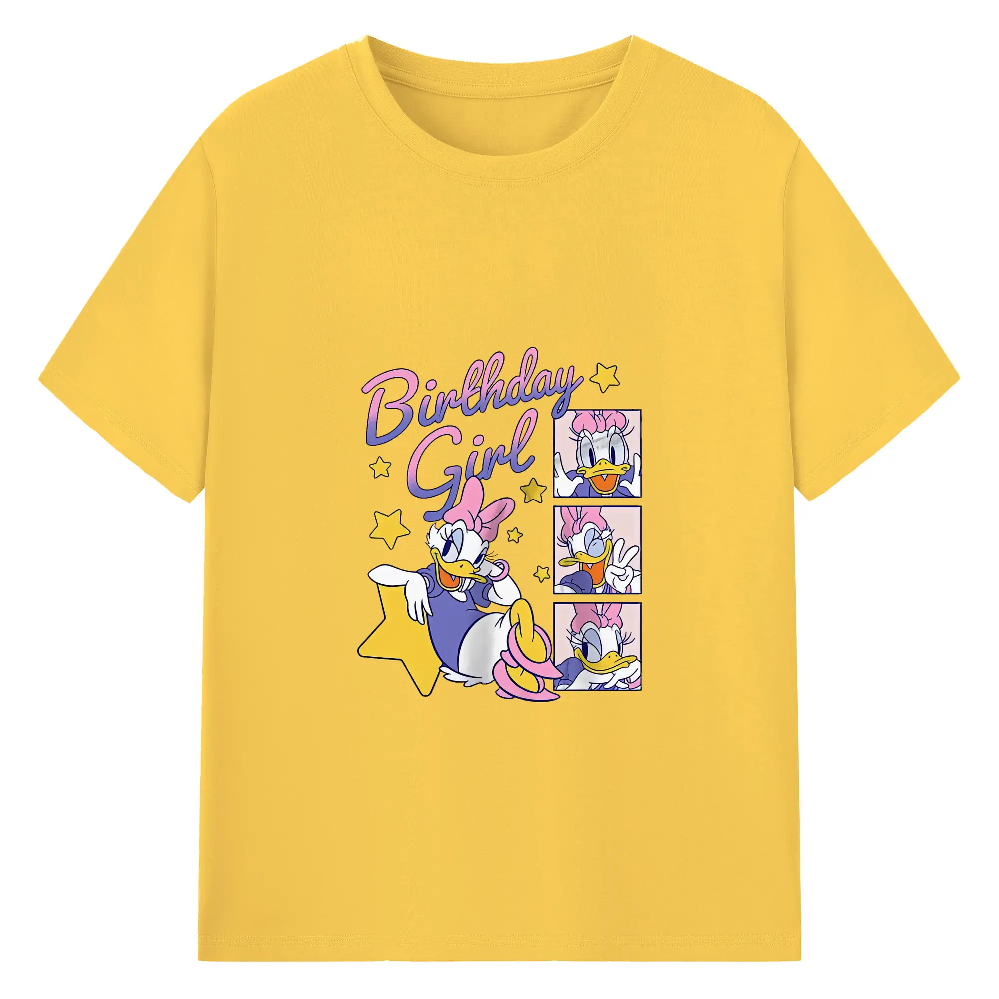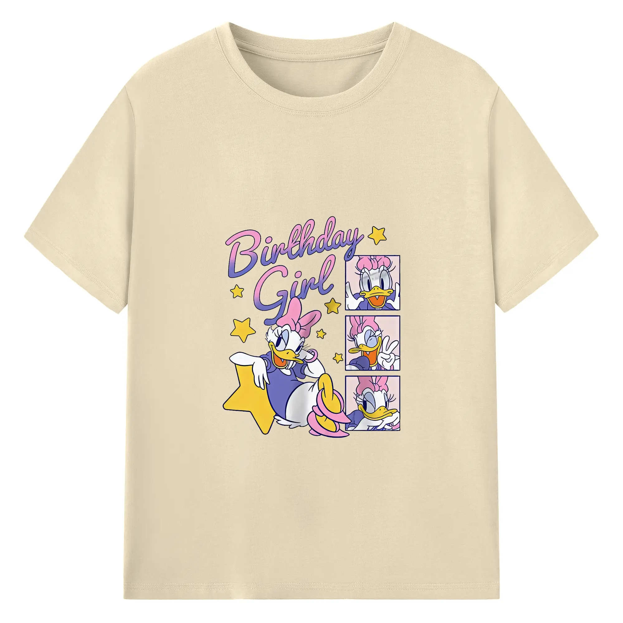 ミッキーマウス(Mickey Mouse) グッズ デイジーダック(Daisy Duck) - 綿100% 半袖Tシャツ ・ バックプリント ・ 快適 通気性 ・ 日常使い 散歩 スポーツ用