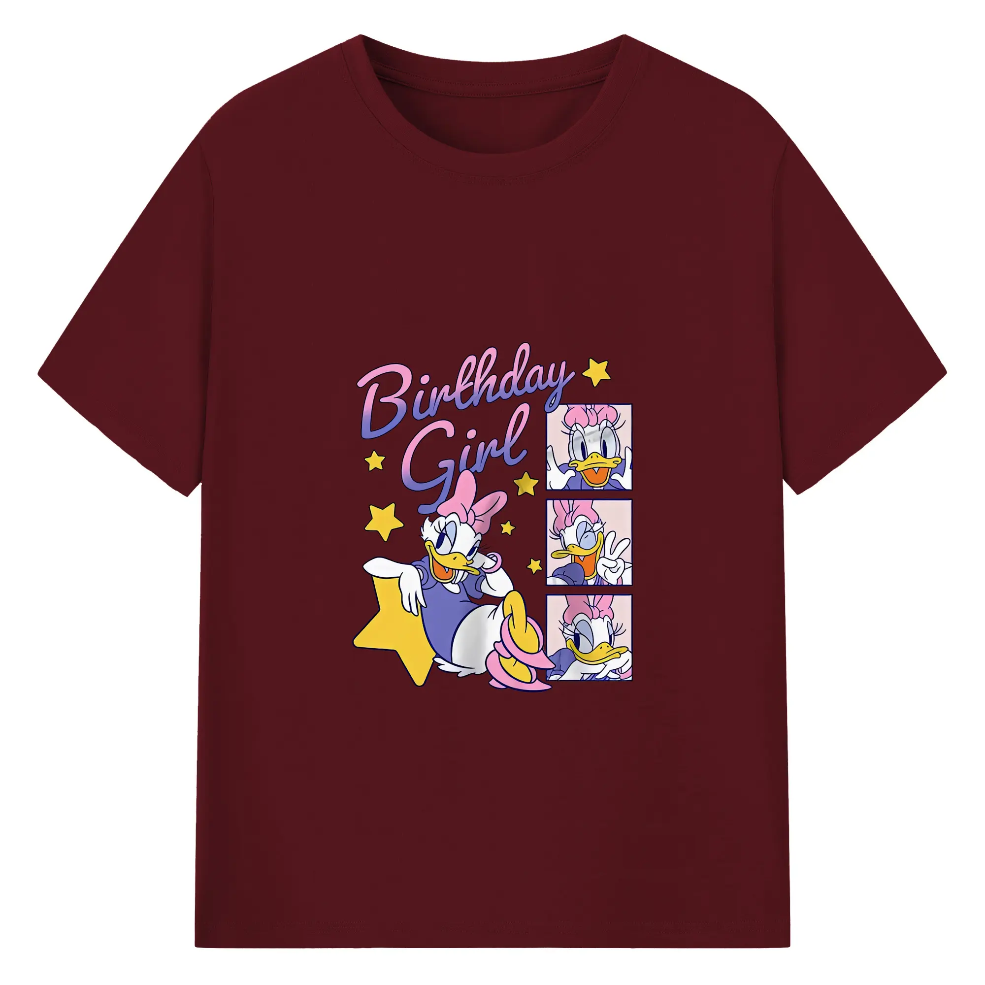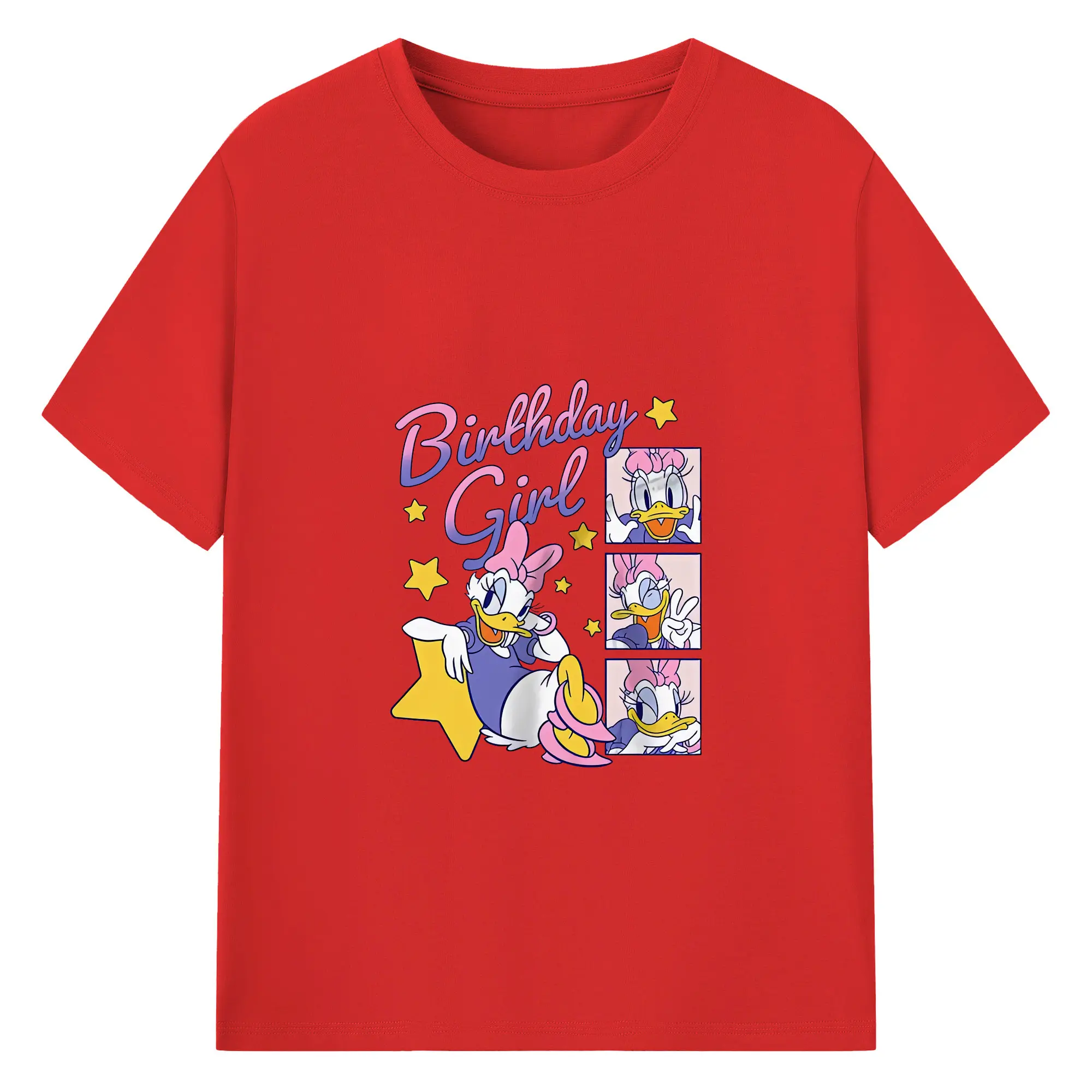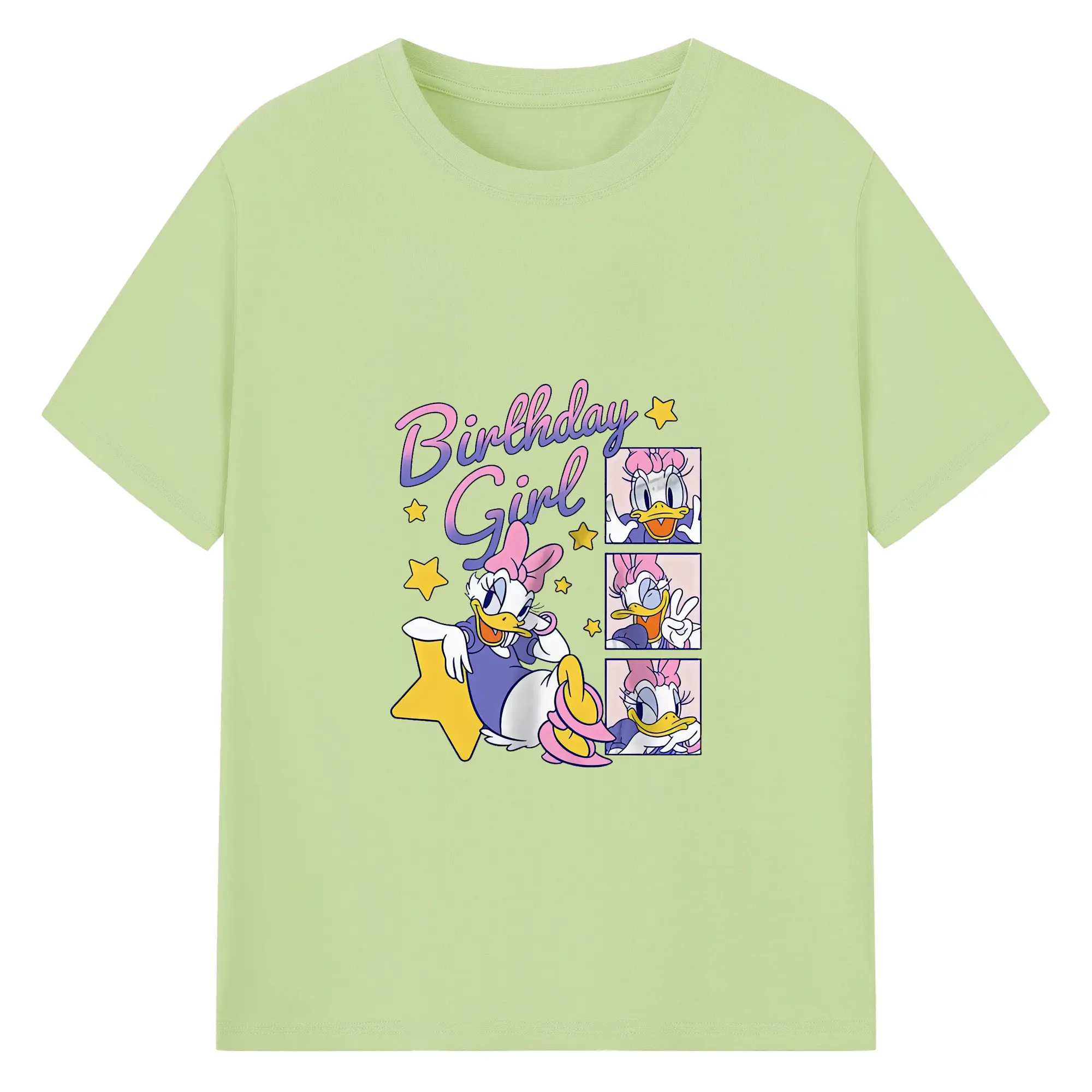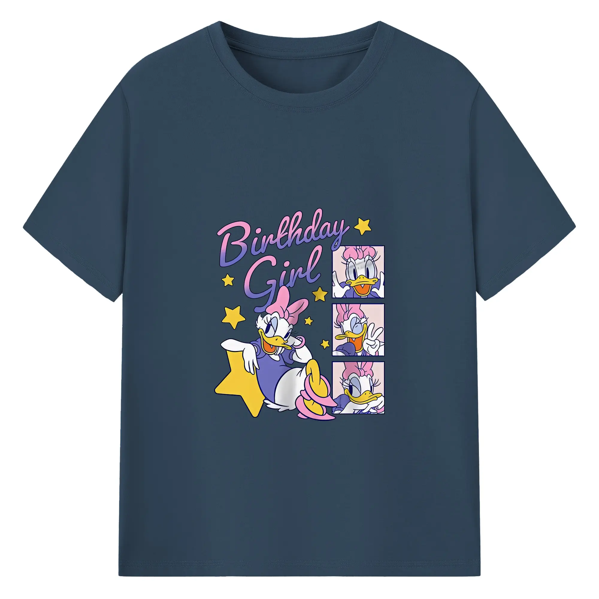 ミッキーマウス(Mickey Mouse) グッズ デイジーダック(Daisy Duck) - 綿100% 半袖Tシャツ ・ バックプリント ・ 快適 通気性 ・ 日常使い 散歩 スポーツ用