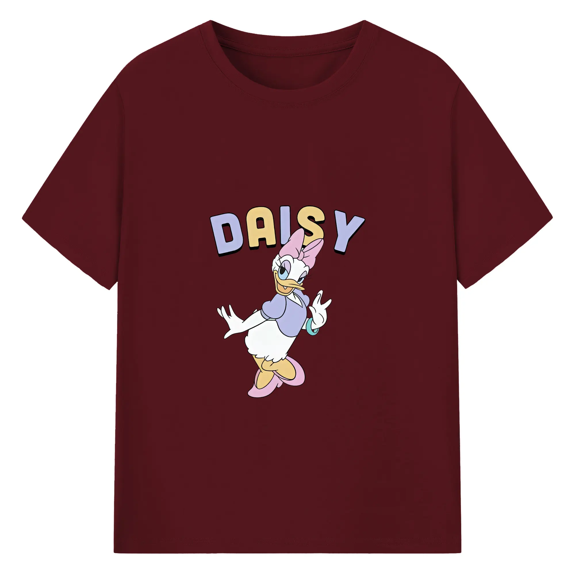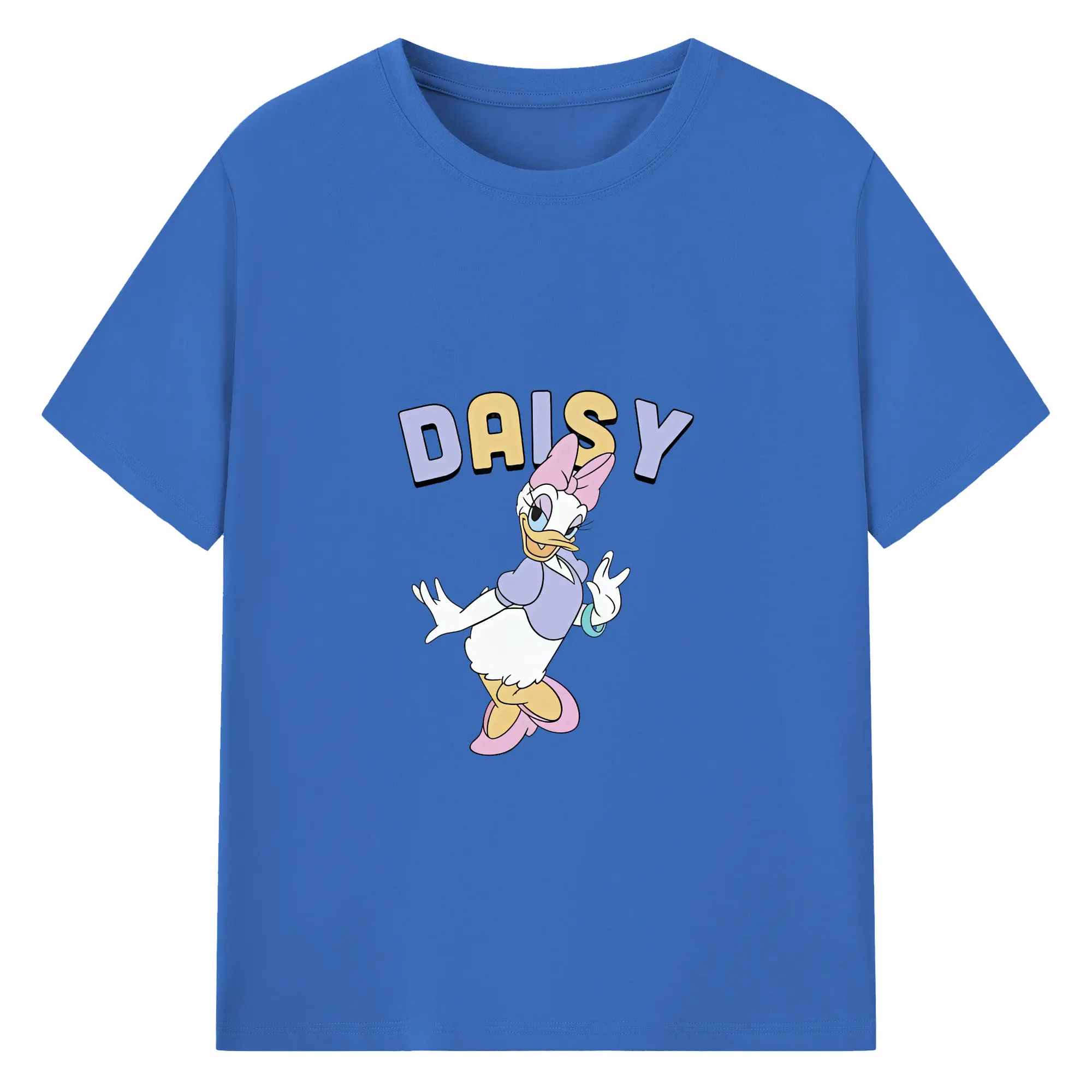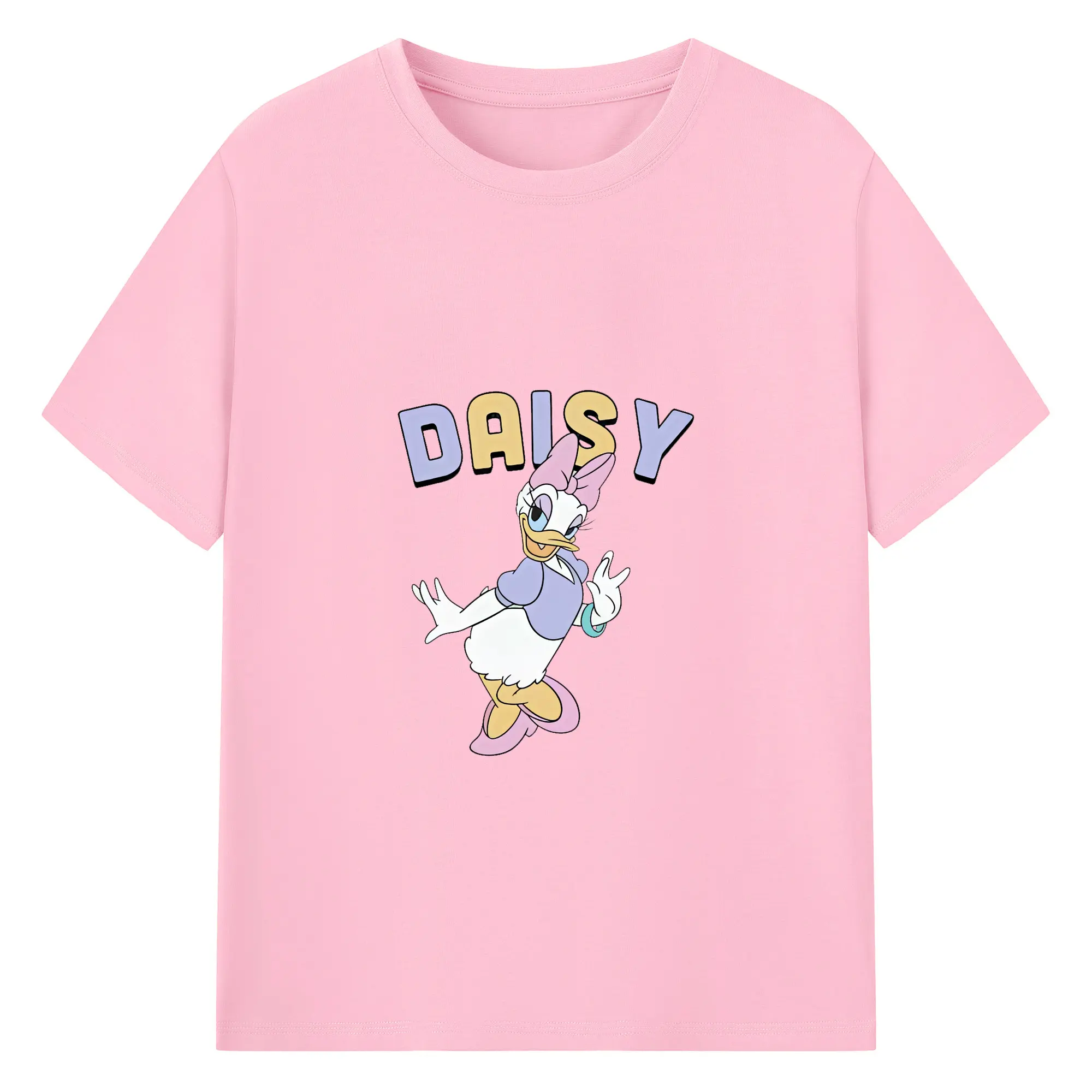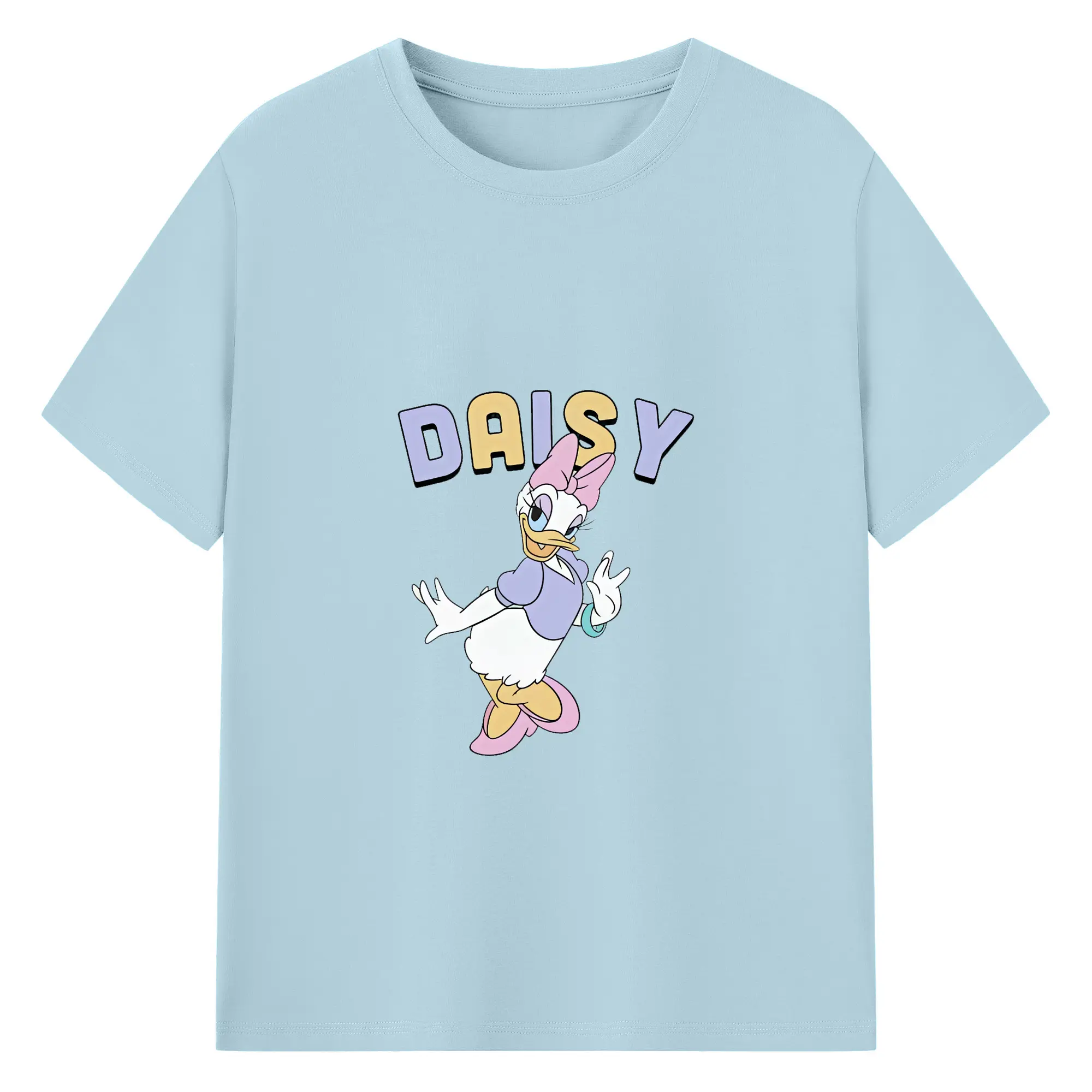ミッキーマウス(Mickey Mouse) グッズ デイジーダック(Daisy Duck) - 綿100% 半袖Tシャツ ・ バックプリント ・ 快適 通気性 ・ 日常使い 散歩 スポーツ用