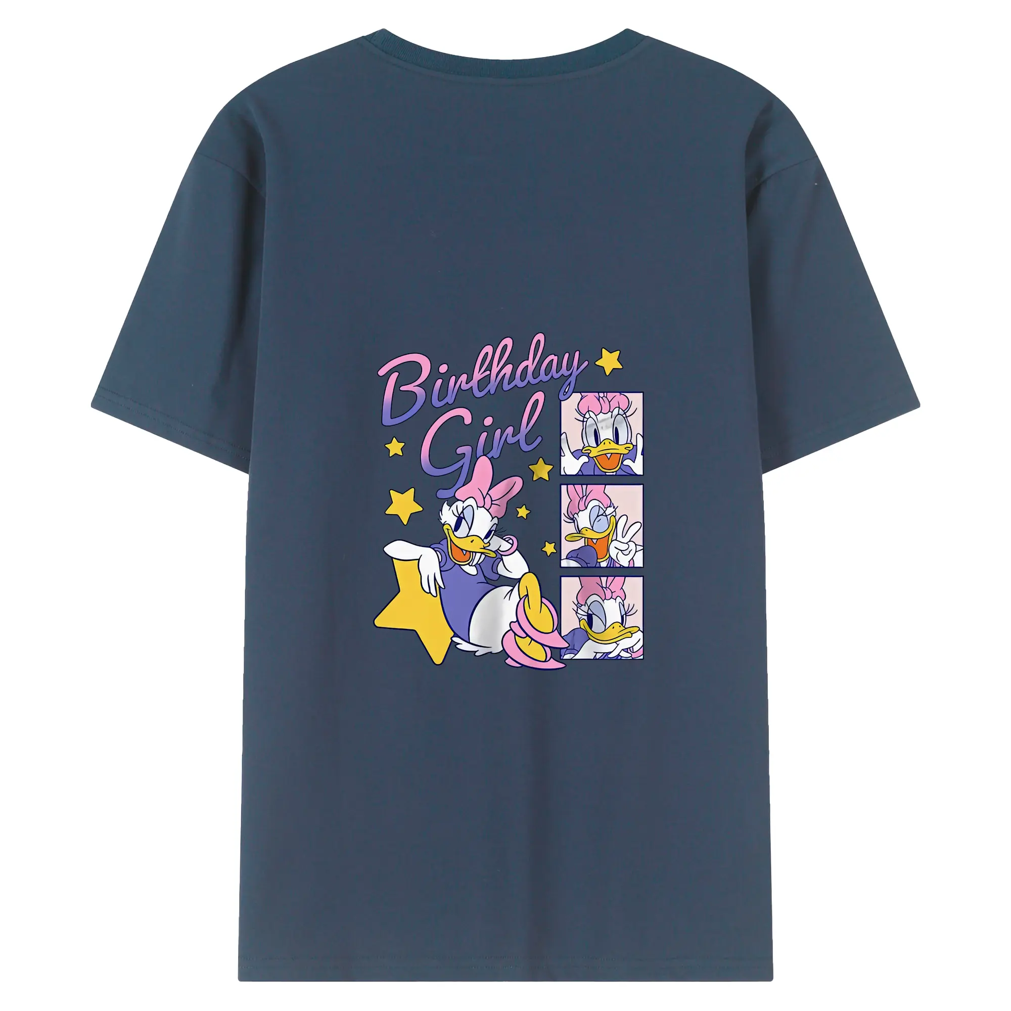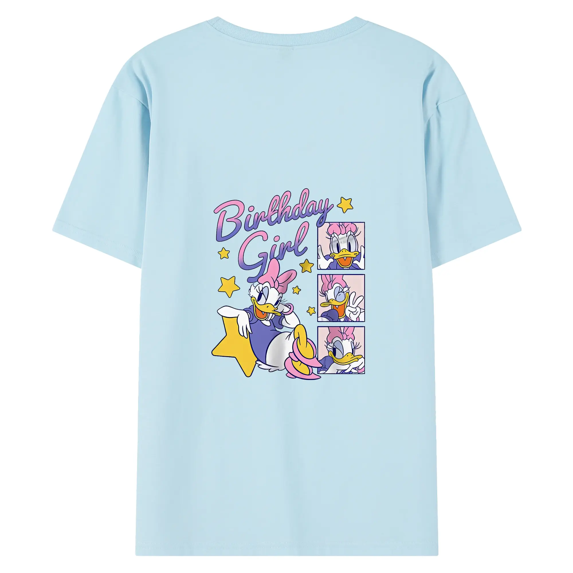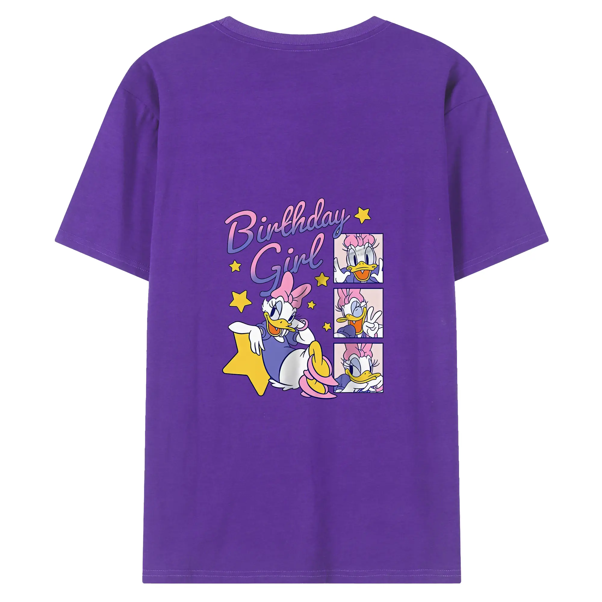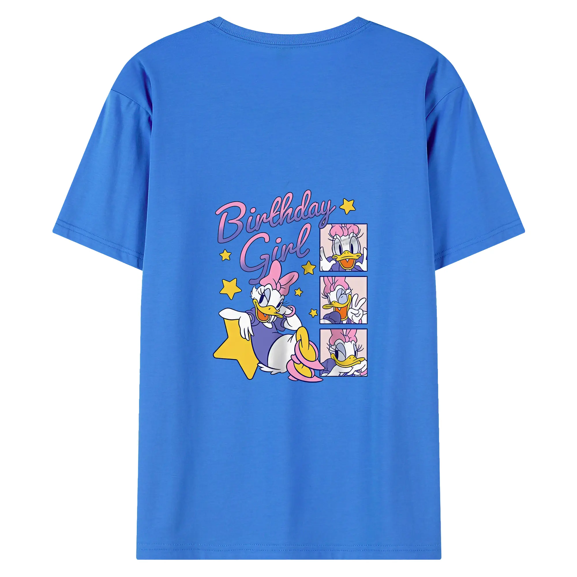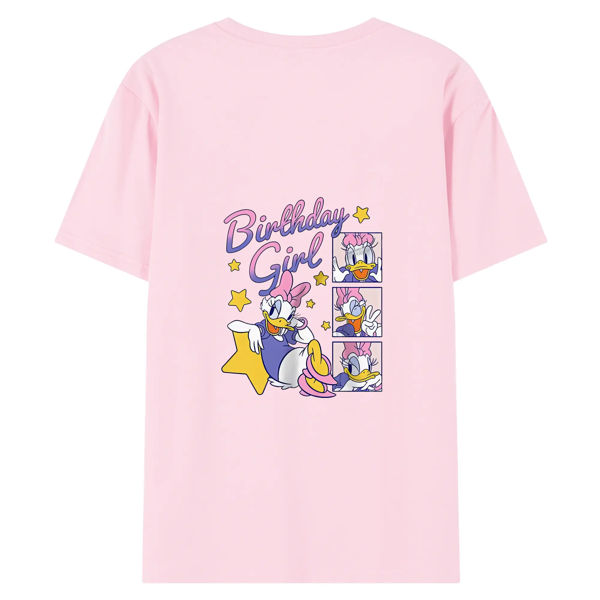 ミッキーマウス(Mickey Mouse) グッズ デイジーダック(Daisy Duck) - 綿100% 半袖Tシャツ ・ フロントプリント ・ 快適 通気性 ・ 日常使い 散歩 スポーツ用