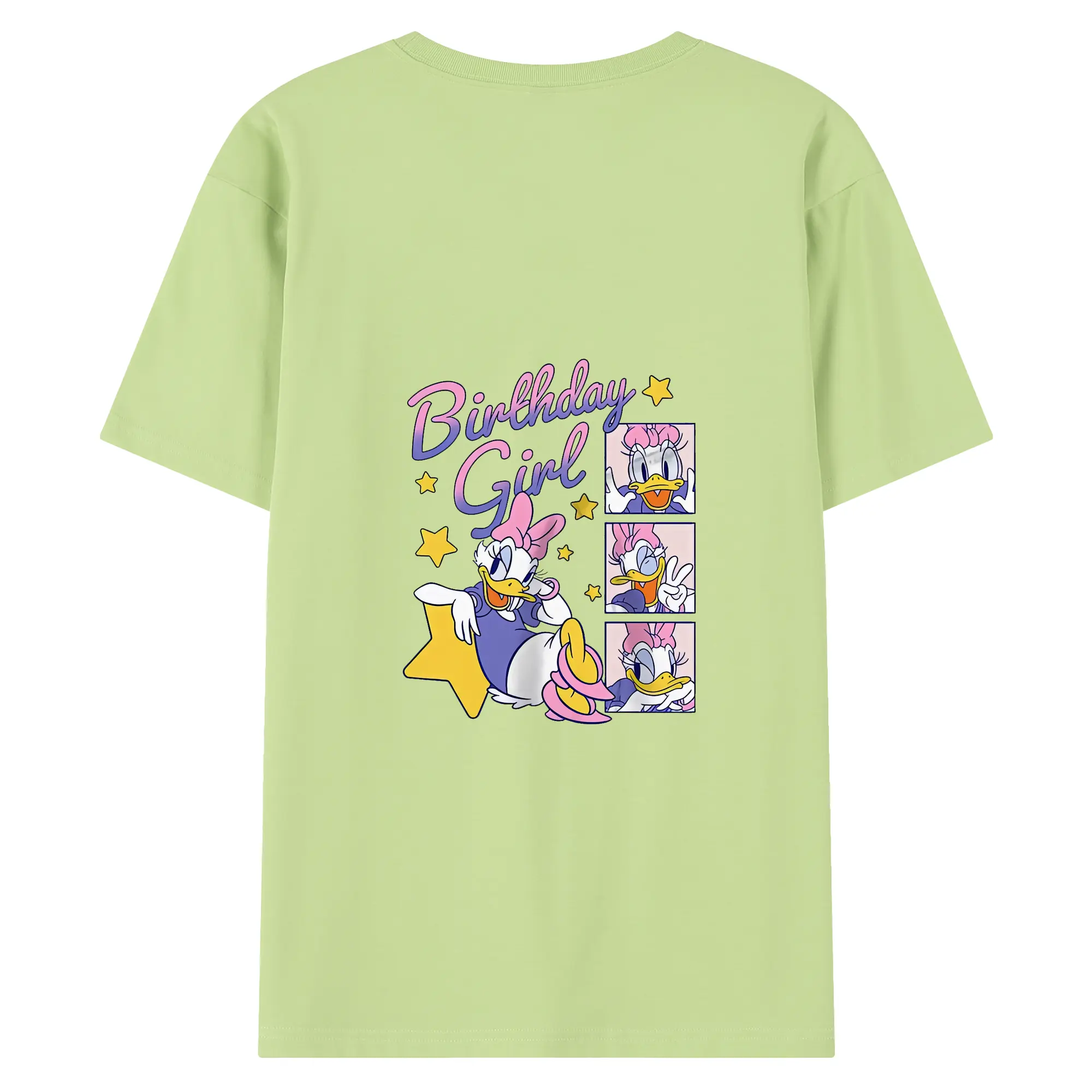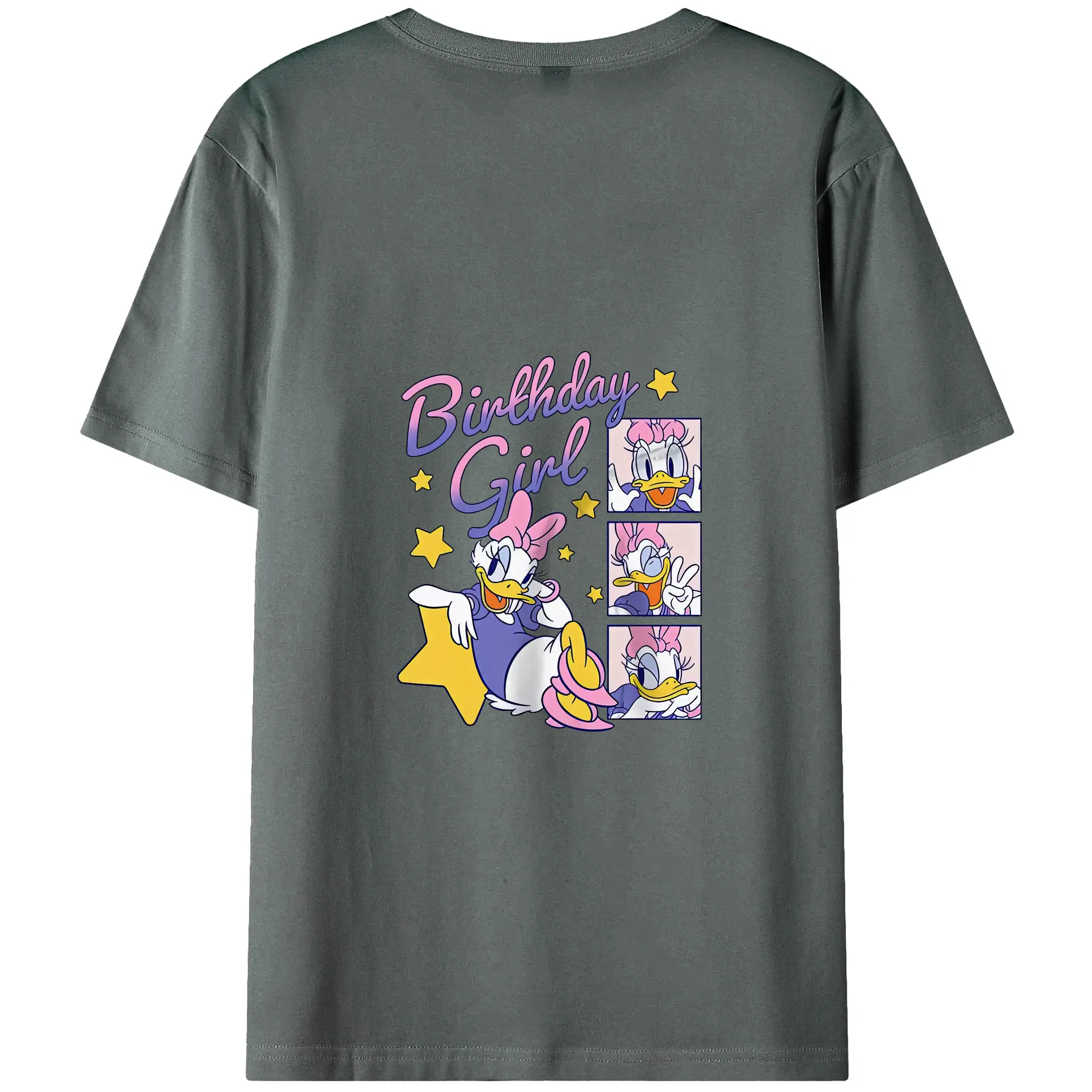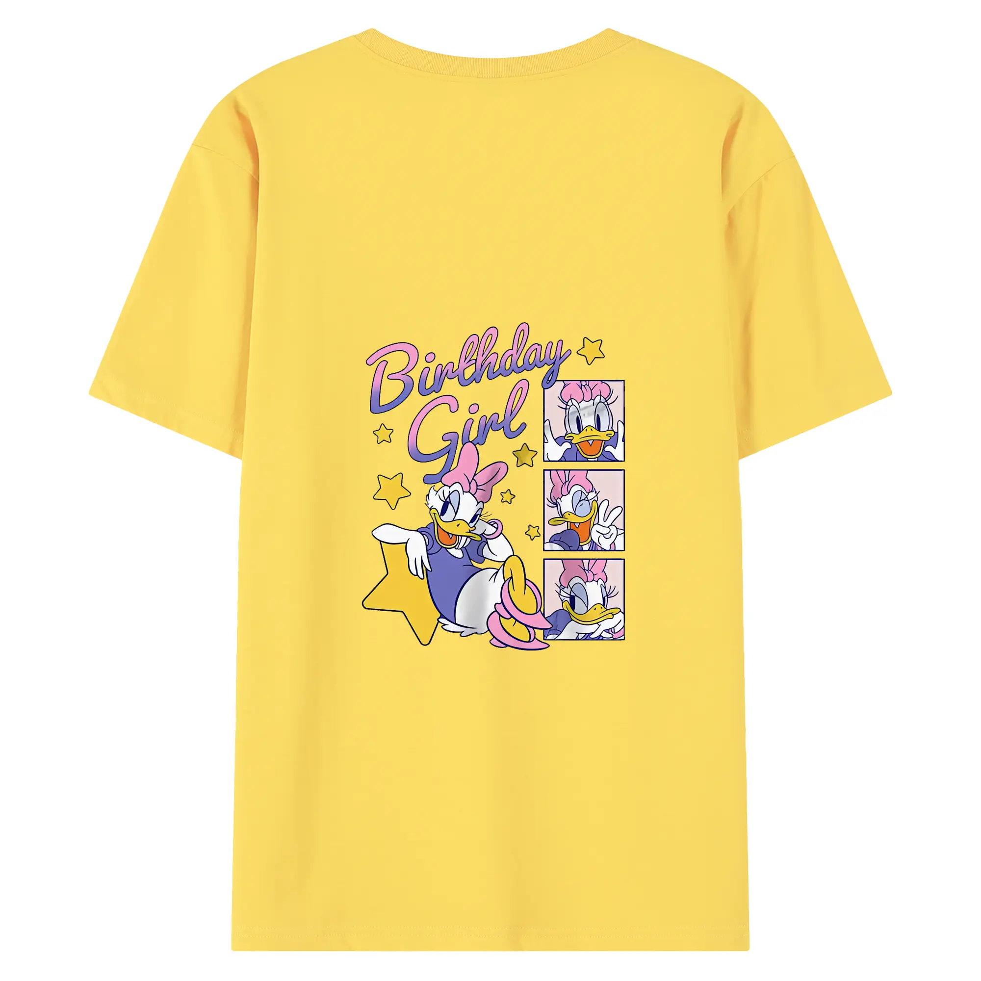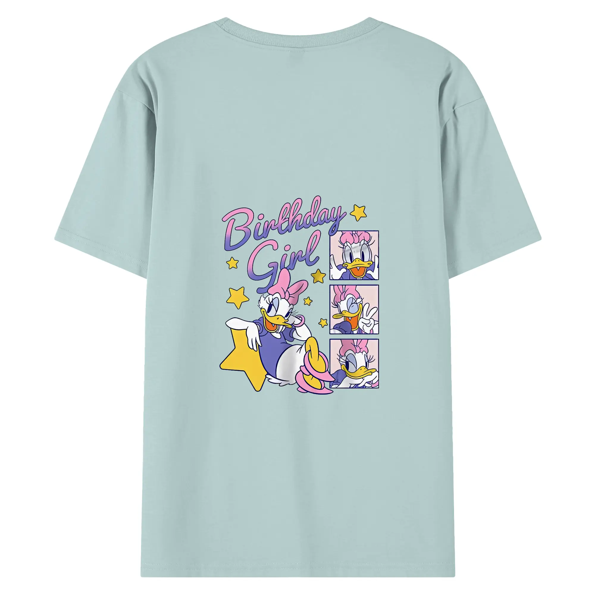 ミッキーマウス(Mickey Mouse) グッズ デイジーダック(Daisy Duck) - 綿100% 半袖Tシャツ ・ フロントプリント ・ 快適 通気性 ・ 日常使い 散歩 スポーツ用